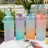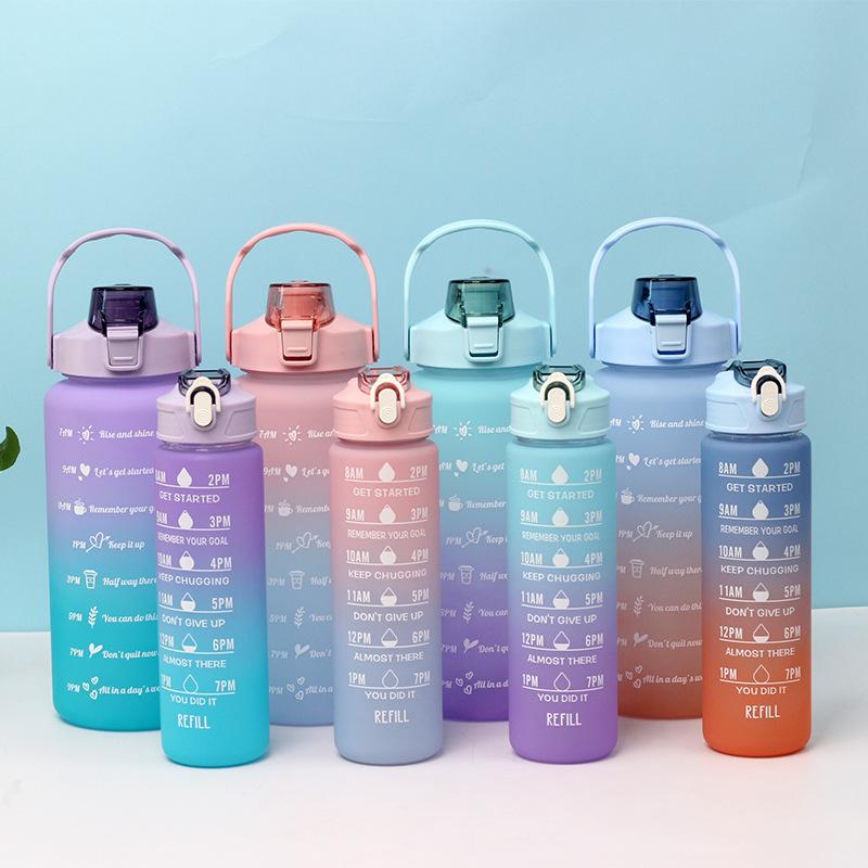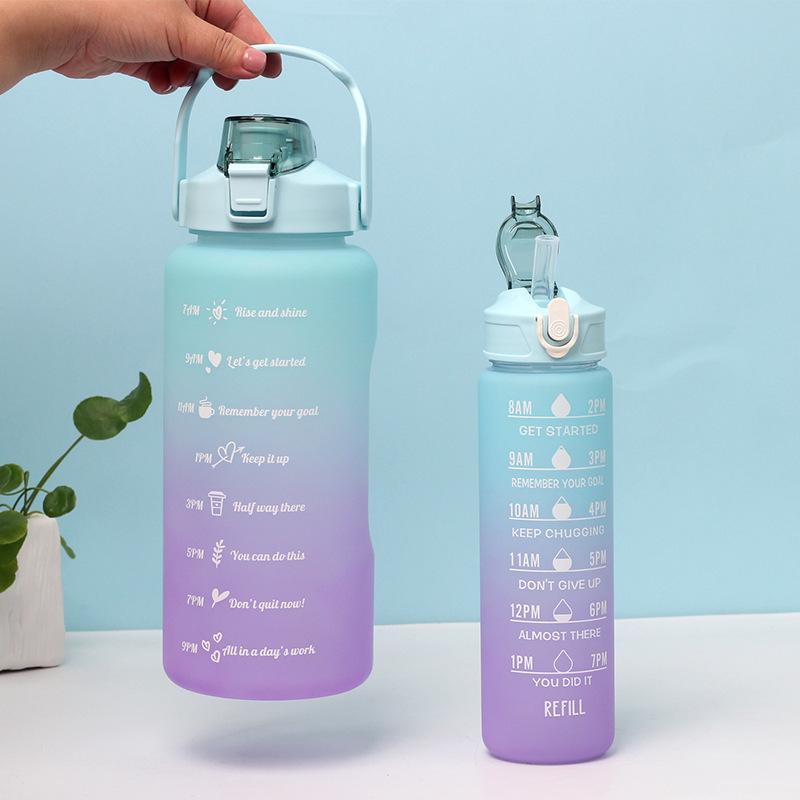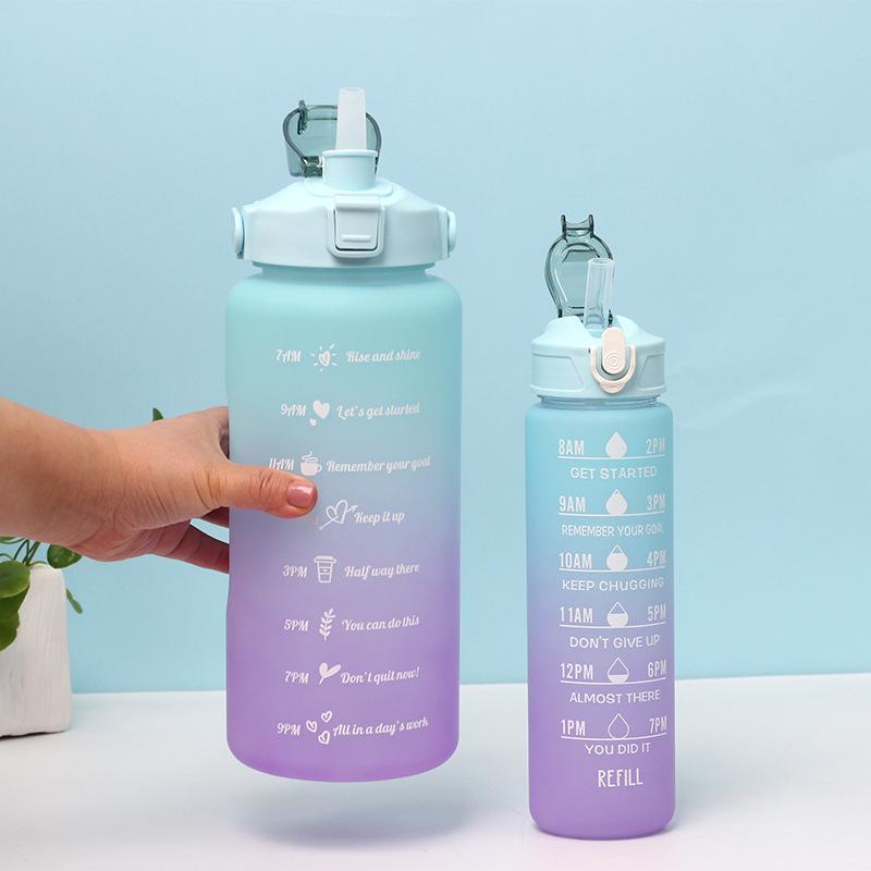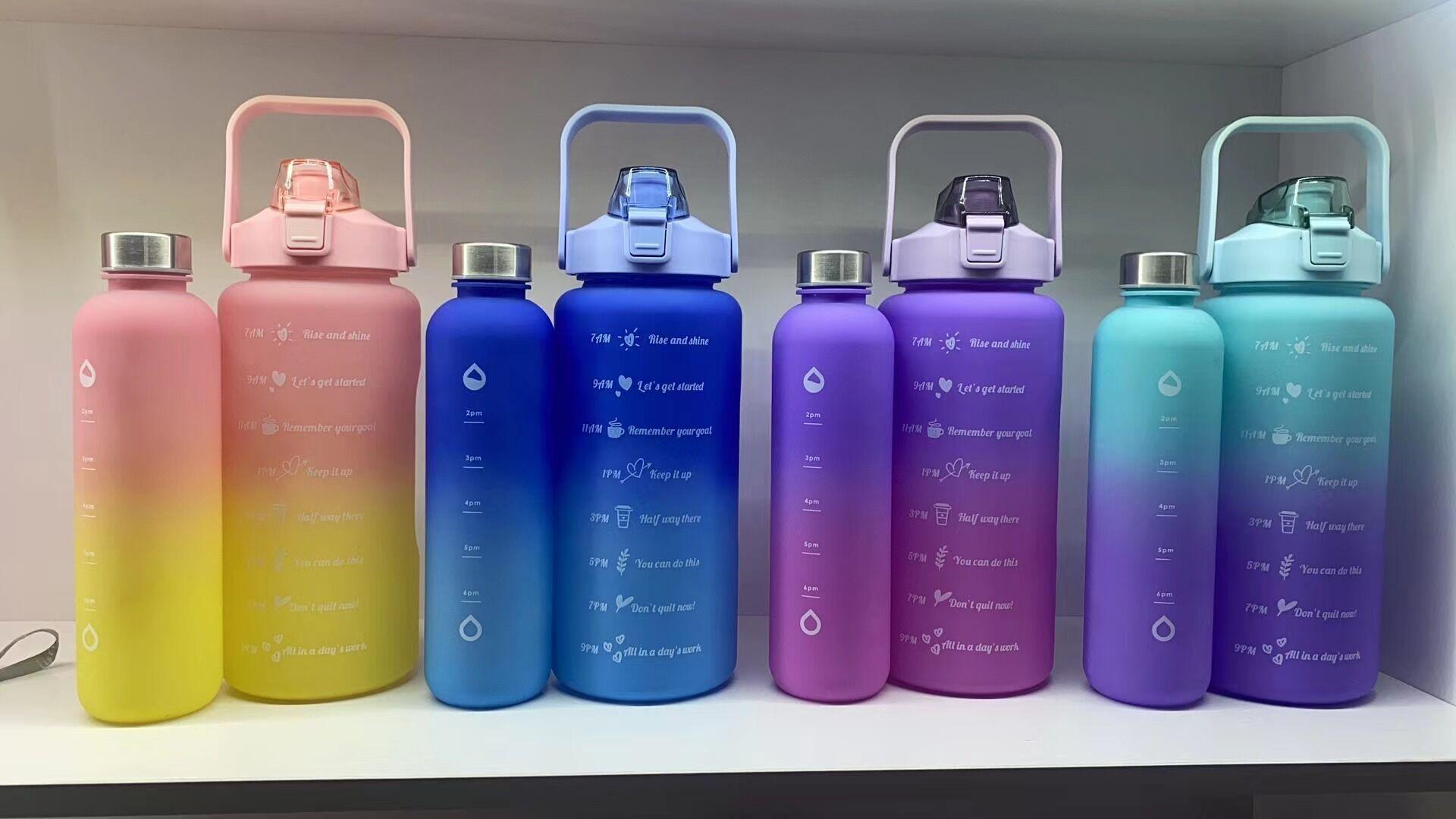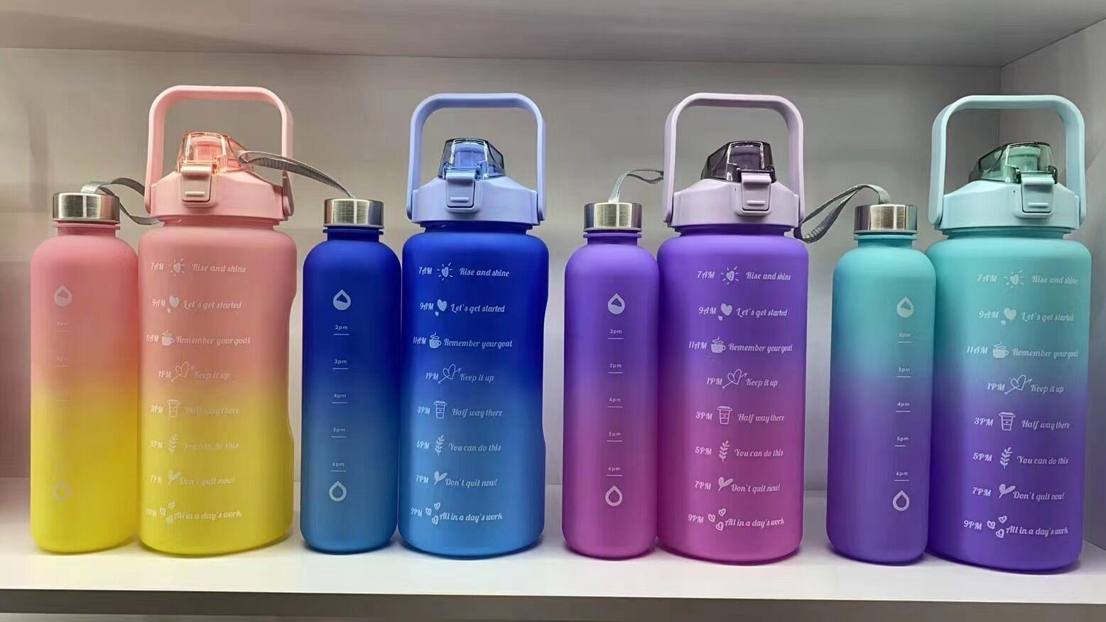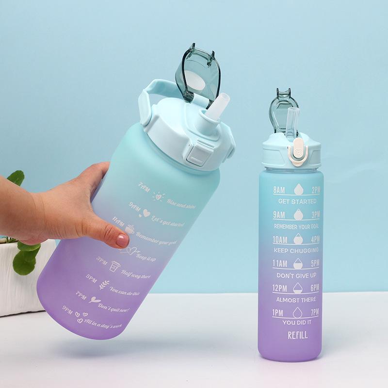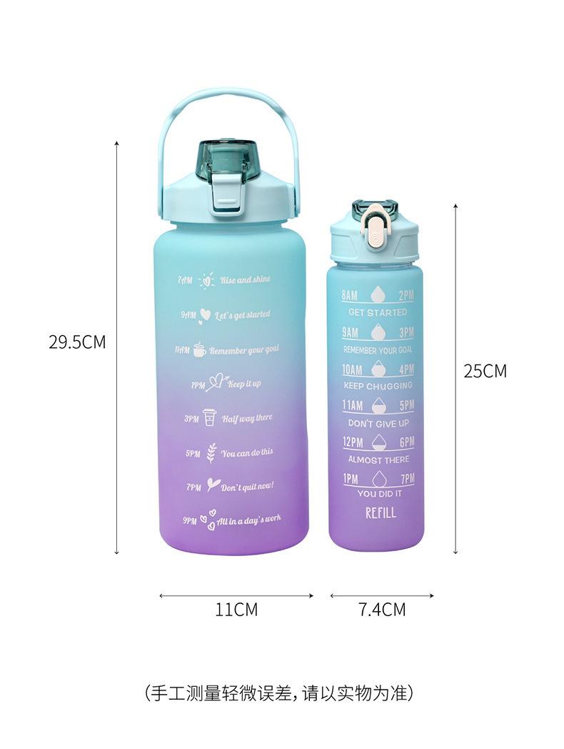 Vaso motivacional para beber de 2000 ml y 800 ml, vaso espacial degradado Tamaño 2L: diámetro 11*altura 30CM (medición manual, sujeto al objeto real) Tamaño de 0.8 litros: diámetro 7.5*altura 27CM (medición manual, sujeta al producto real) Color: morado, rosa, verde, azul. Material: PC, PP, ABS, silicona Tasa de empaque: 50 piezas/juego Tamaño de la caja exterior: 60*57*61cm Peso bruto/peso neto:24/23KG