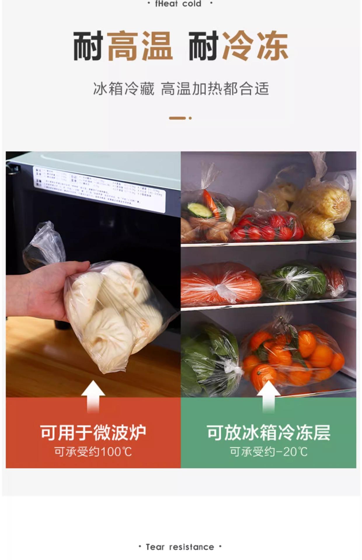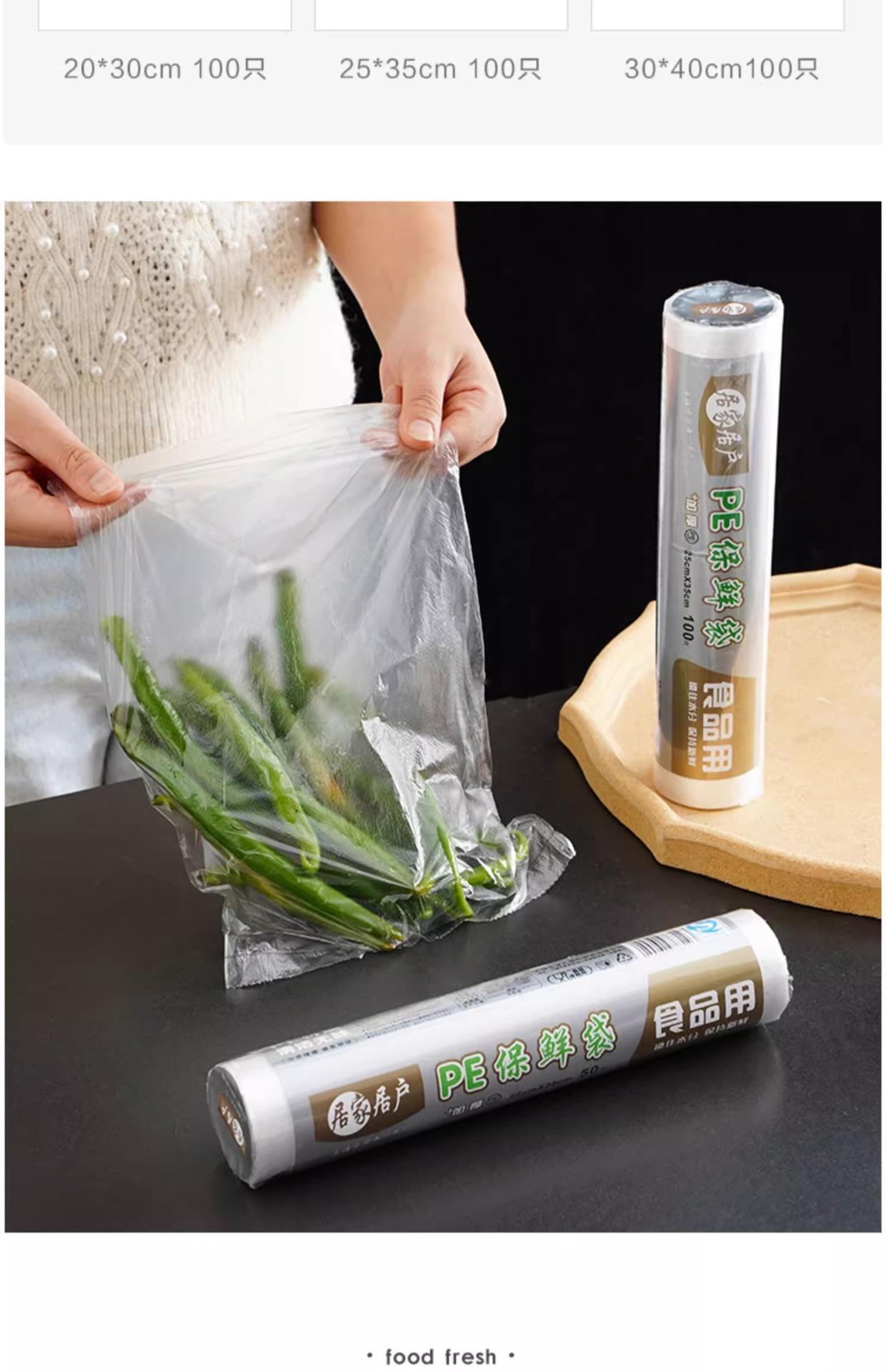 Bolsa de plástico para mantener la frescura de los alimentos en el refrigerador, de grado alimenticio, para el hogar, de tamaño grande y pequeño, gruesa, desechable, para frutas y verduras, supermercado.