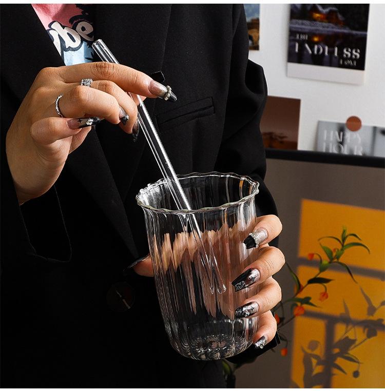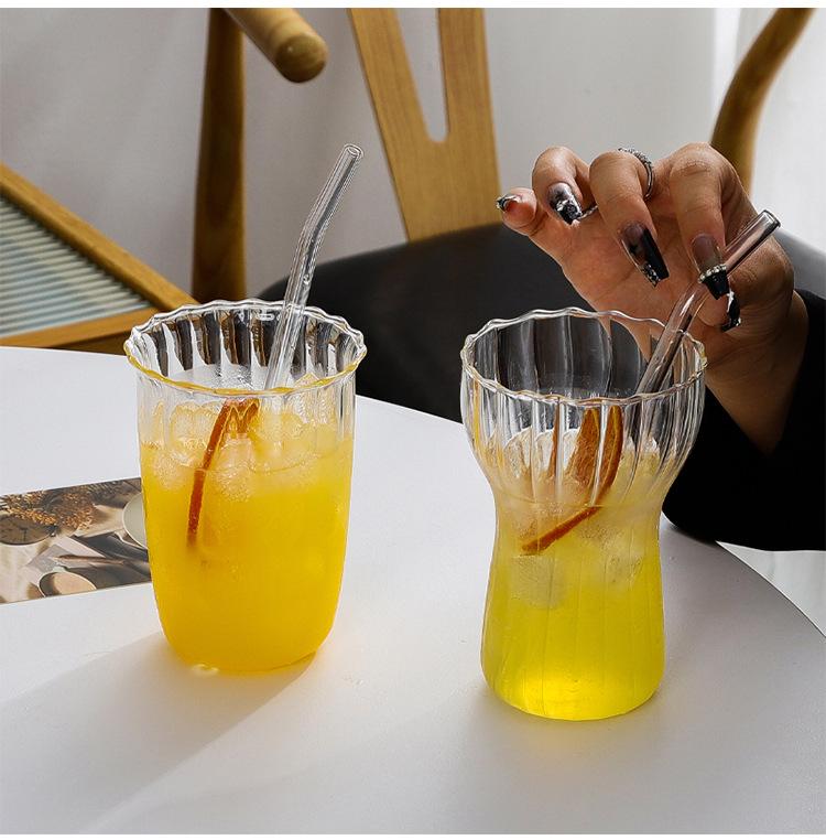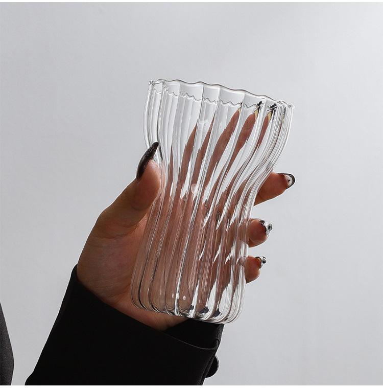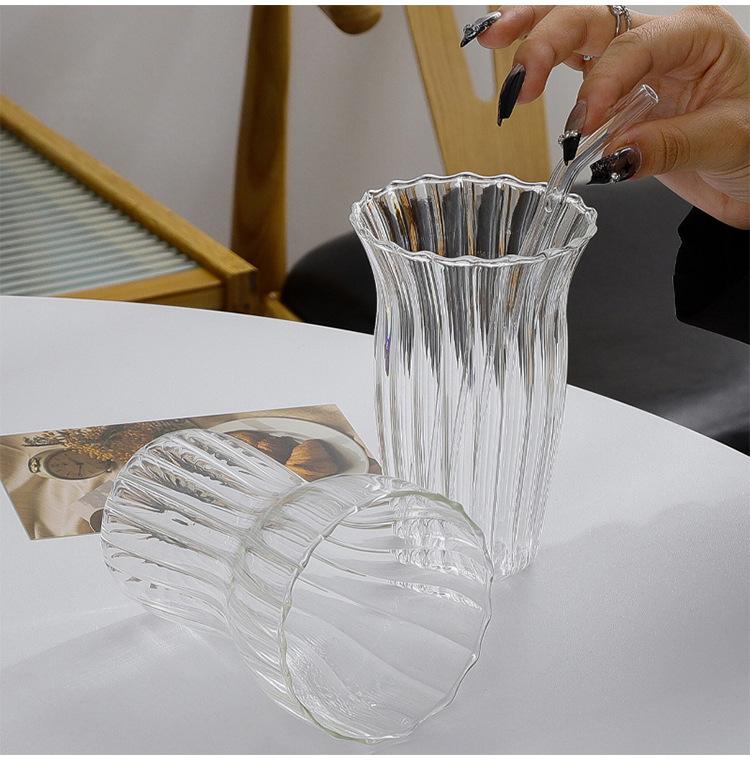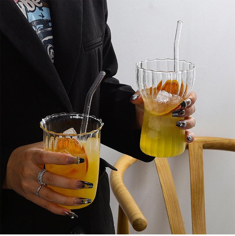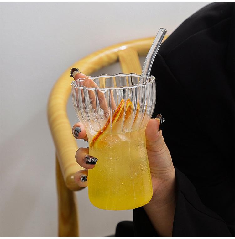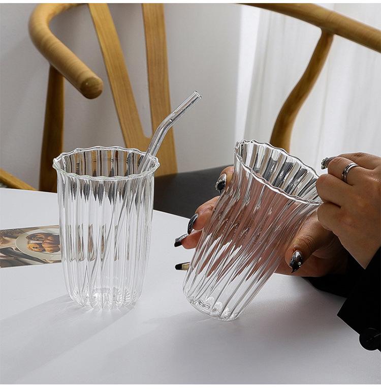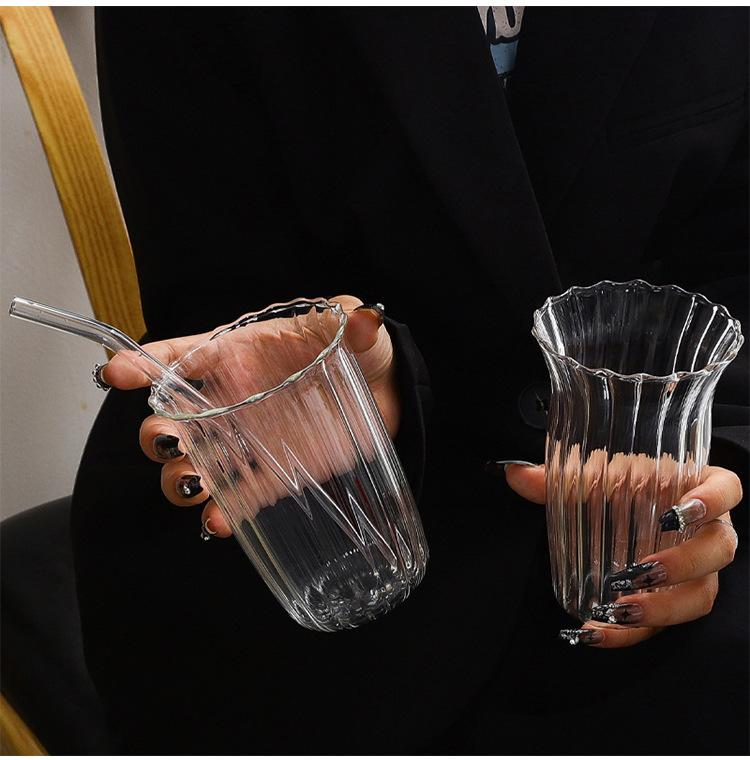 Taza de agua de vidrio resistente al calor con patrón vertical de cabeza de hongo, de lujo, vintage, ligera, para café helado, taza de extracto frío, taza para beber, taza para el hogar