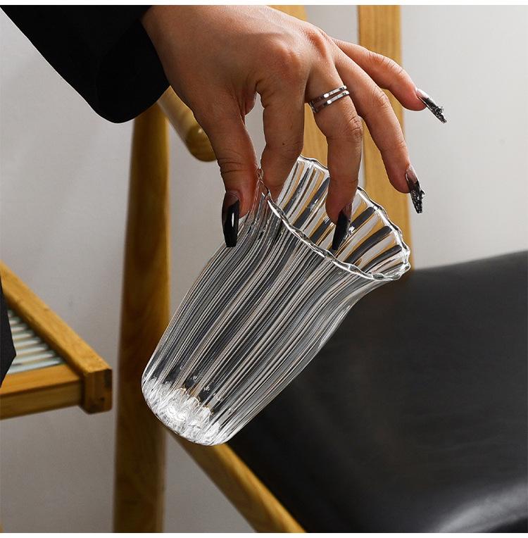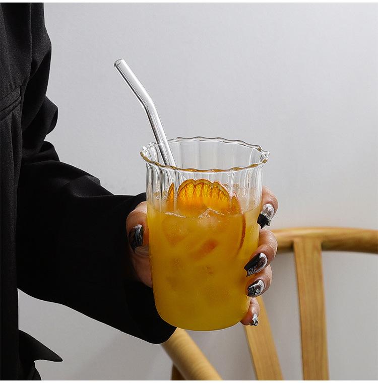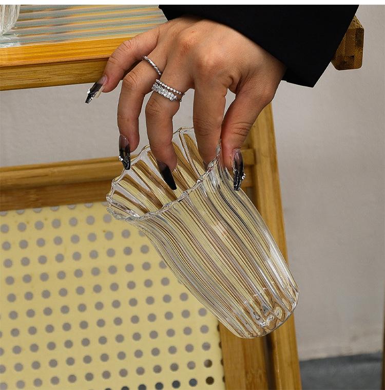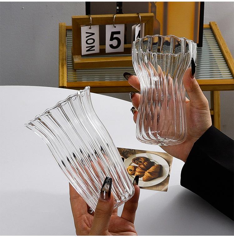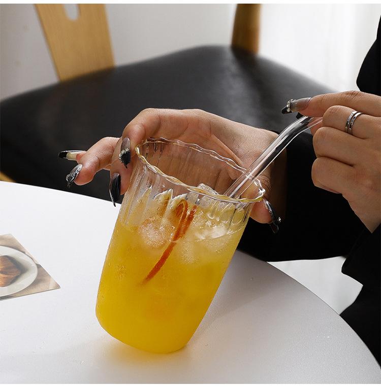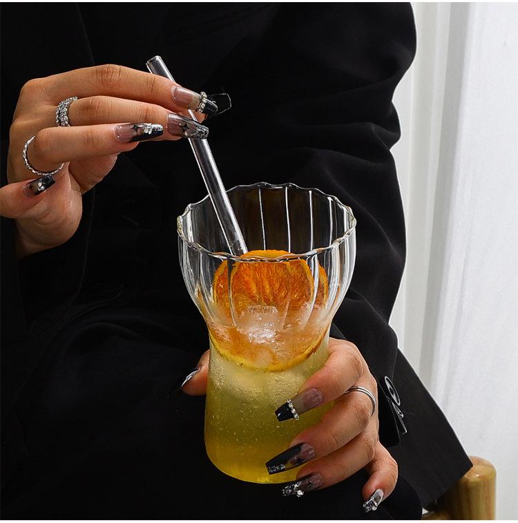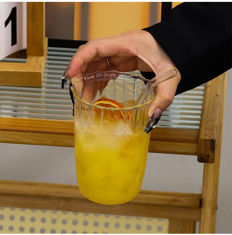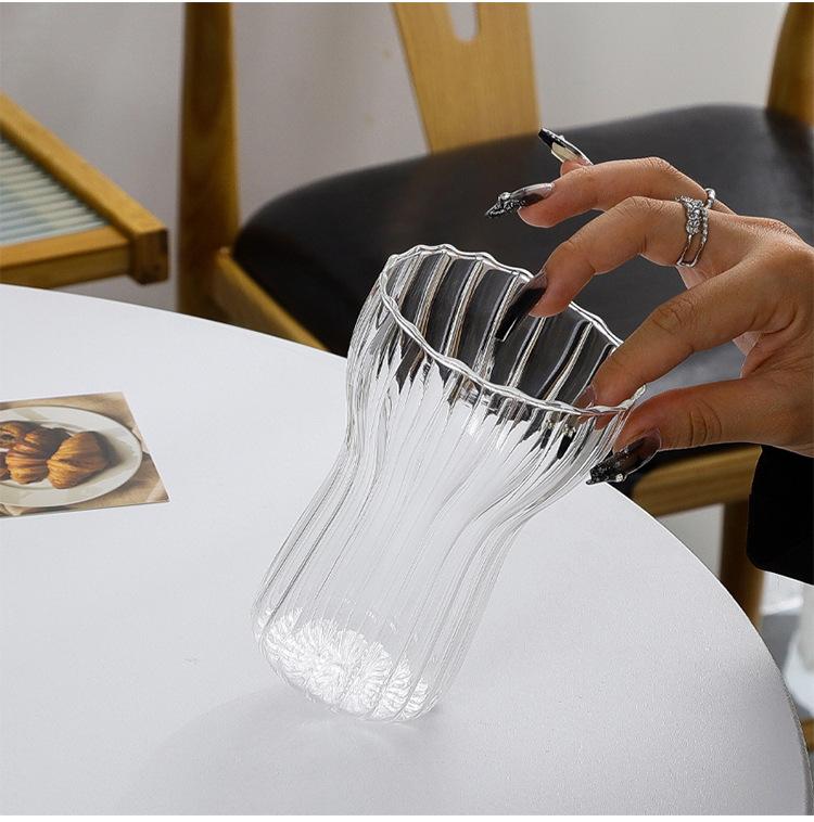 Taza de agua de vidrio resistente al calor con patrón vertical de cabeza de hongo, de lujo, vintage, ligera, para café helado, taza de extracto frío, taza para beber, taza para el hogar