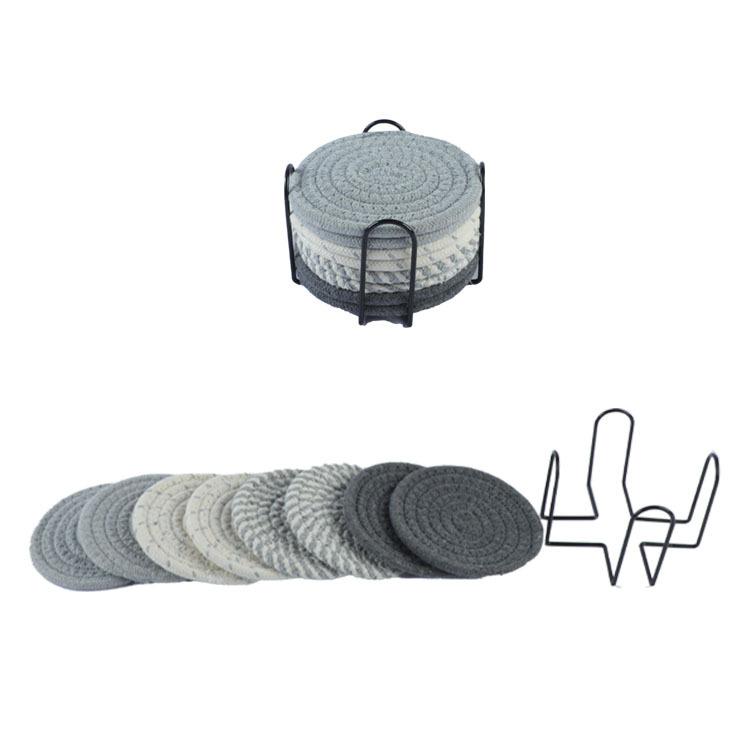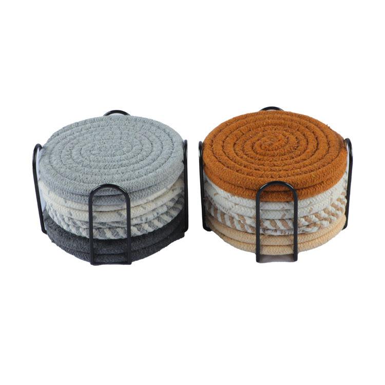 Fábrica en stock Nórdico Ins Cuerda de Algodón Trenzado Individual de Mesa Engrosado Aislamiento Térmico Redondo Algodón Tejido Posavasos Color Múltiple
