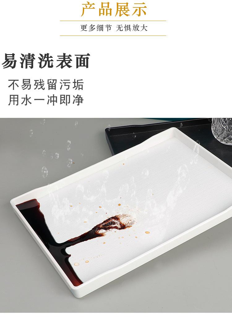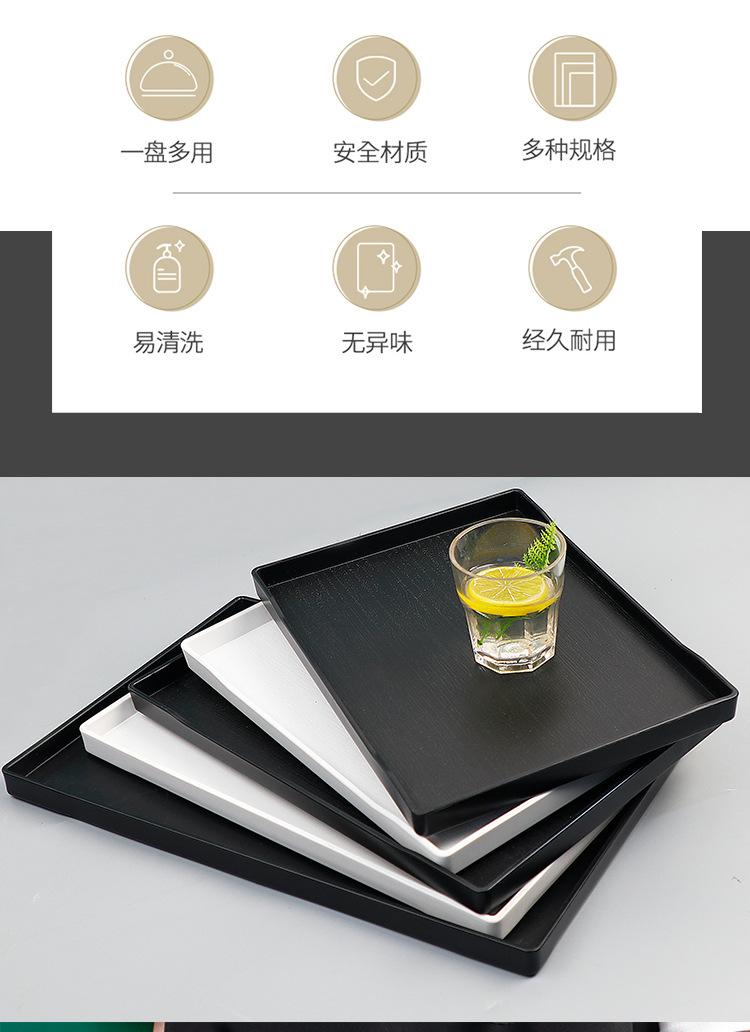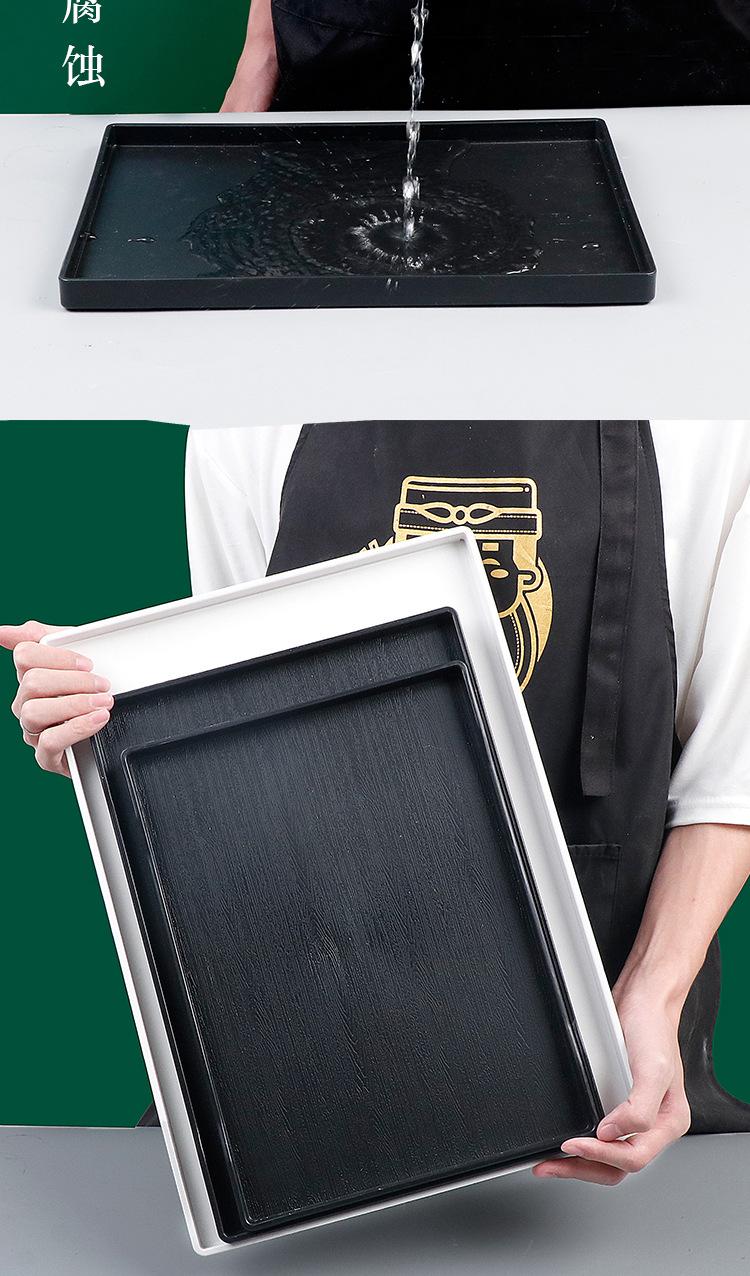 Bandeja antideslizante de plástico con veta de madera, rectangular, comercial, para habitación de hotel, para tazas de agua, té, artículos de tocador