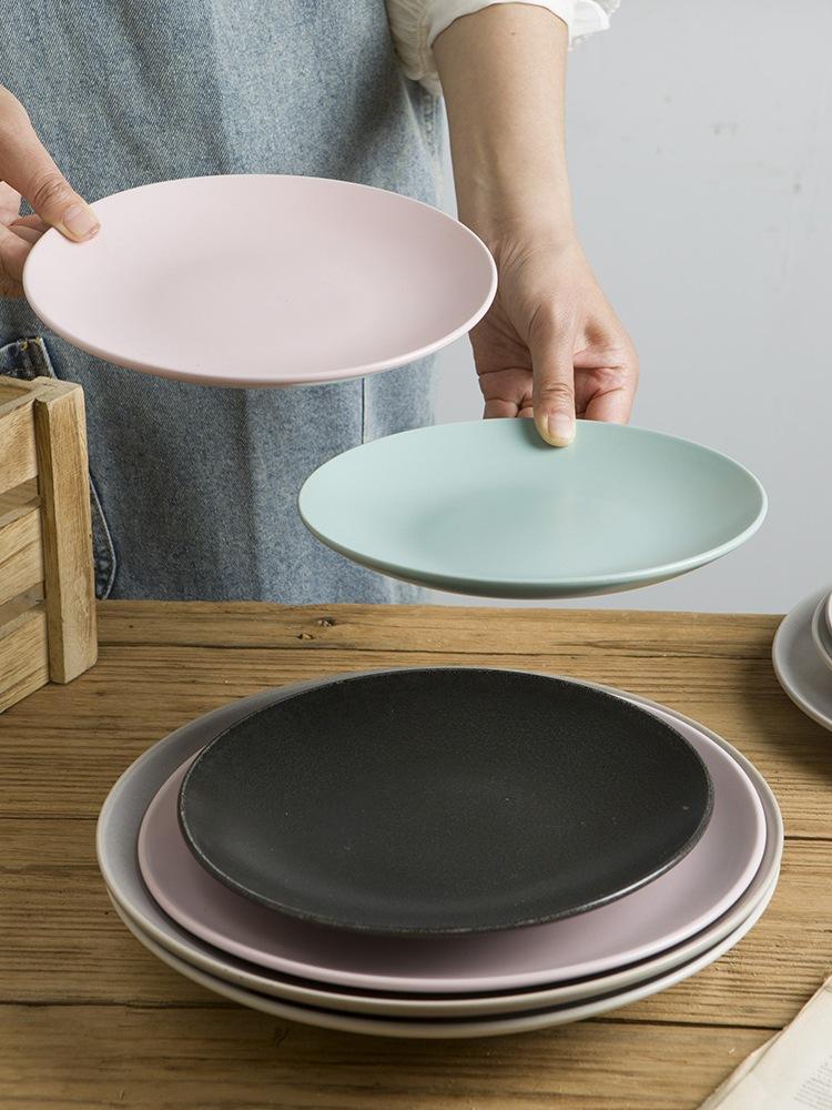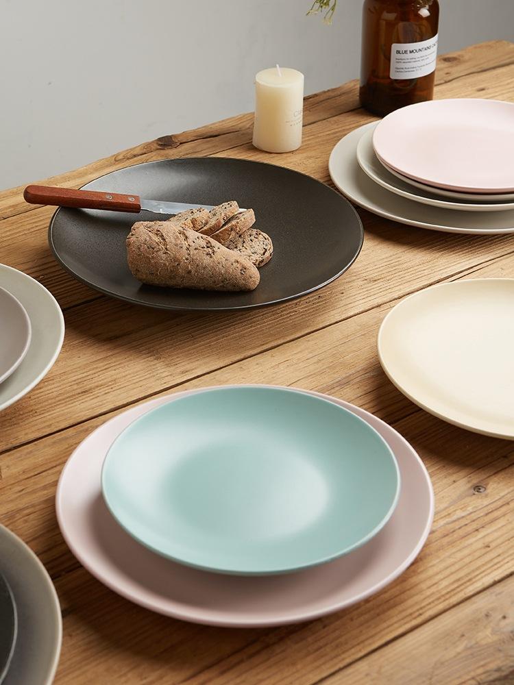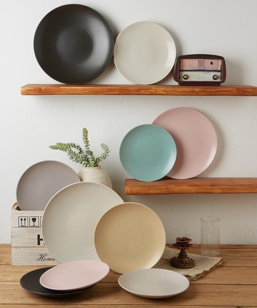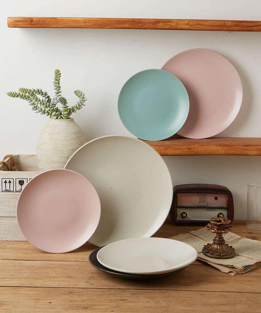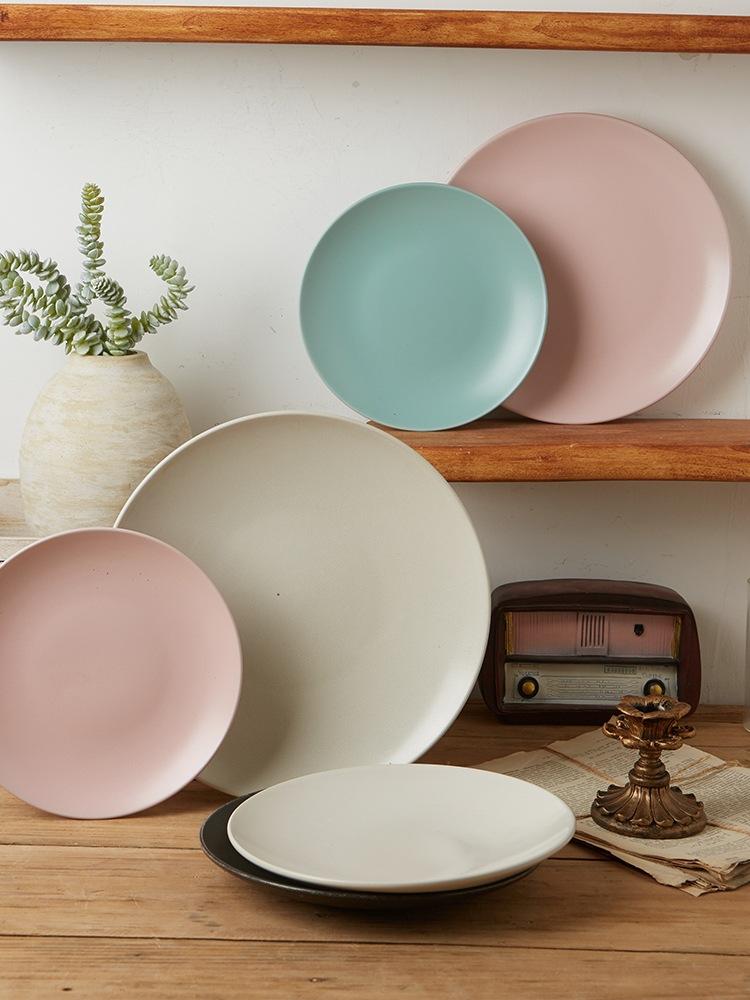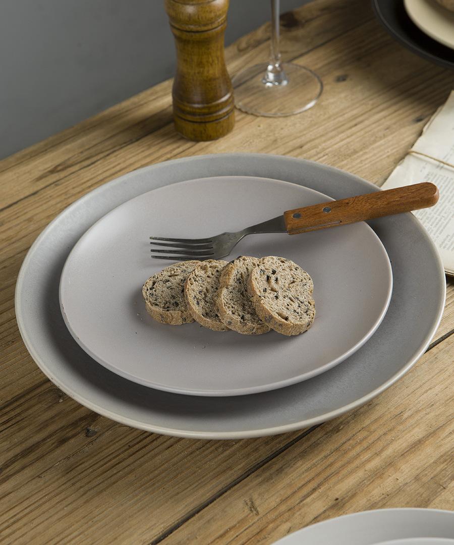 Vajilla de cerámica defectuosa, plato de restaurante doméstico, plato de comida occidental retro, plato de carne, plato de color bajo esmaltado, hermoso