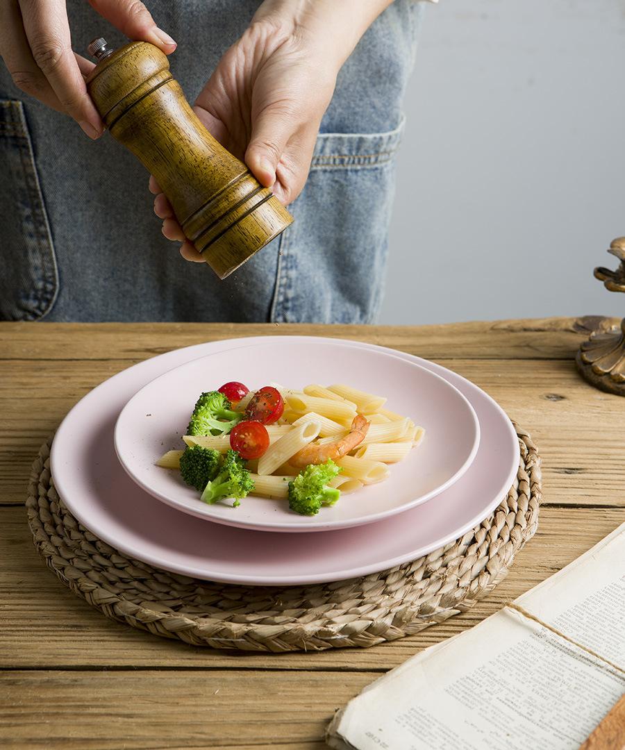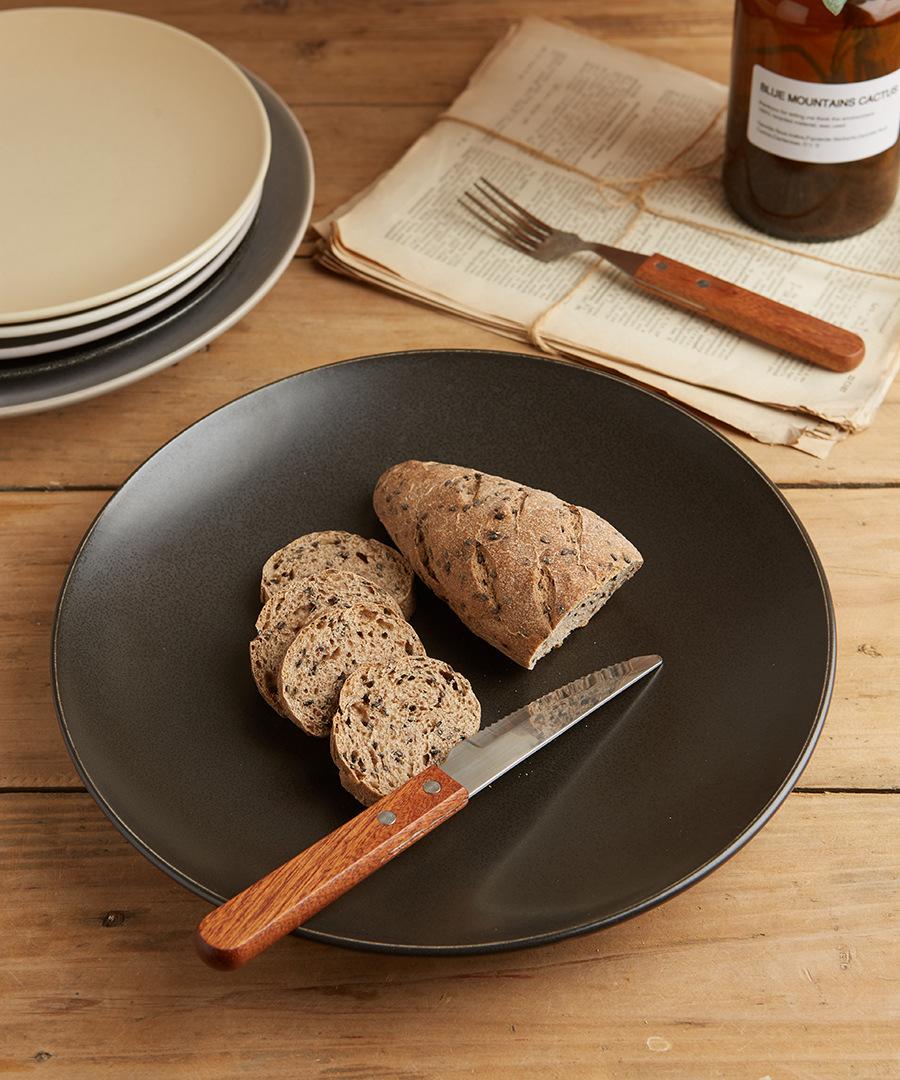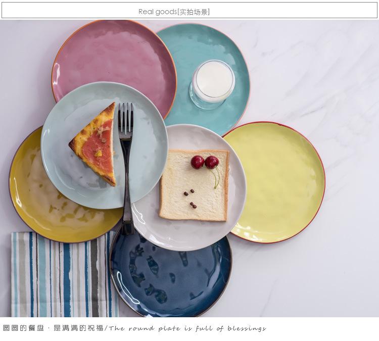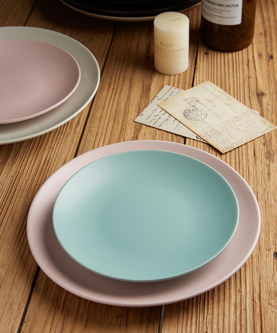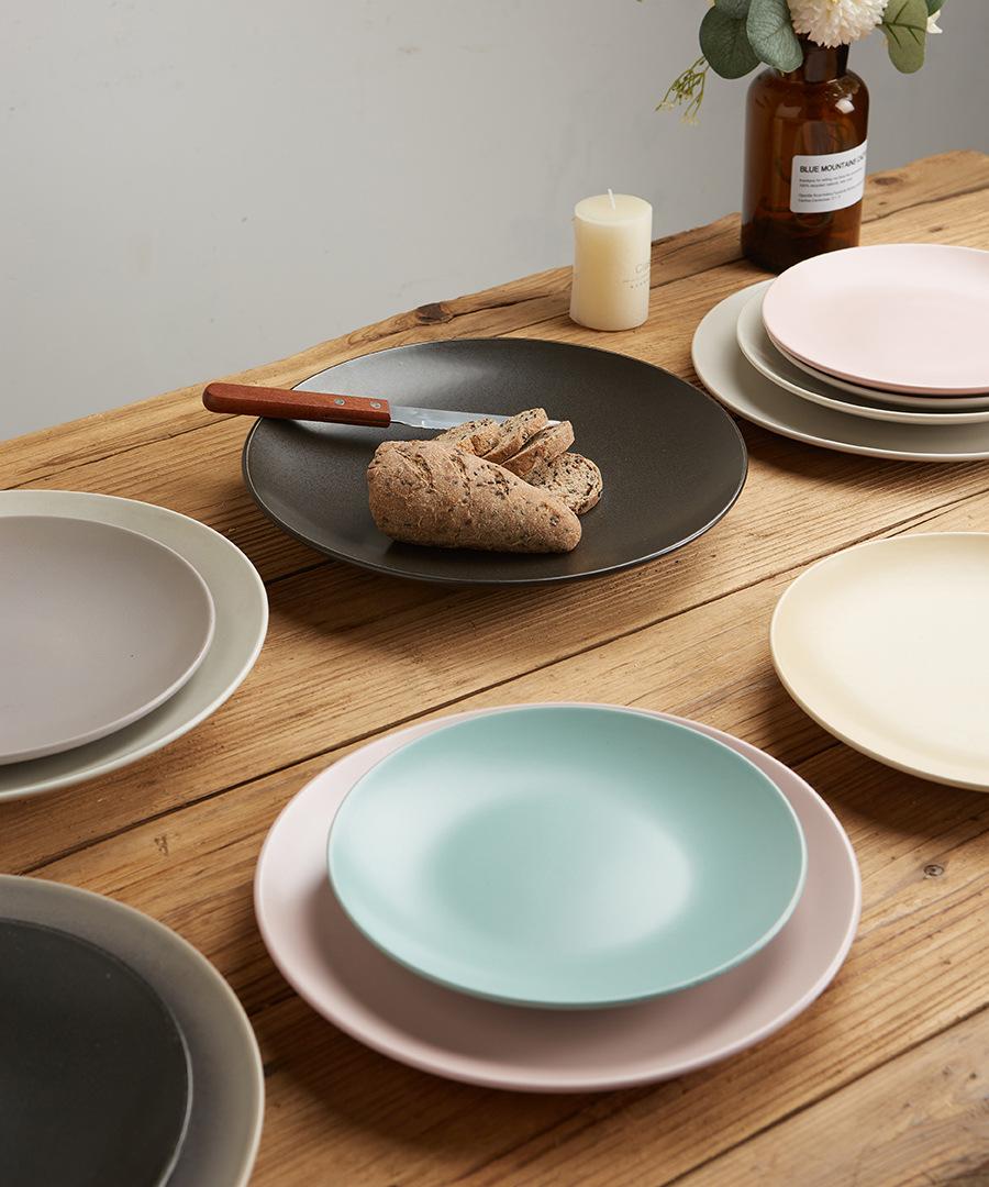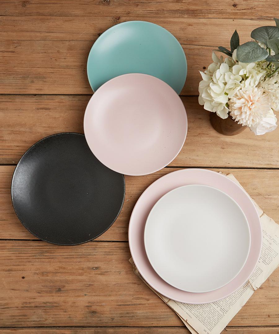 Vajilla de cerámica defectuosa, plato de restaurante doméstico, plato de comida occidental retro, plato de carne, plato de color bajo esmaltado, hermoso