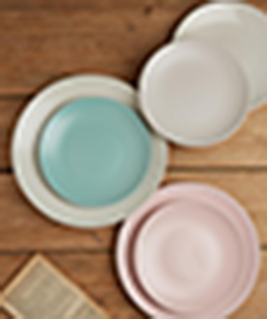 Khaki faloro pink small plate, Gray french pink plate, Green faro light gray small plate, Dark green french li...
