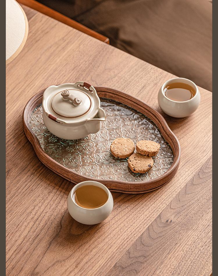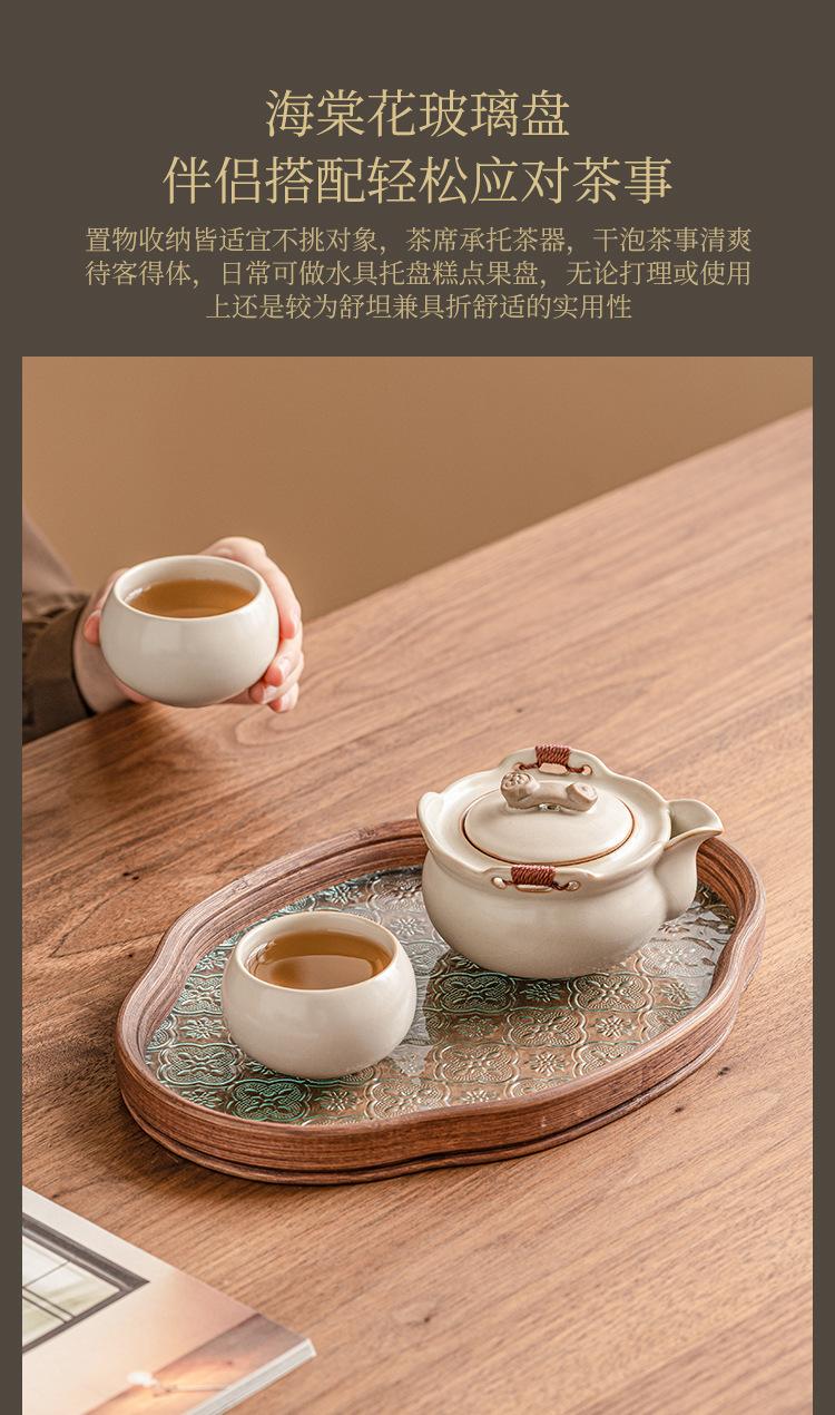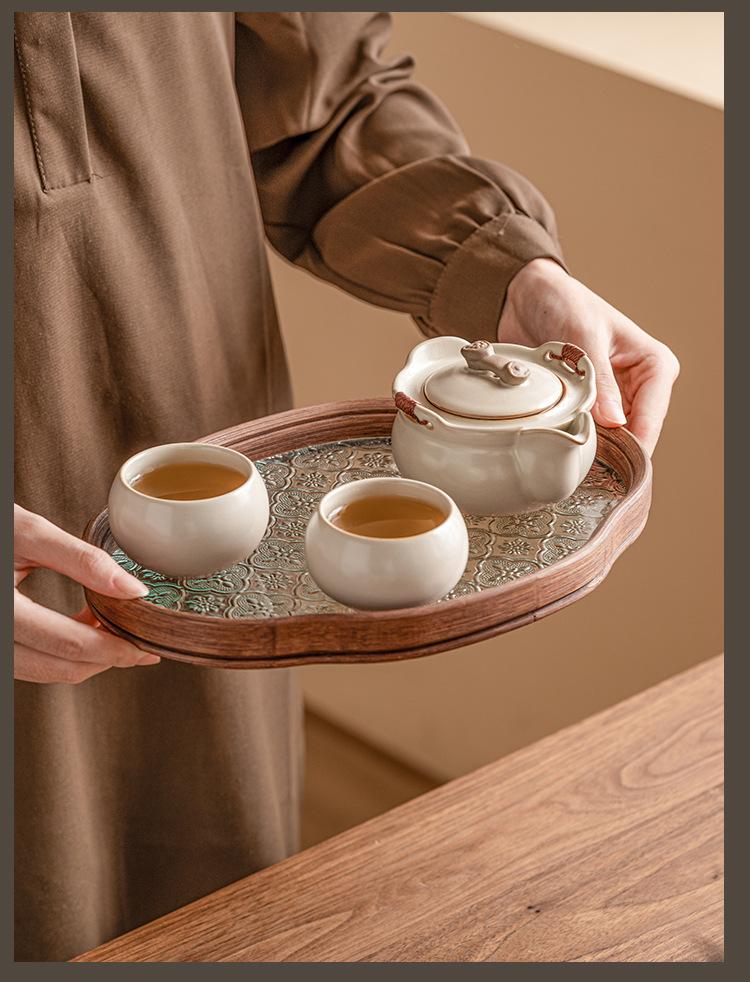 Beige ru kiln_ruyi hand pot, one pot, two cups + begonia plate [simple pack]