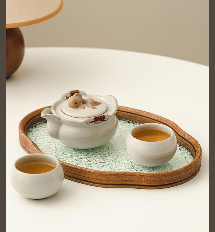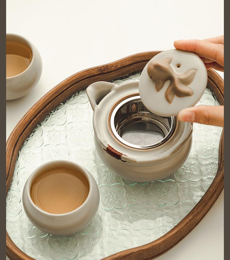 Beige ru kiln_koi hand pot, one pot and two cups [simple decoration]