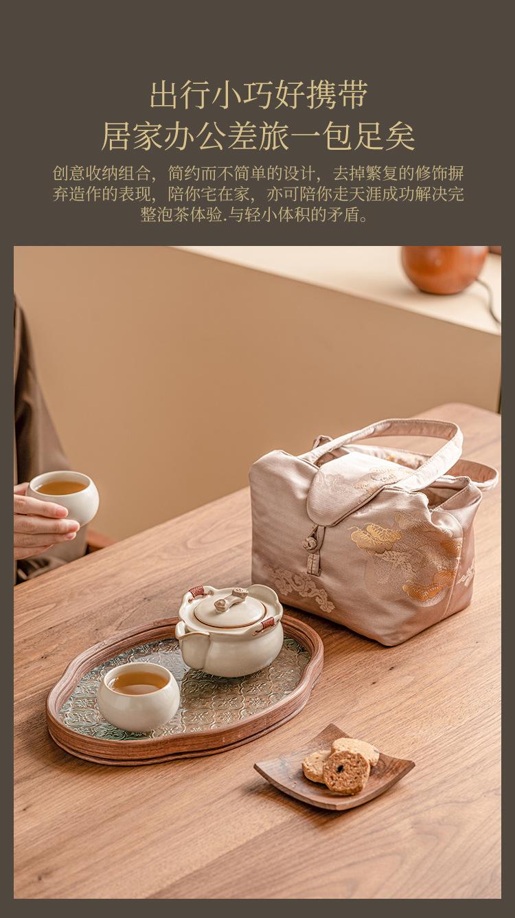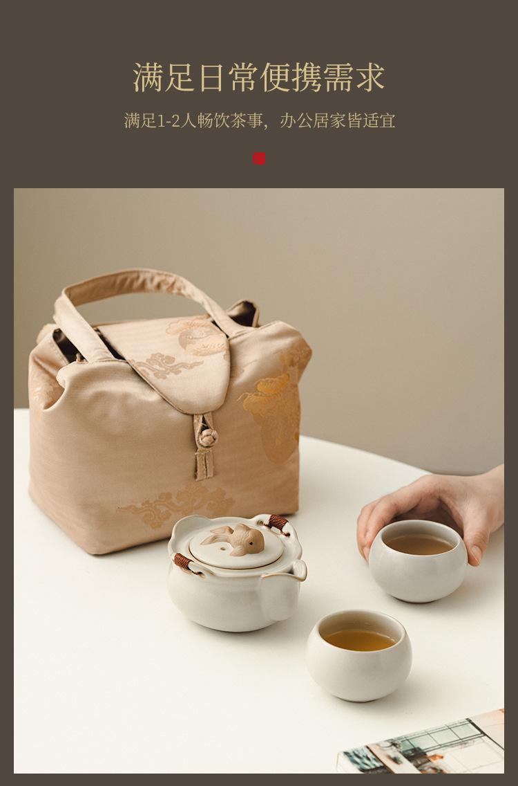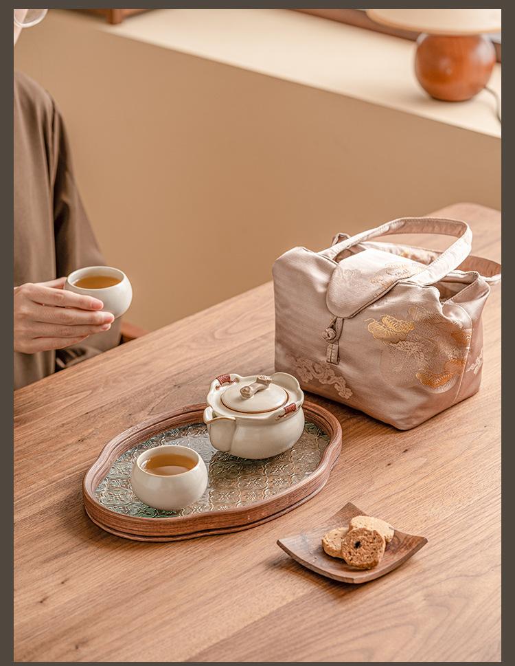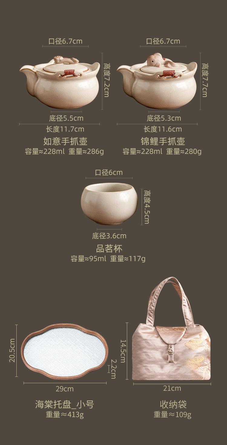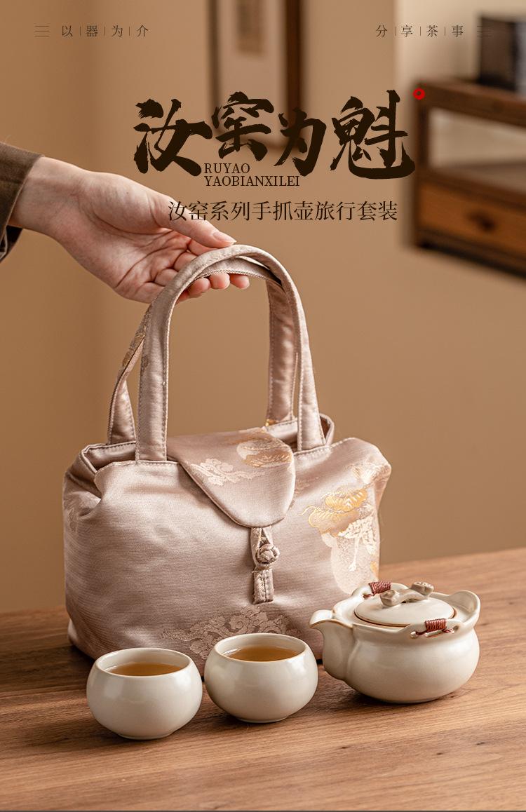 Beige ru kiln_ruyi hand pot, one pot and two cups [brocade bag]