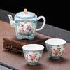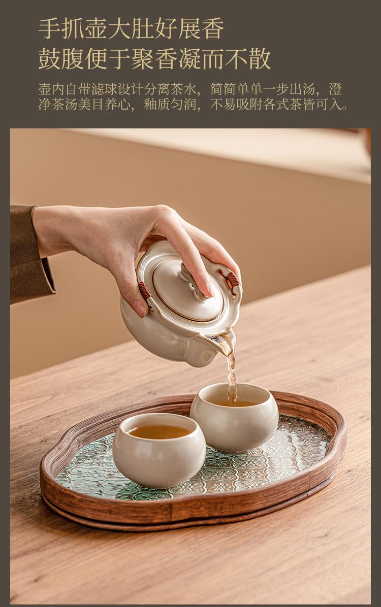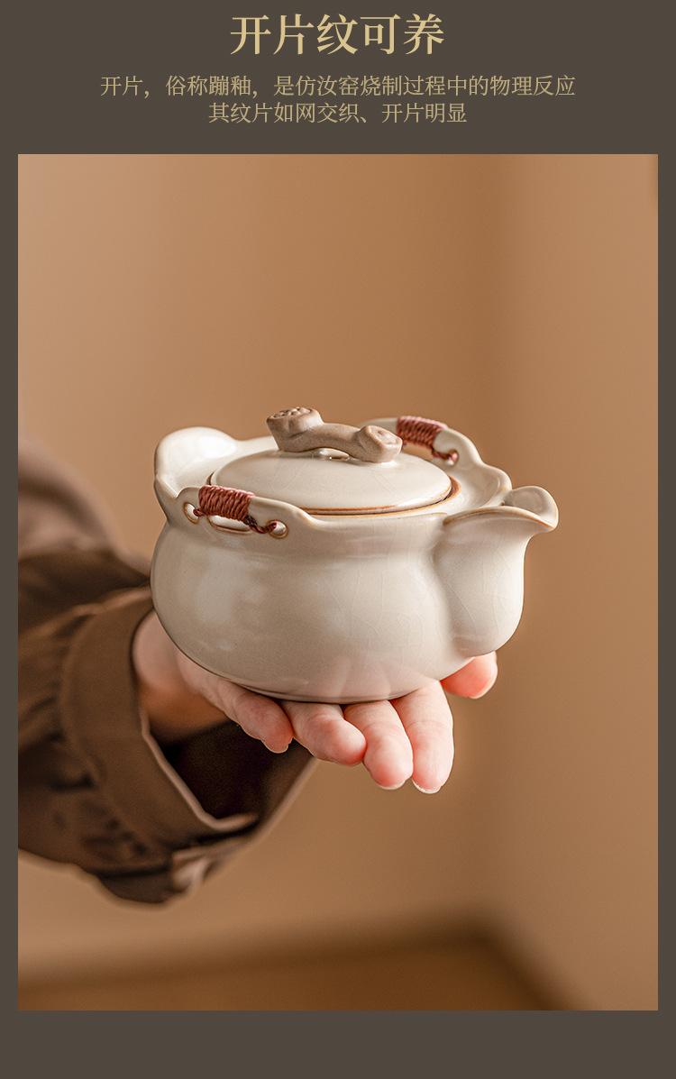 Beige ru kiln_ruyi hand pot, one pot and two cups [simple decoration]