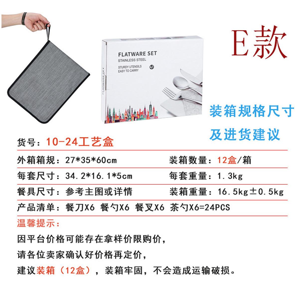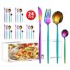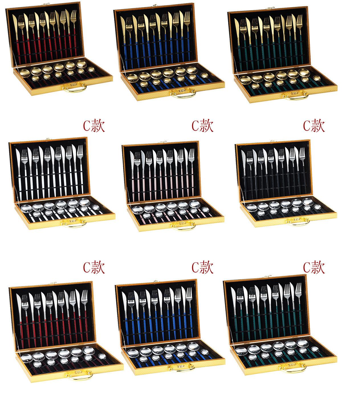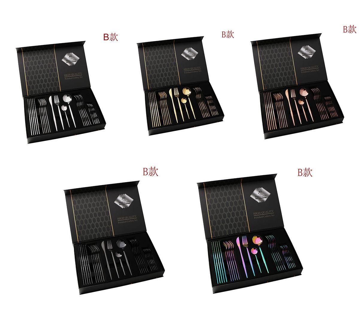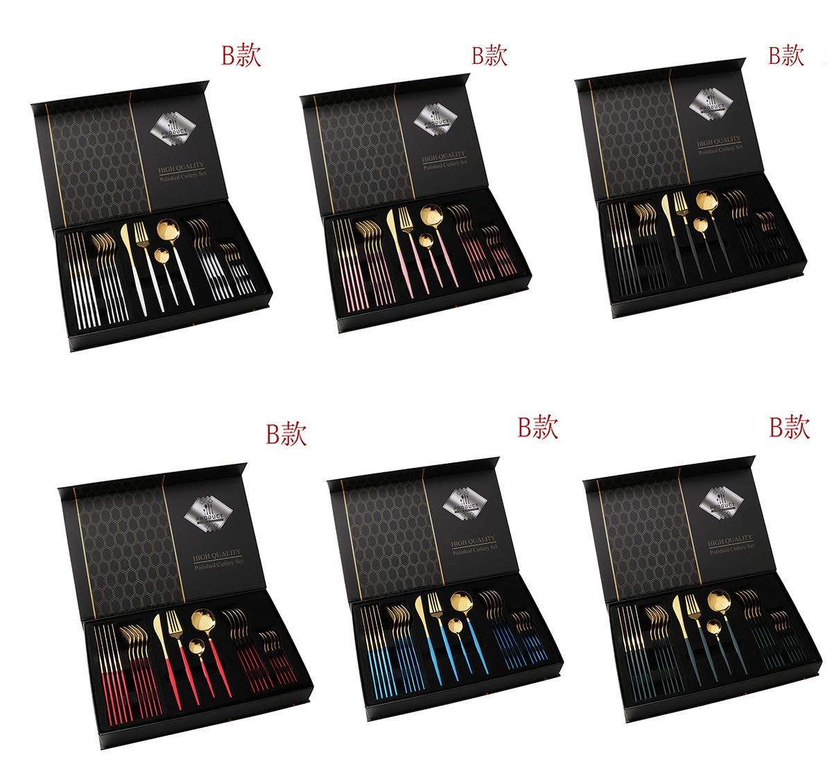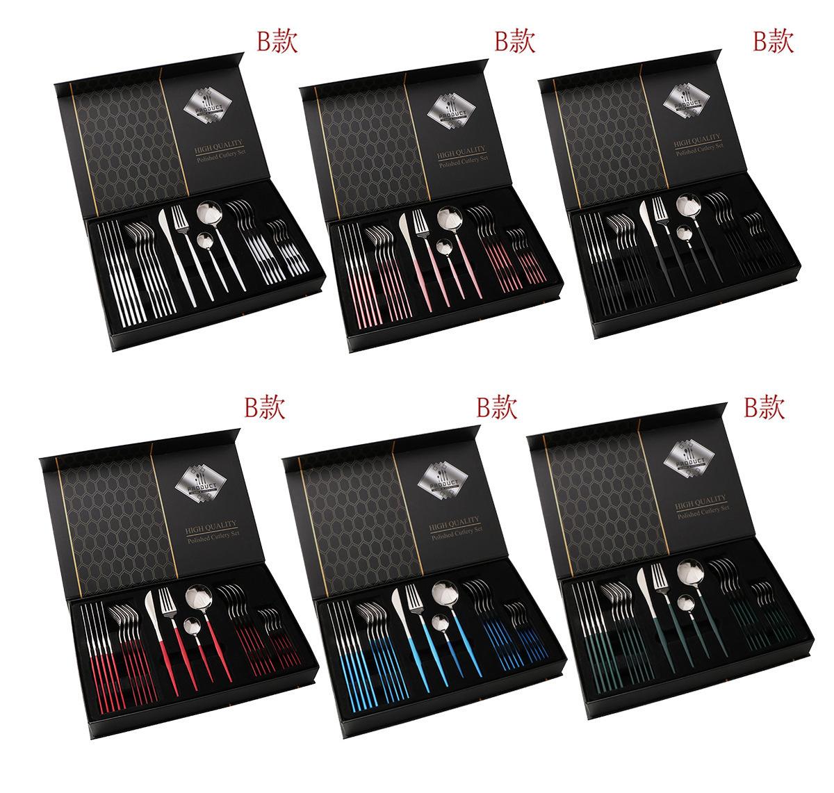 Vajilla Portuguesa de Acero Inoxidable de Venta Caliente Transfronteriza Juego de Caja de Regalo Exquisito de 24 Piezas Cuchillo, Tenedor y Cuchara para Bistec Comida Occidental