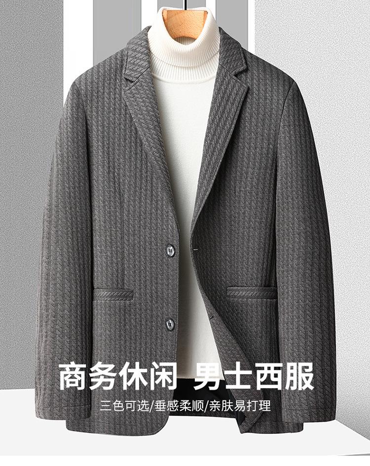 Traje Casual de Primavera y Otoño Chaqueta de Traje de Punto Slim-fit de Dos Botones para Hombre Primavera y Otoño Papá de Mediana Edad Top Occidental Individual