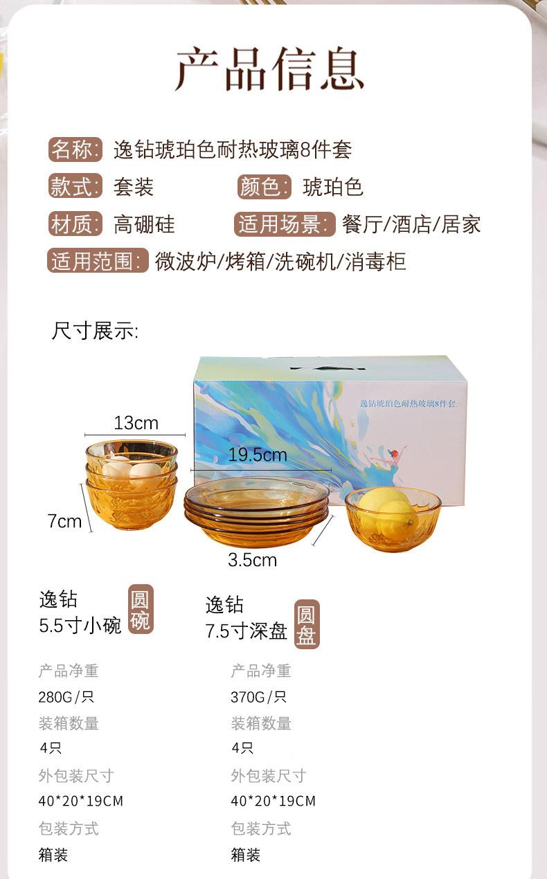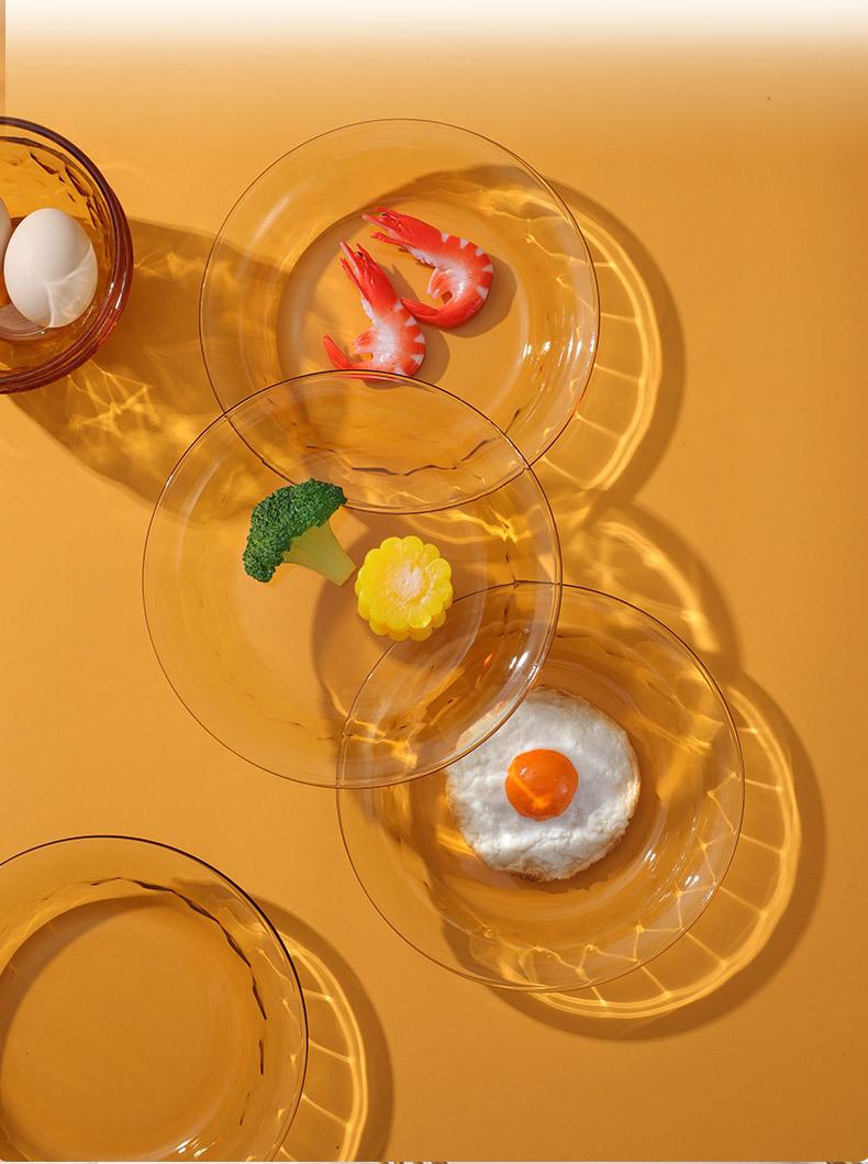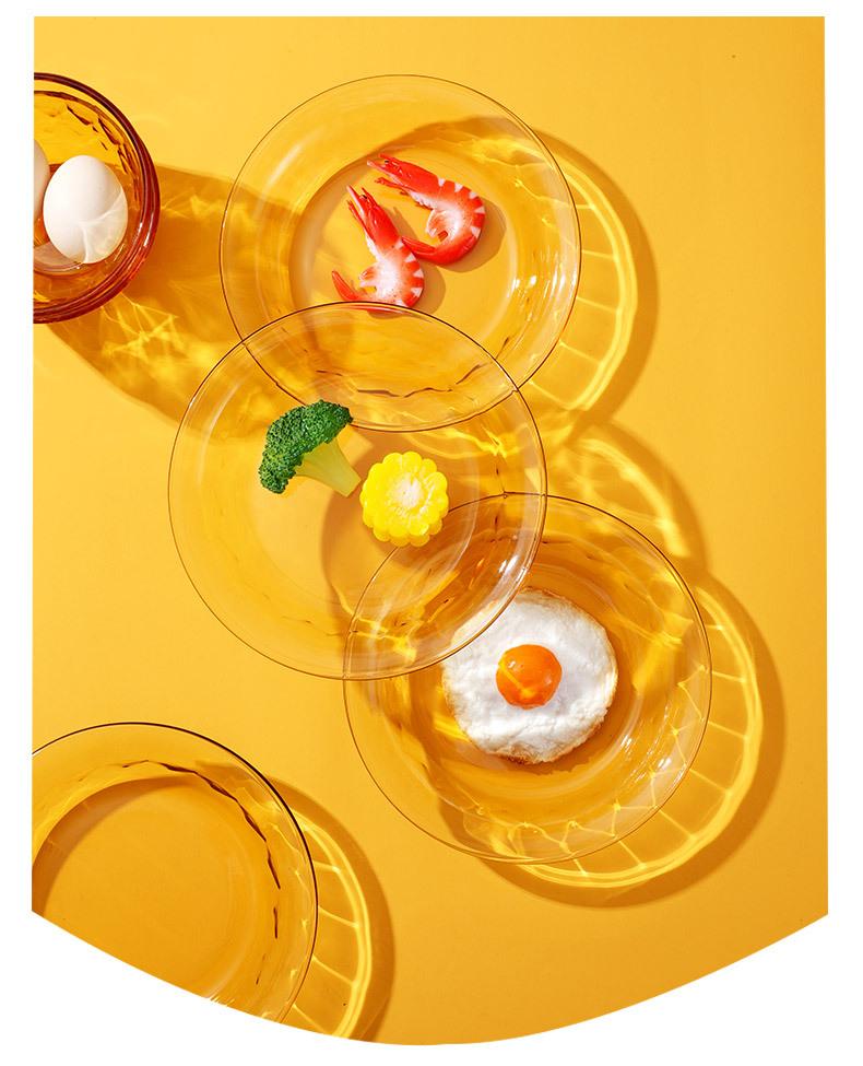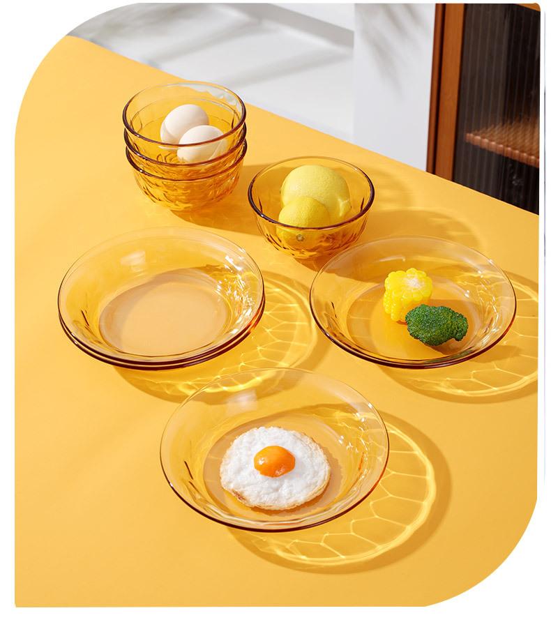 Juego de vajilla de ocho piezas de vidrio de borosilicato resistente al calor de color ámbar para horno microondas doméstico.