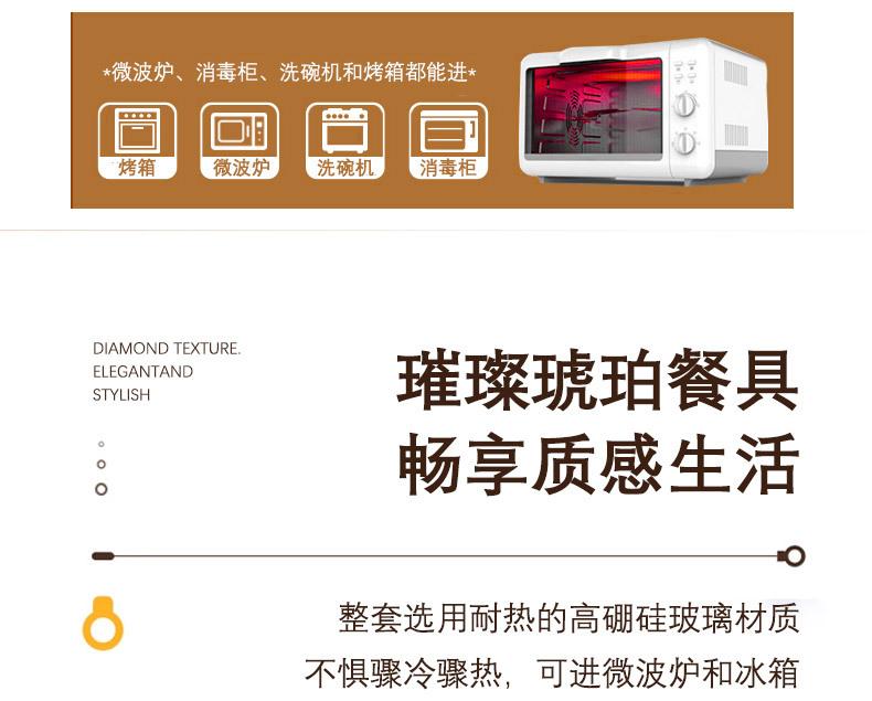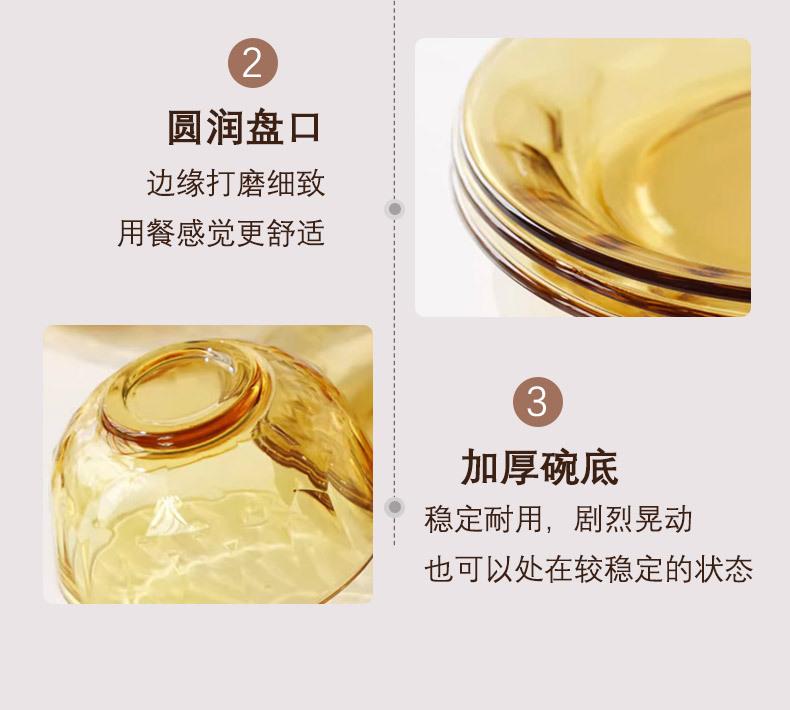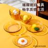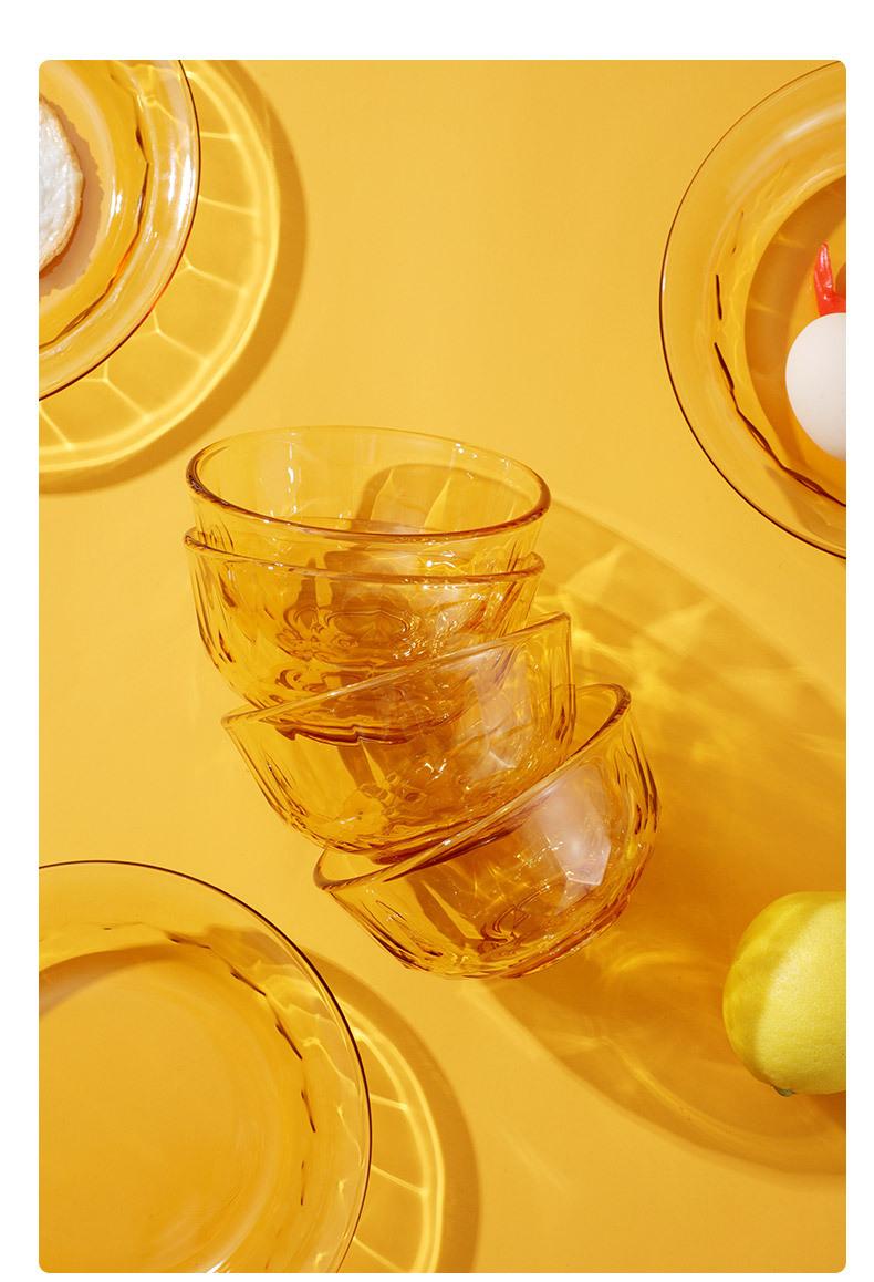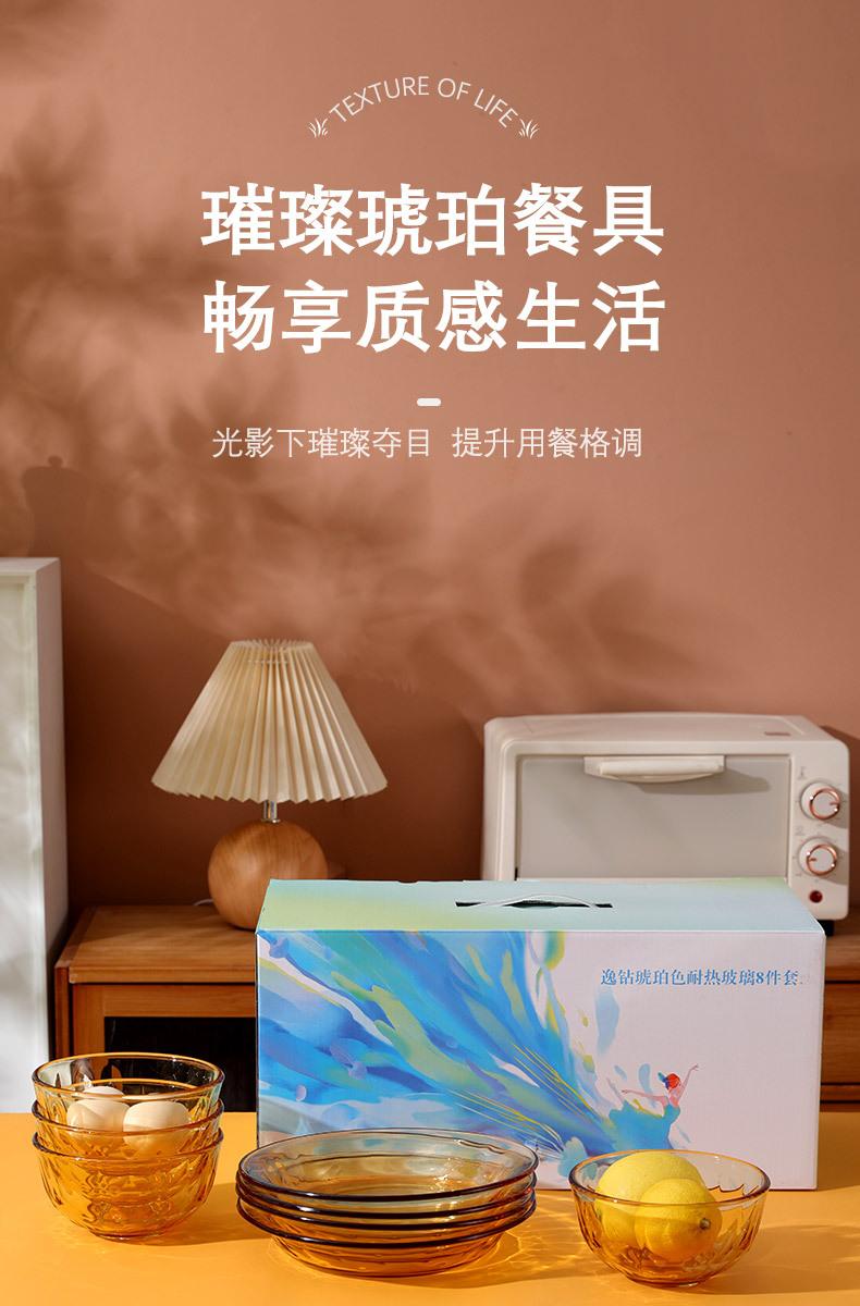 Juego de vajilla de ocho piezas de vidrio de borosilicato resistente al calor de color ámbar para horno microondas doméstico.