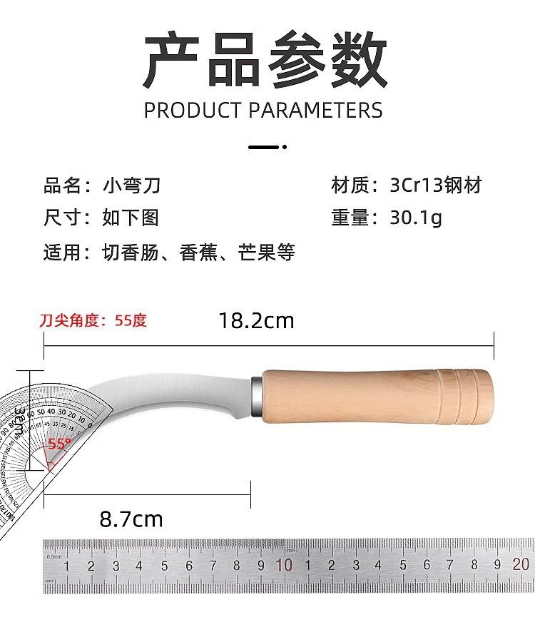 Machete Pequeño de Acero Inoxidable Cuchillo para Plátano Hoz Pequeña Cortar Verduras Cuchillo para Fruta Cortar Puerro Cuchillo para Plátano Doméstico Cuchillo Pelador