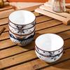 Tazón Vintage Azul y blanco con color bajo cubierta Juego de tazón para sopa doméstico Tazón para arroz Taza para desayuno Plato de cerámica grande