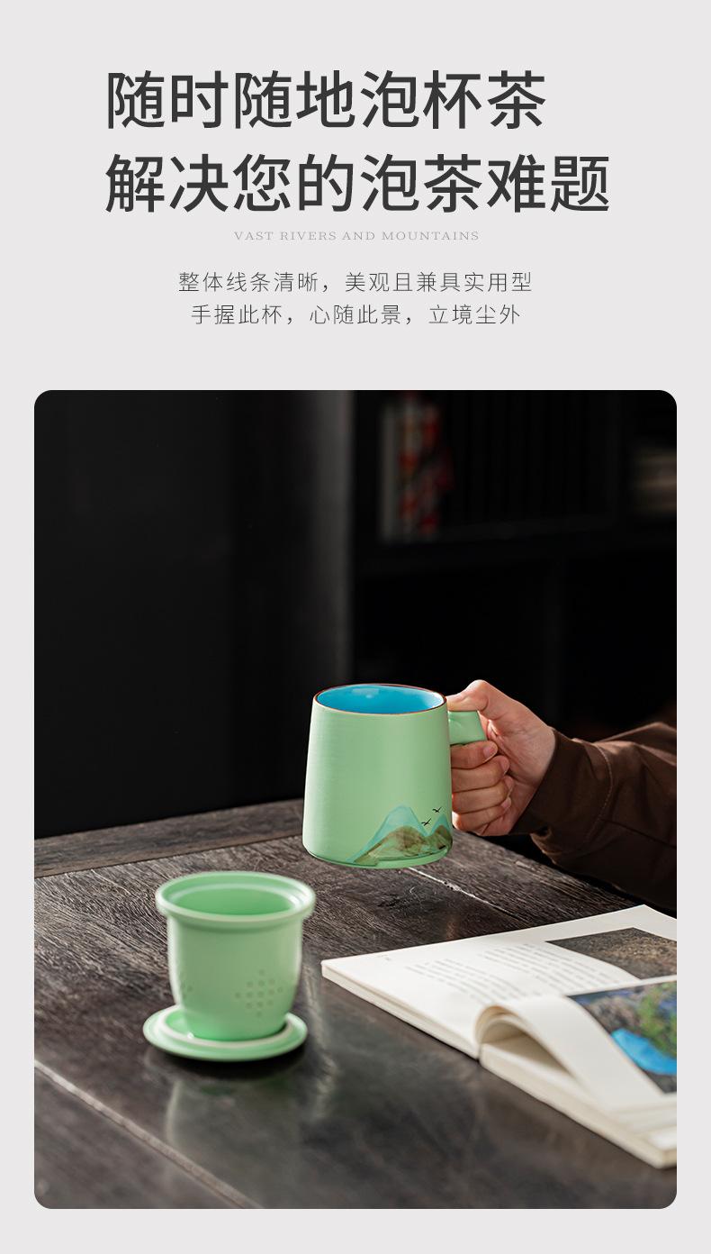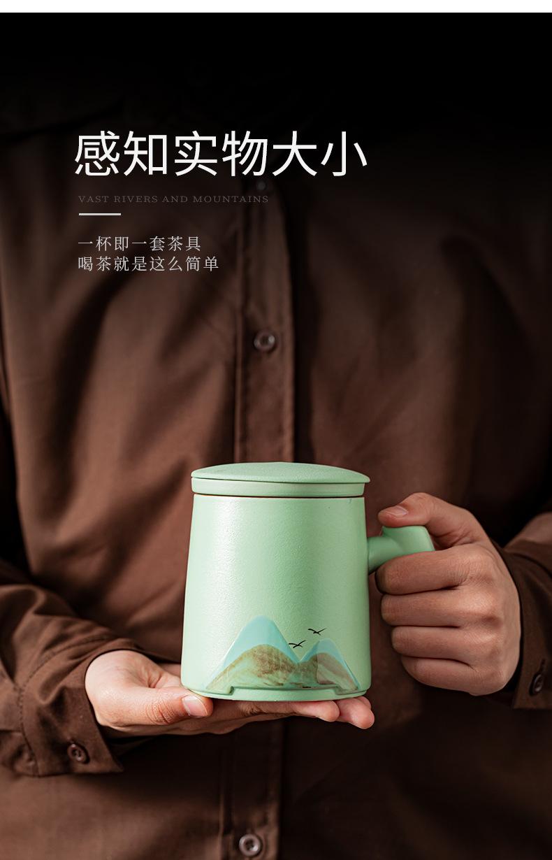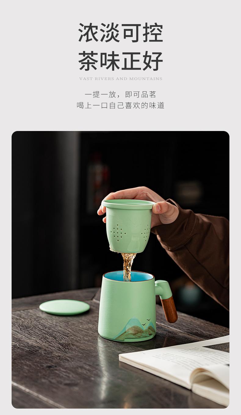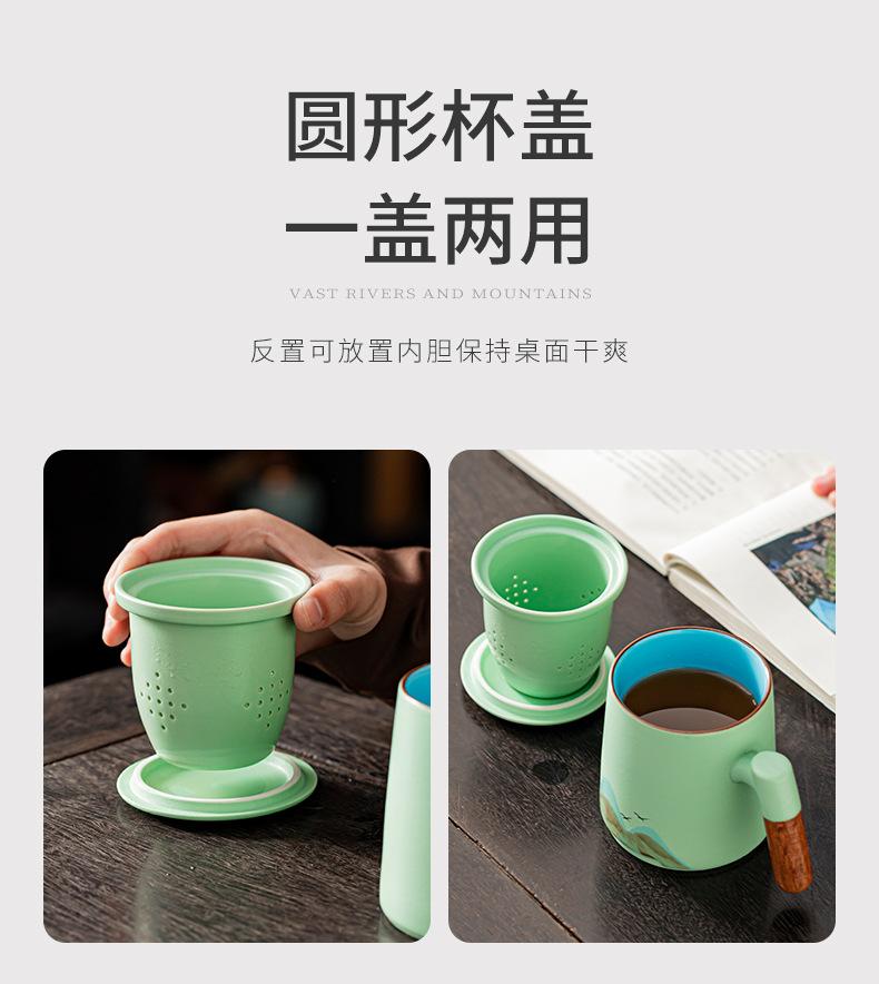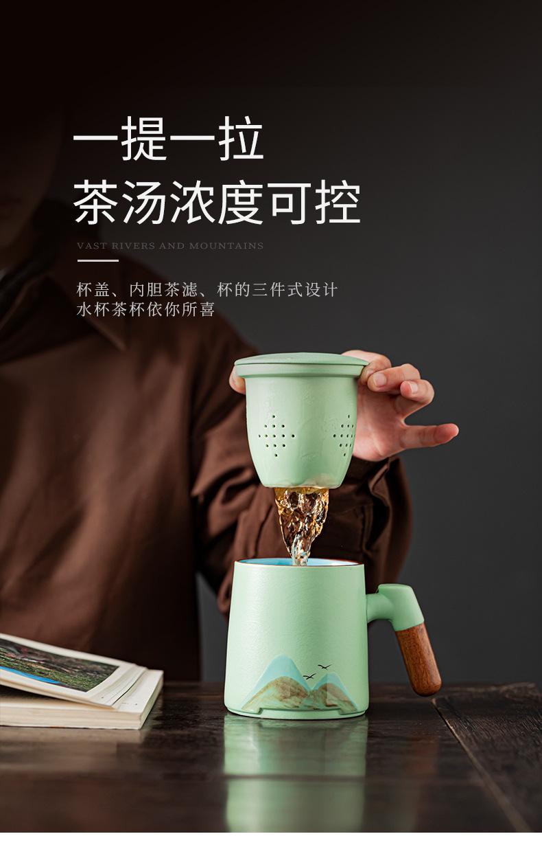 Taza de oficina de cerámica gres con tapa filtro taza de té taza separadora de té taza para beber té en la oficina