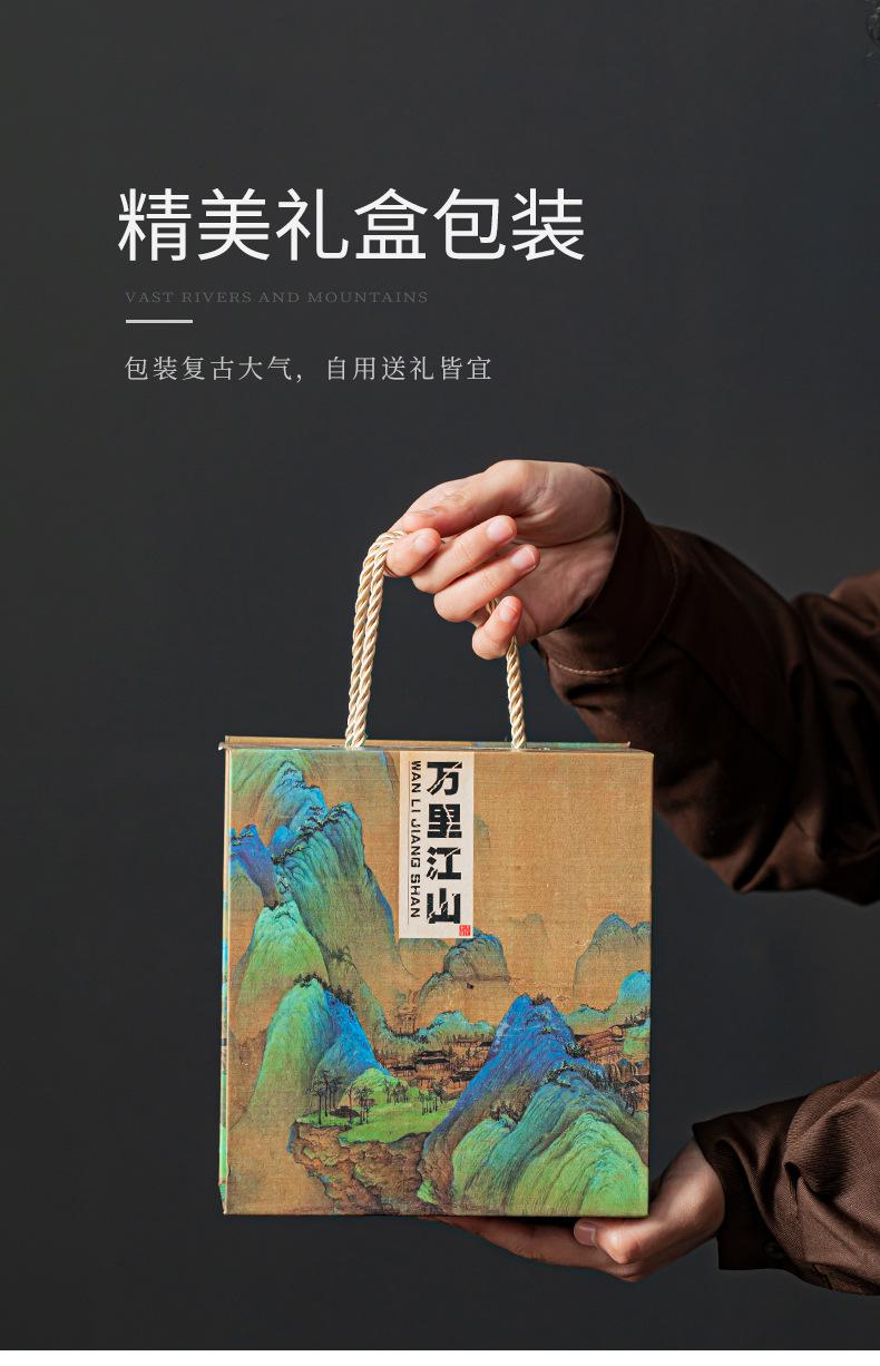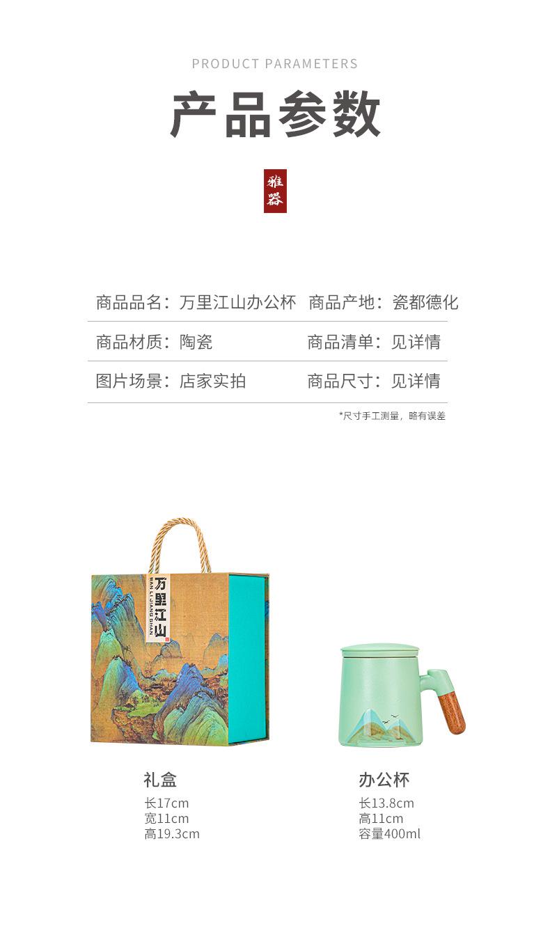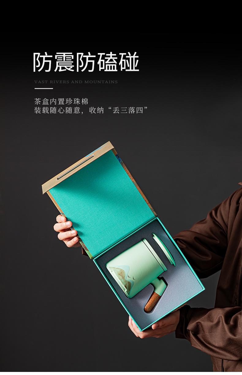 Wanli Jiangshan Porcelain Wood Office Cup-Green Gift Box