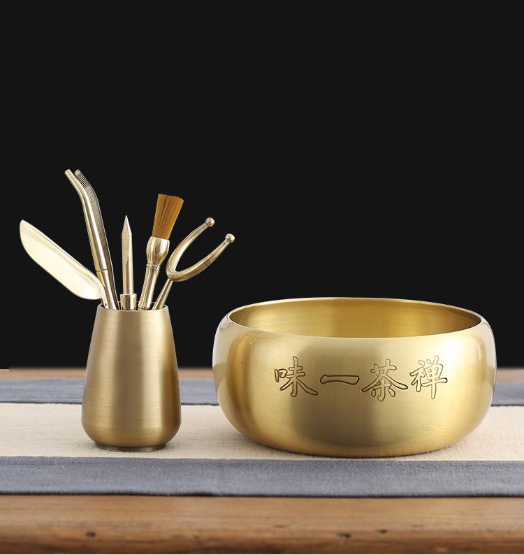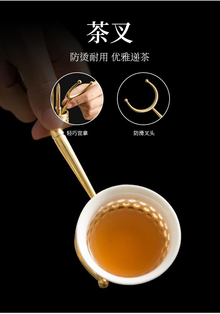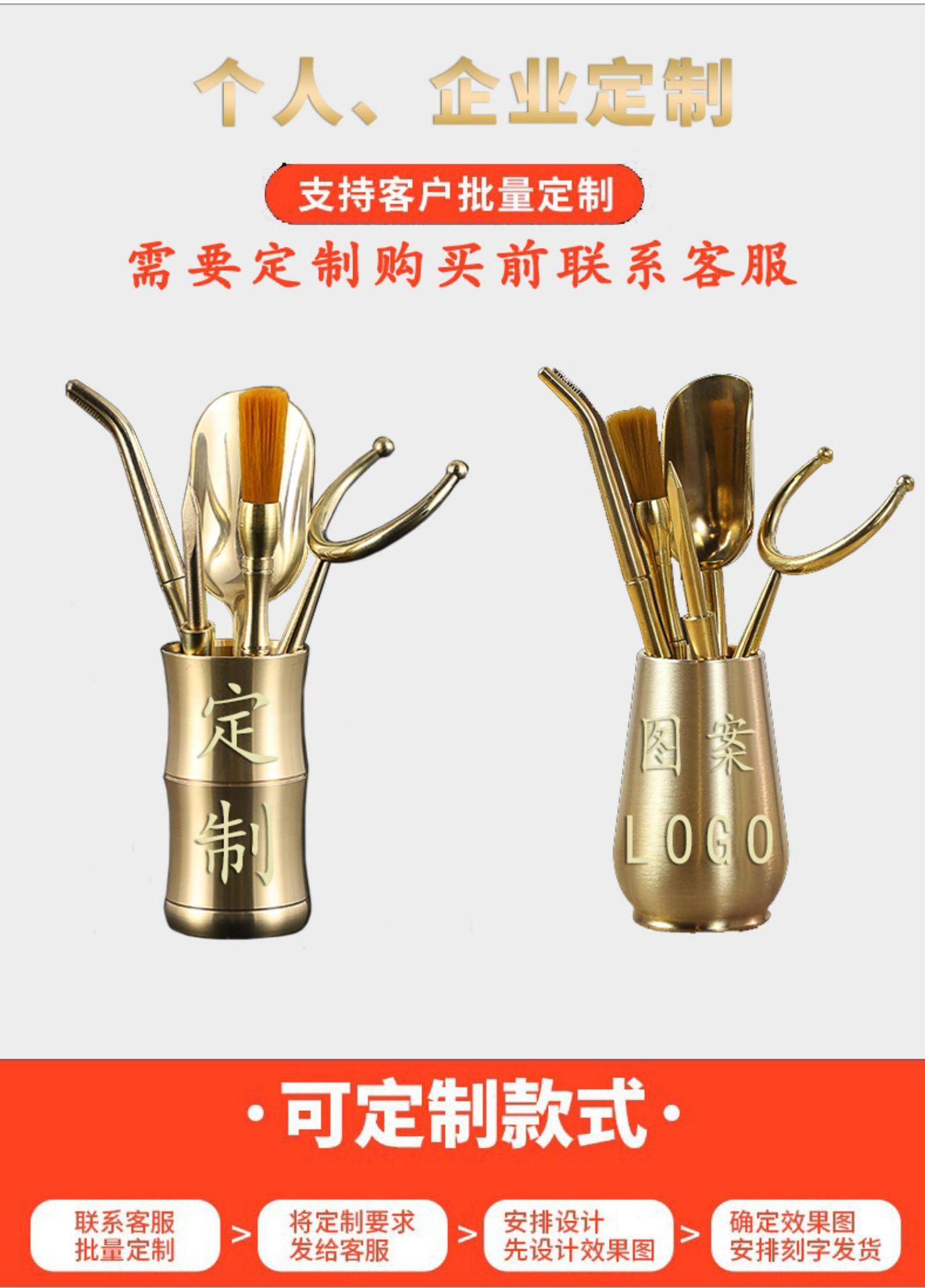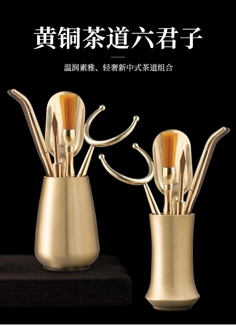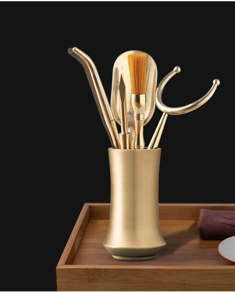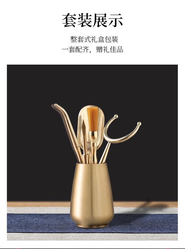 Juego de Lavado de Té de Ceremonia del Té de Latón, Aguja de Té, Accesorios de Té Kung Fu, Herramientas Completas para Hacer Té, Pinzas de Té Seis Caballeros