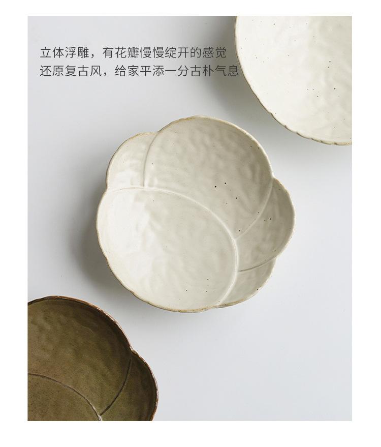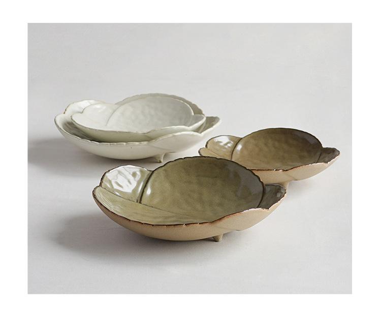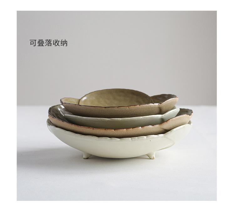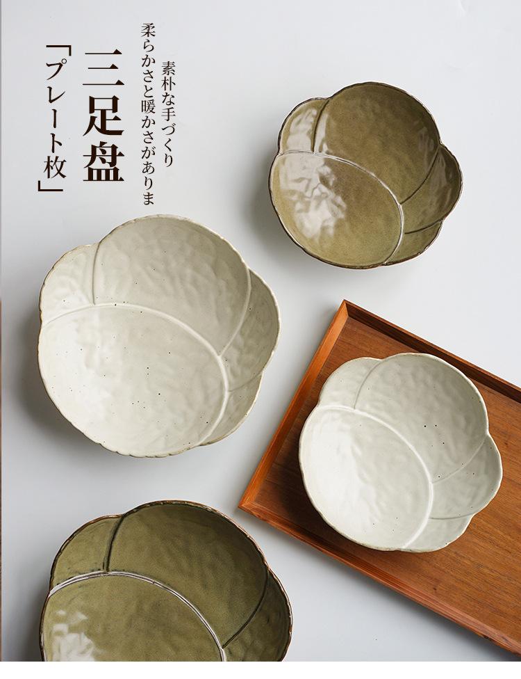 Plato de ciruela vintage de estilo japonés, plato de cerámica, plato de fruta para el hogar, plato de cena, plato creativo de tres patas con flores, plato de ensalada