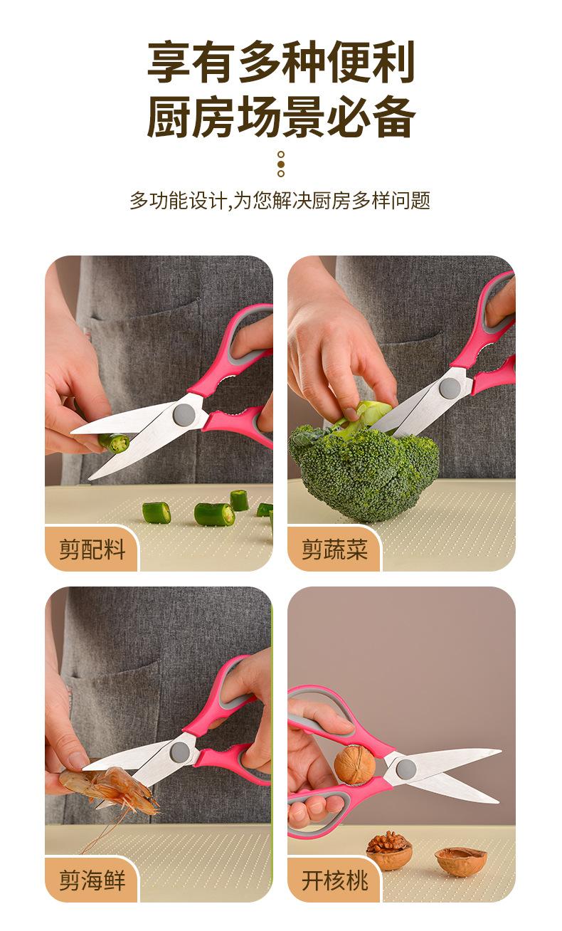 Tijeras de Cocina Domésticas Multifunción Clip Nuez Raspado Escamas de Pescado Garras de Pollo Tijeras Acero Inoxidable Tijeras para Alimentos con Vaina