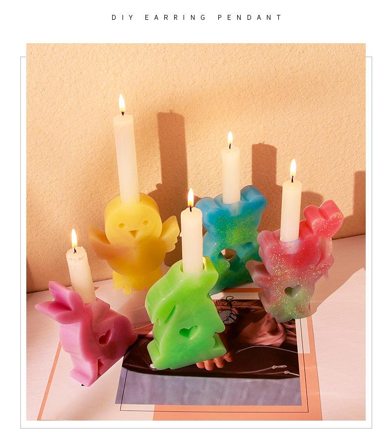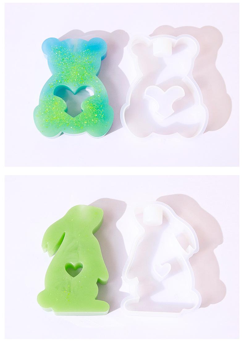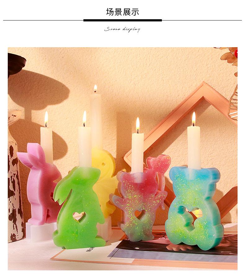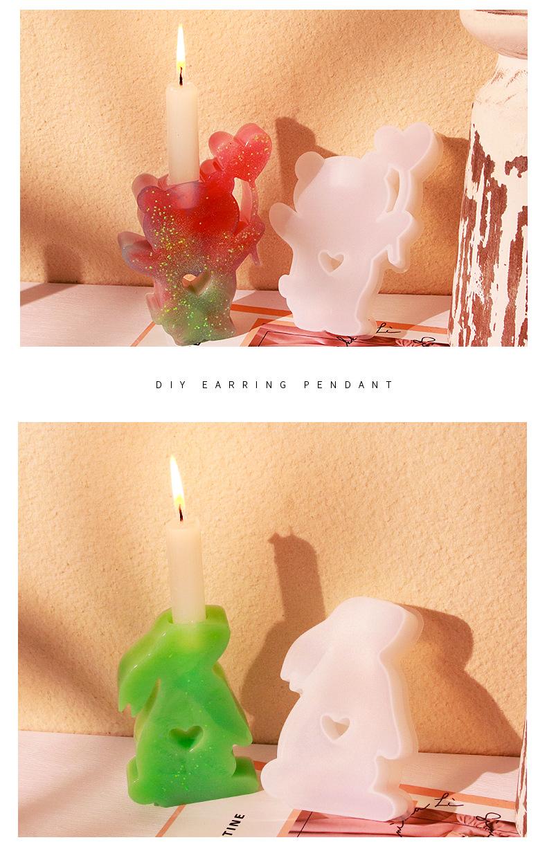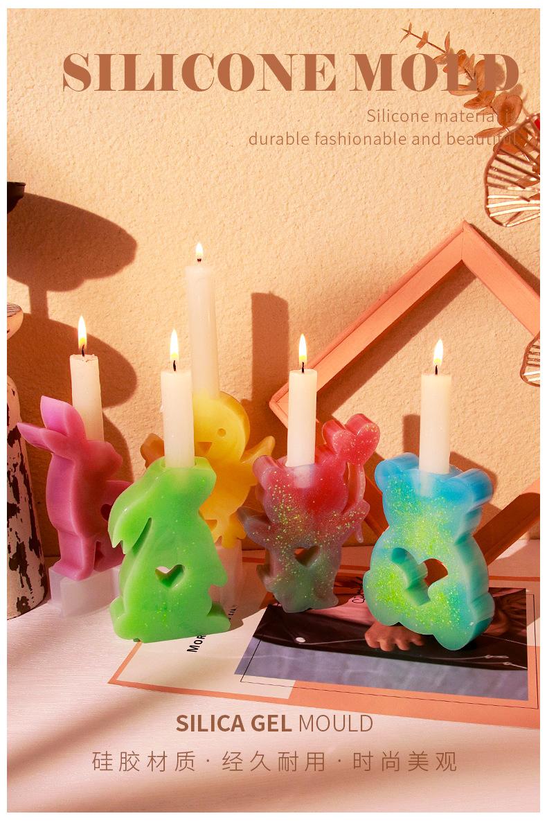Molde de silicona para candelabro con forma de conejo, molde para aromaterapia, yeso, cemento, decoración, mesa, herramienta de pulido, bricolaje, con forma de animal de amor y epoxi