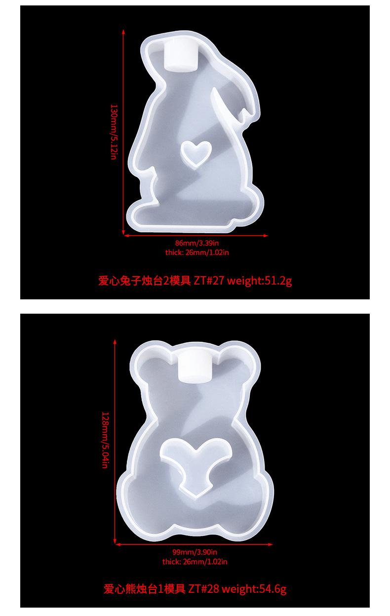 Love rabbit Candlestick 1 mold-ZT#26, Love rabbit Candlestick 2 mold-ZT#27, Love bear Candlestick 1 mold-ZT#28...