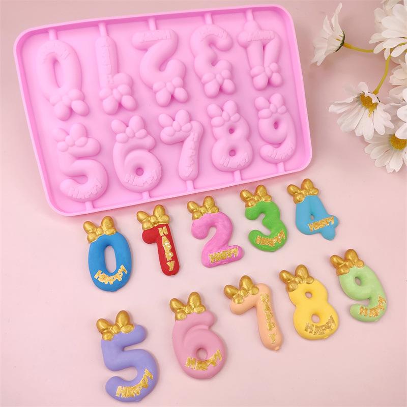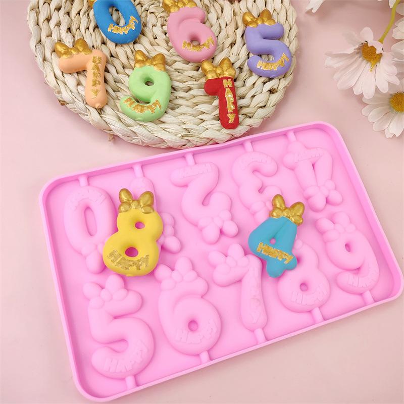 nombre:Molde de Piruleta Lazo Número 0-9 Molde para Chocolate Palito de Queso Molde DIY Decoración de Pastel Vela Molde Plug-in