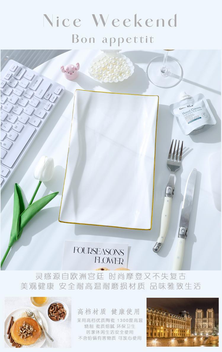 Vajilla de estilo europeo Phnom Penh, plato de cerámica creativo, plato rectangular, plato de postre, alitas de pollo, juego de platos de sushi, plato dietético