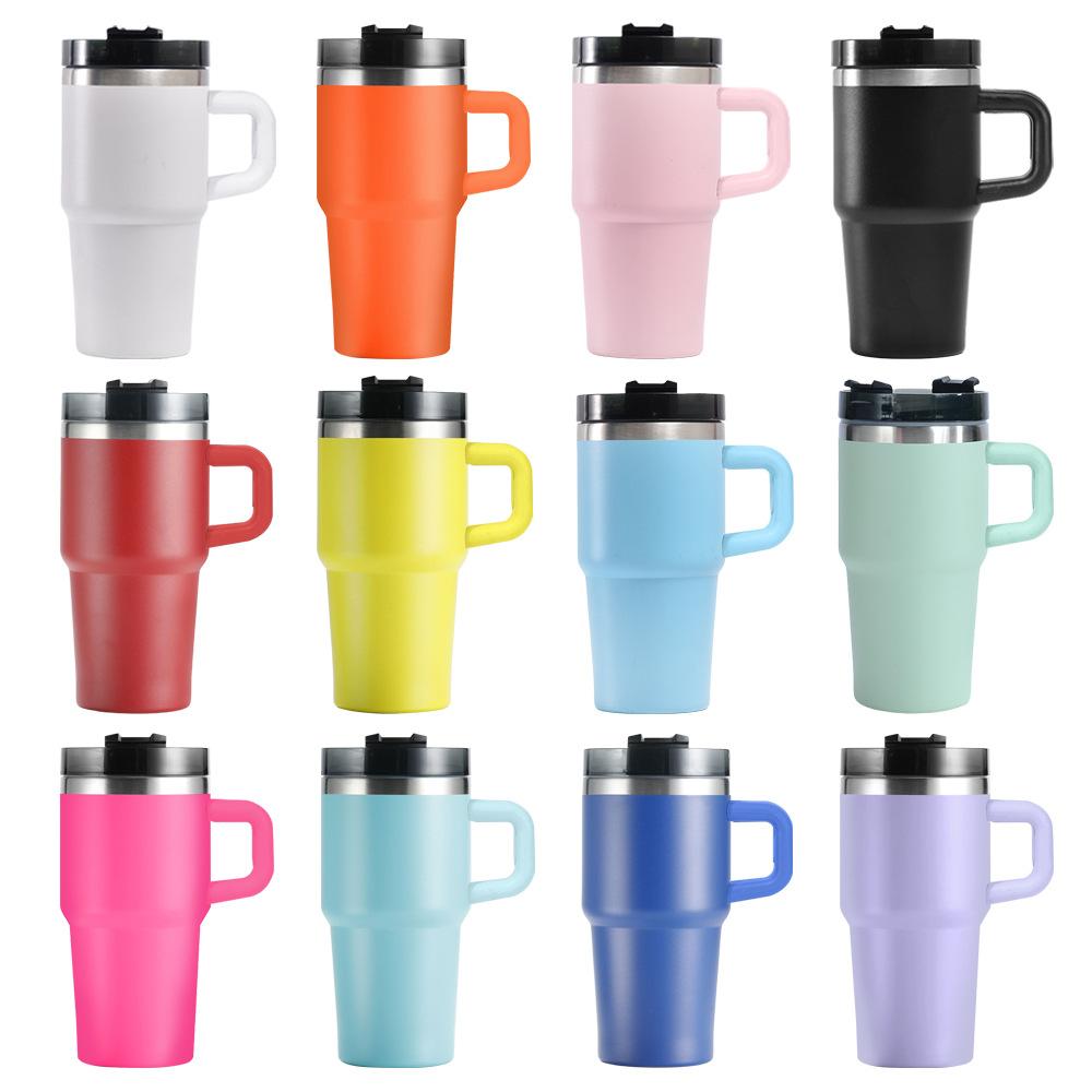 Nuevo termo de acero inoxidable para coche de 20 oz, mini taza con tubo de succión para deportes al aire libre 304, mini taza con asa para coche