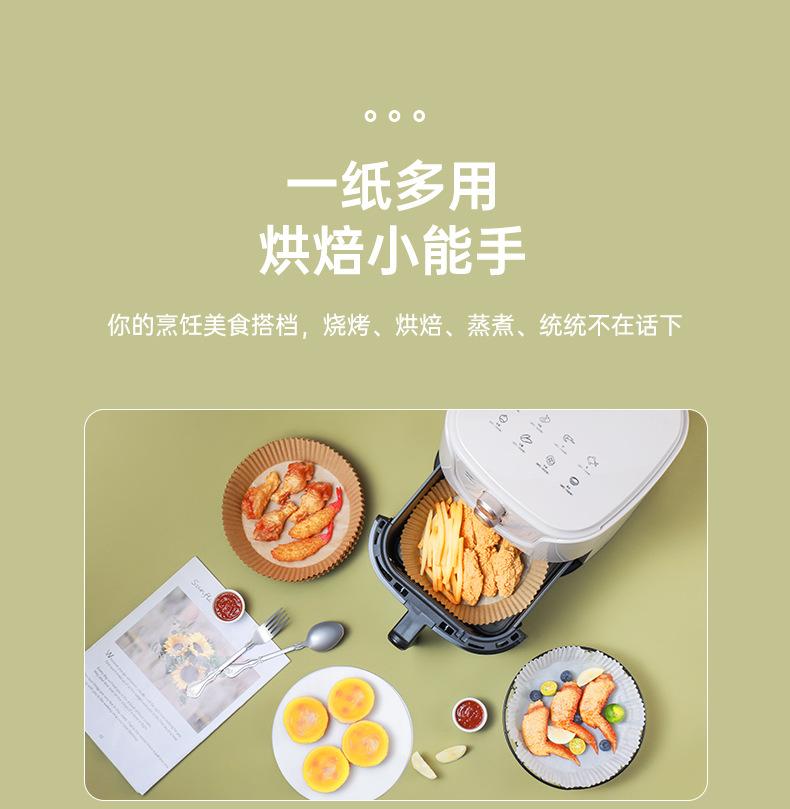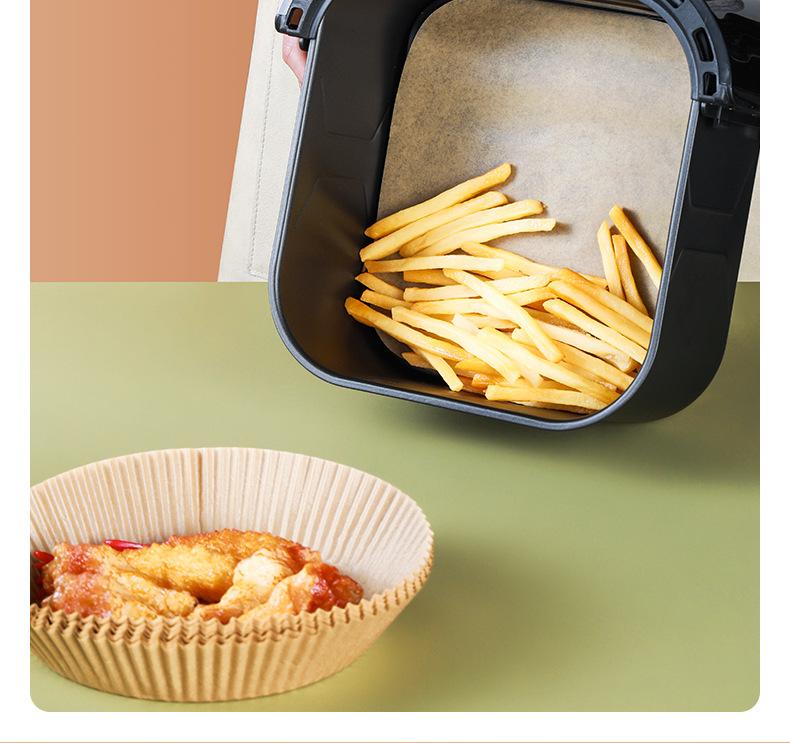 Plato de papel especial para freidora de aire doméstica, resistente a altas temperaturas, absorbente de aceite, para hornear alimentos en horno, papel de silicona para aceite, barbacoa, redondo