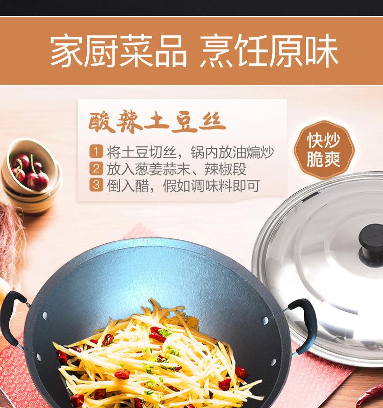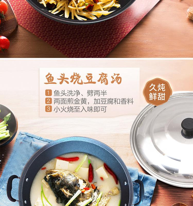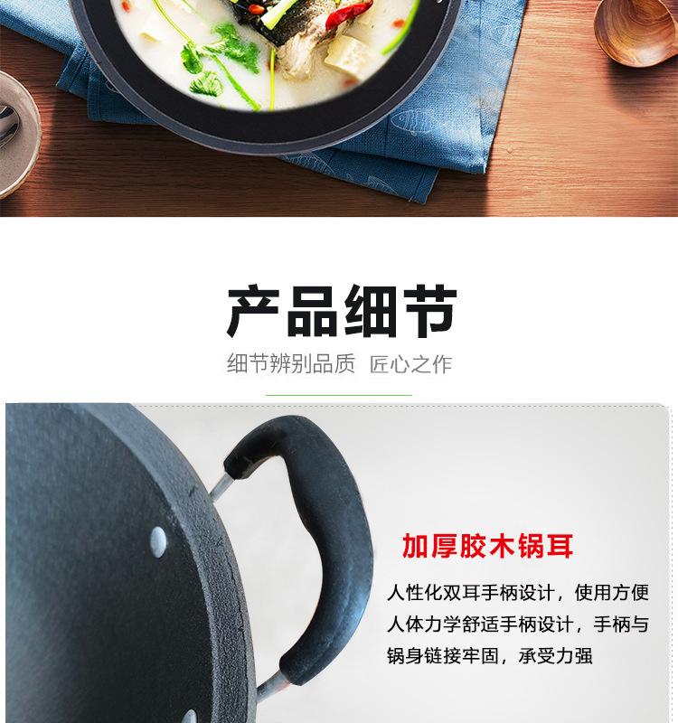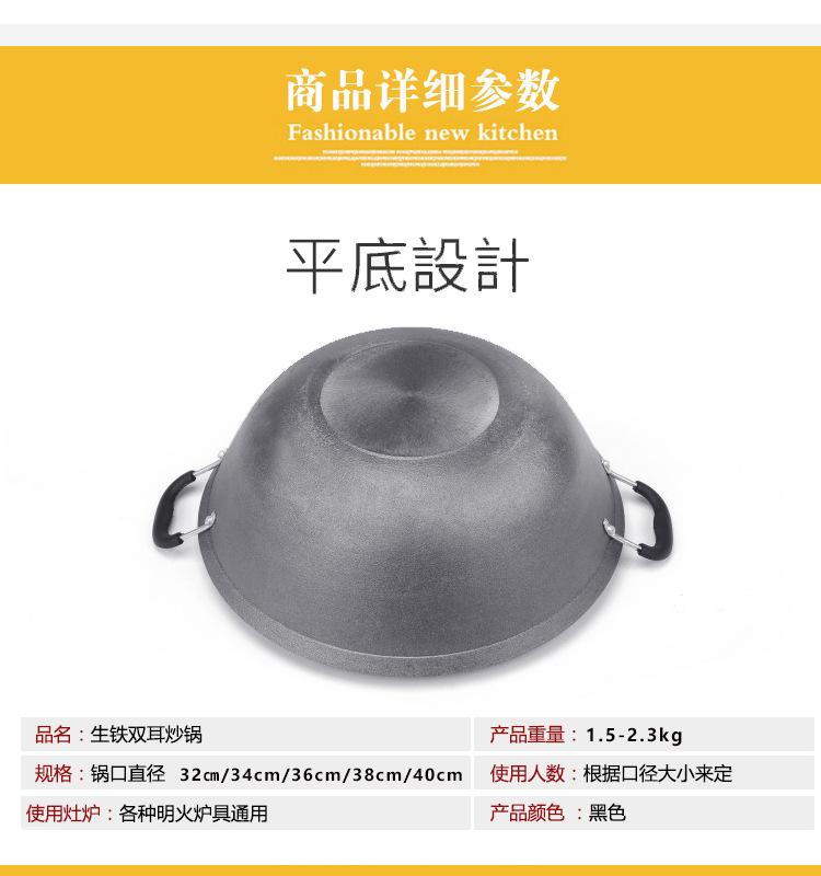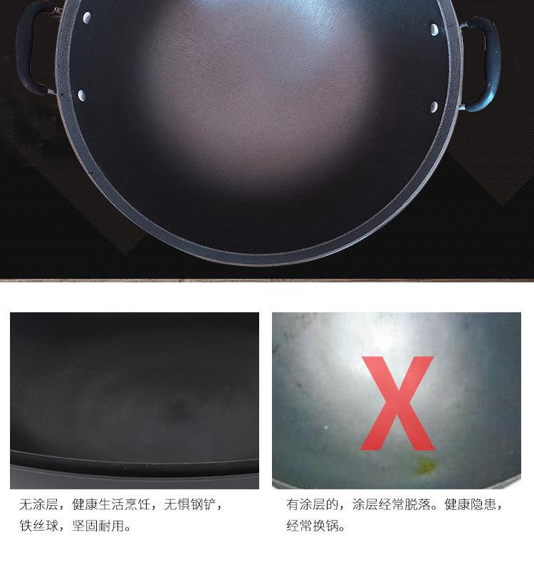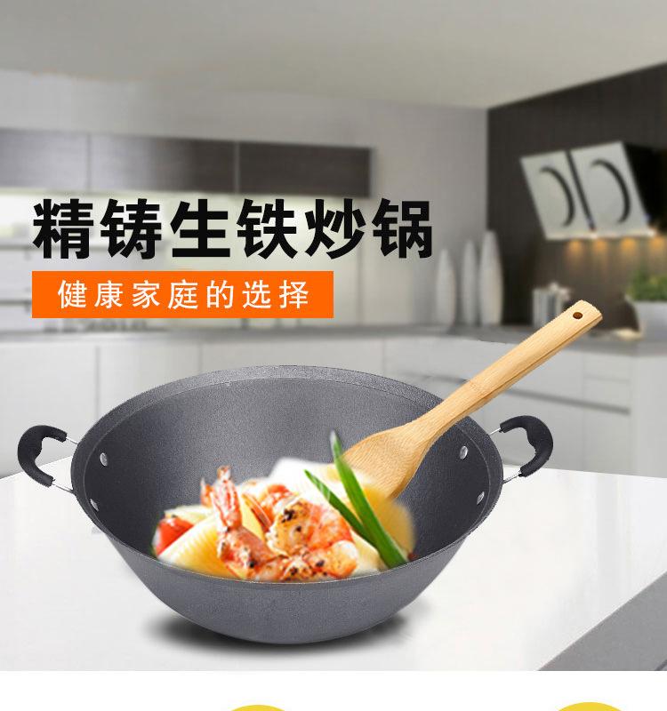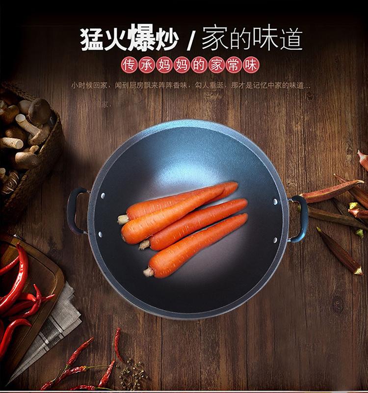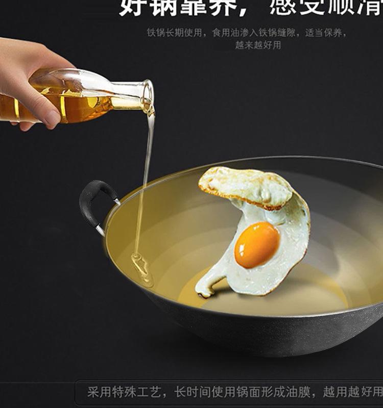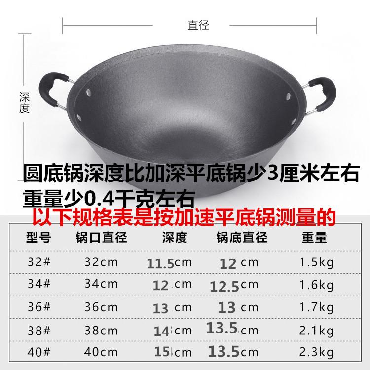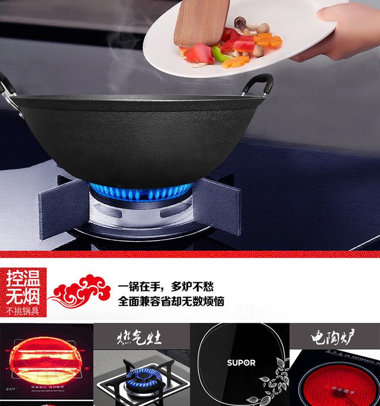 Compra Sartén de hierro fundido binaural tradicional antigua, gruesa, sin revestimiento, de fondo redondo y puntiagudo, para estufa de gas, sartén grande de hierro al por mayor en Joom.pro