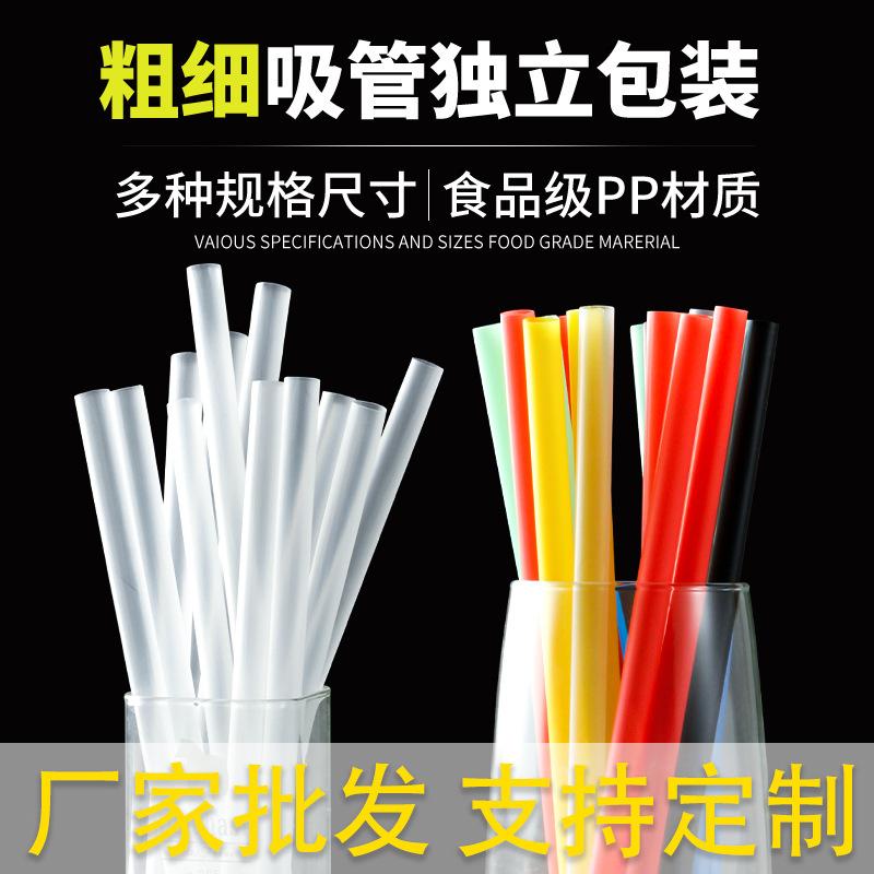 Pajita desechable de PP, embalaje separado, puntiaguda, de grado alimenticio, para leche, té, tienda, pajita gruesa, colorida, negra, transparente.