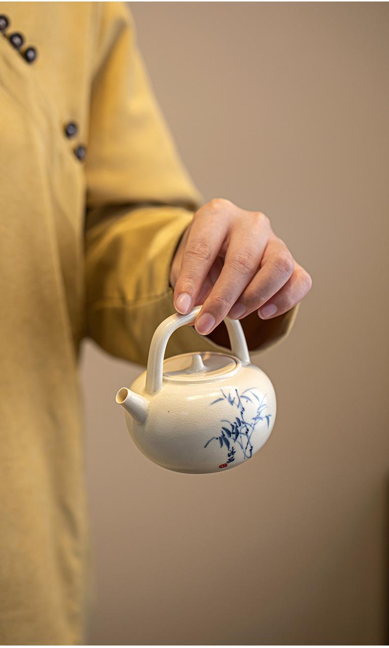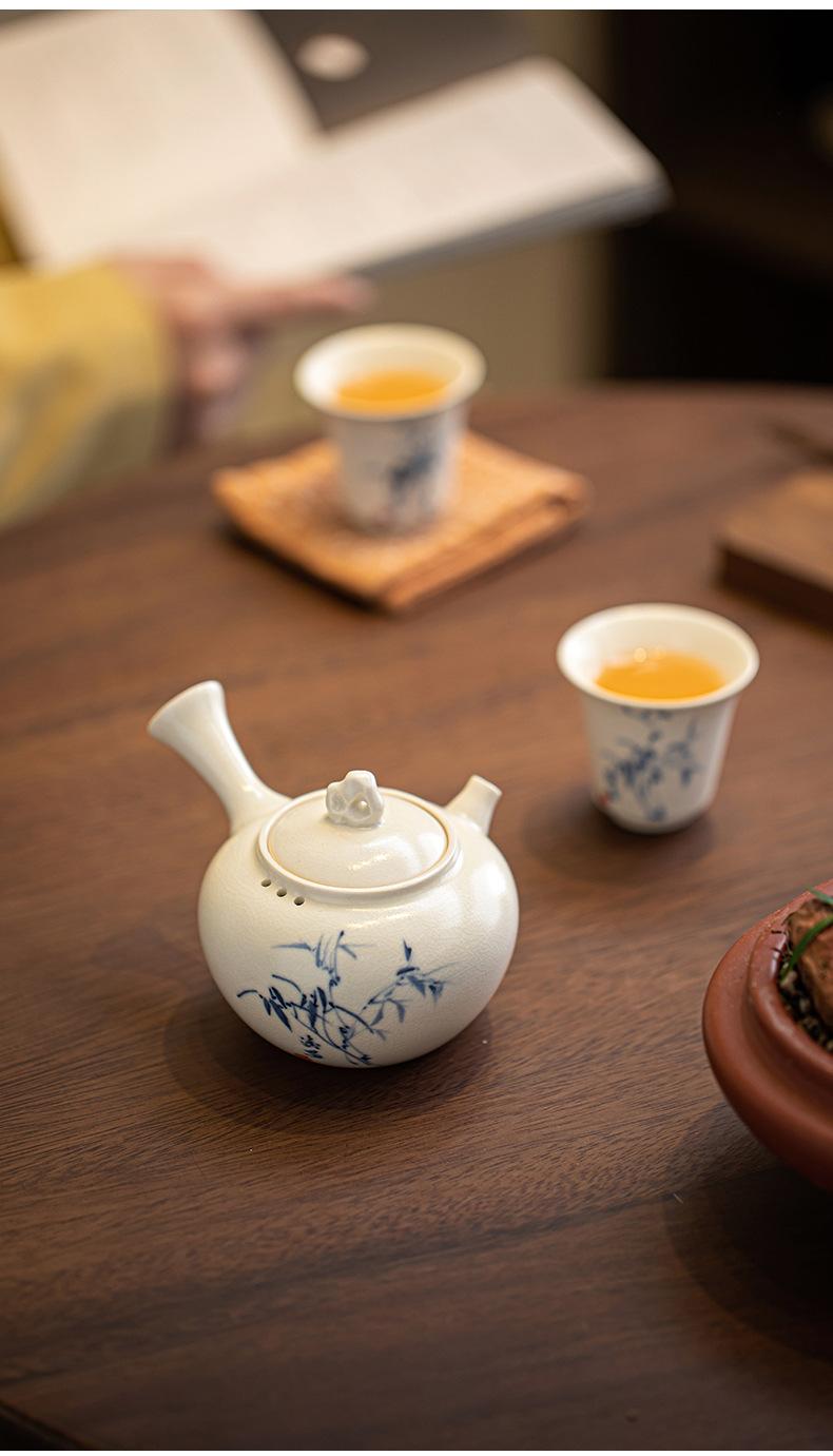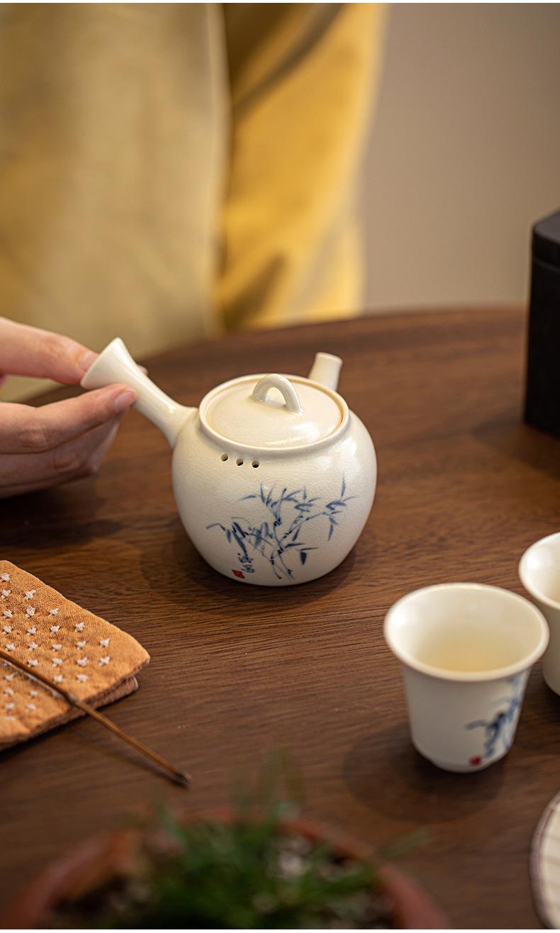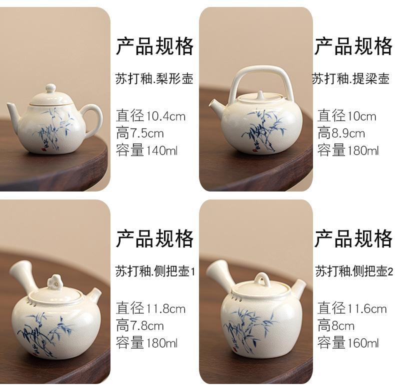 Tetera de bambú esmaltada con soda, pintada a mano, con asa lateral, para uso doméstico, de cerámica, juego de té chino de Kung Fu, tetera individual