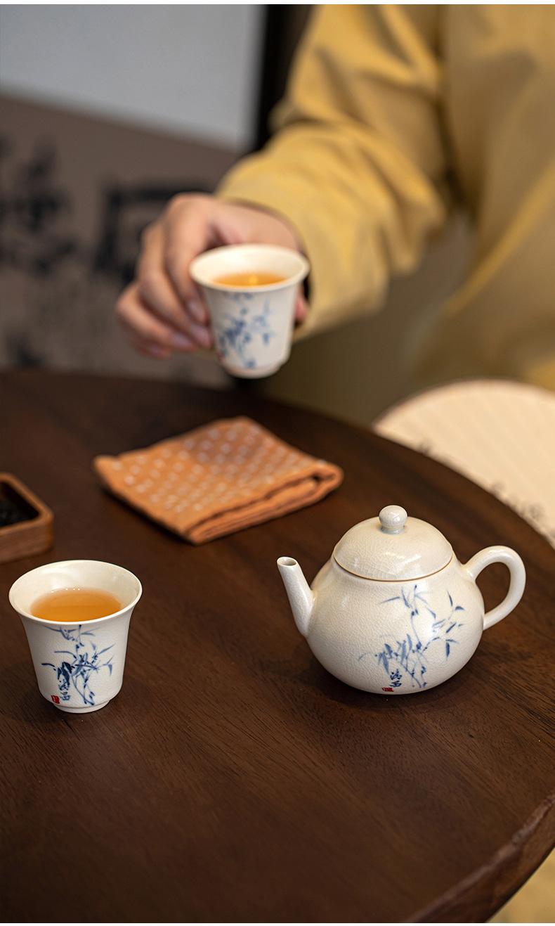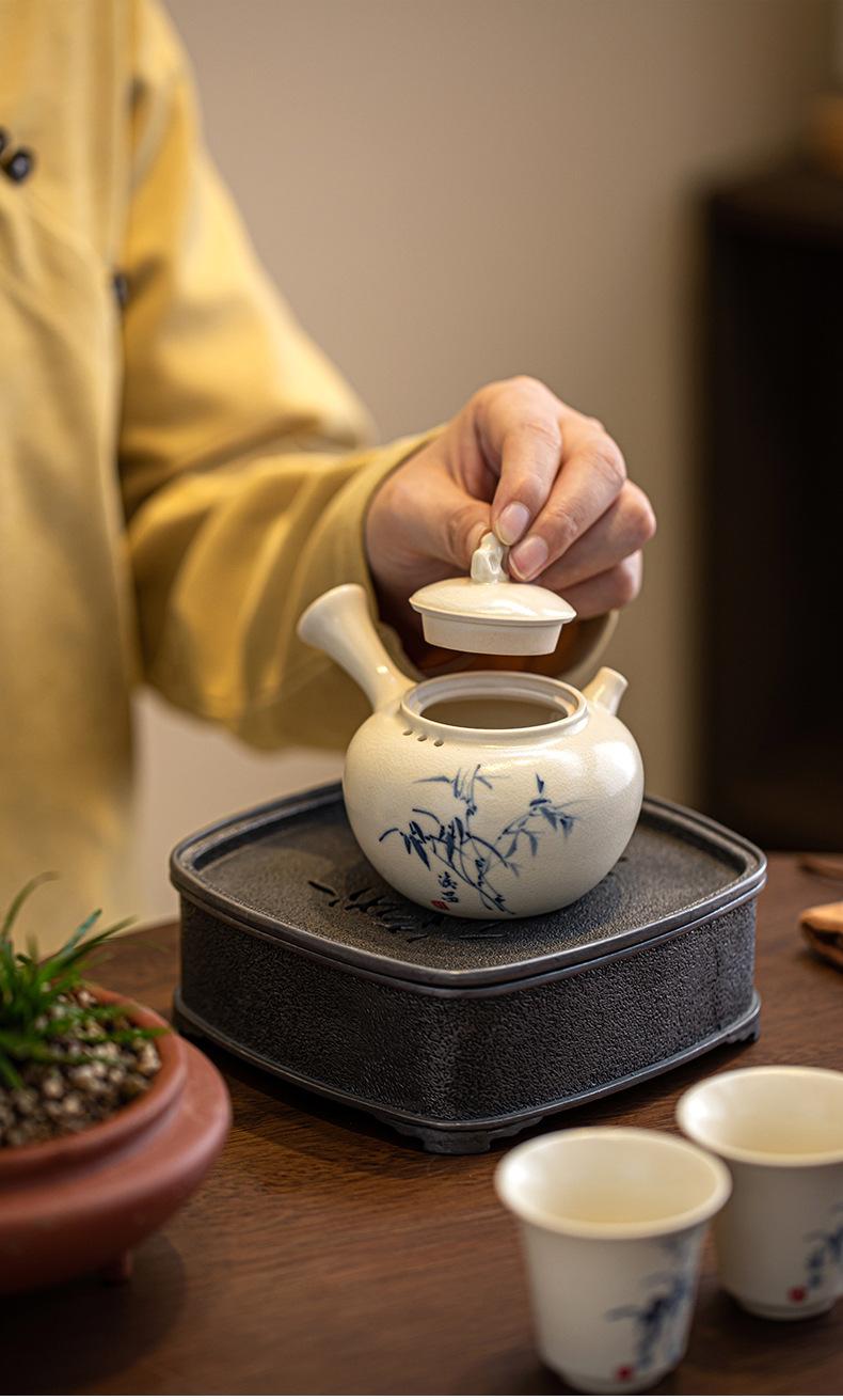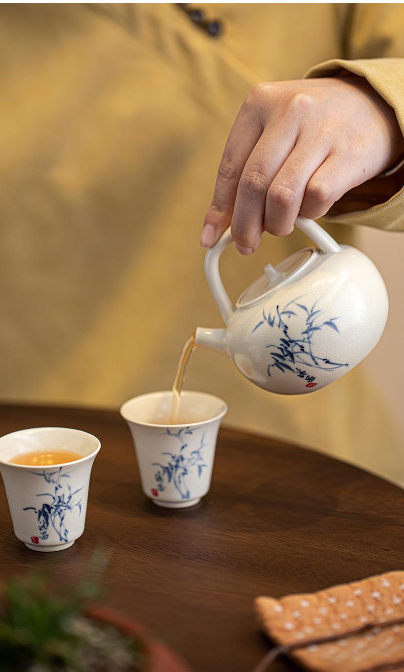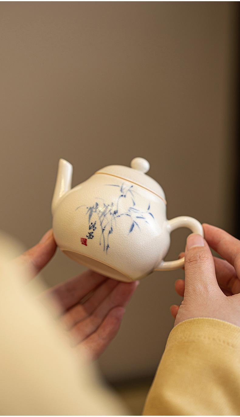 Tetera de bambú esmaltada con soda, pintada a mano, con asa lateral, para uso doméstico, de cerámica, juego de té chino de Kung Fu, tetera individual