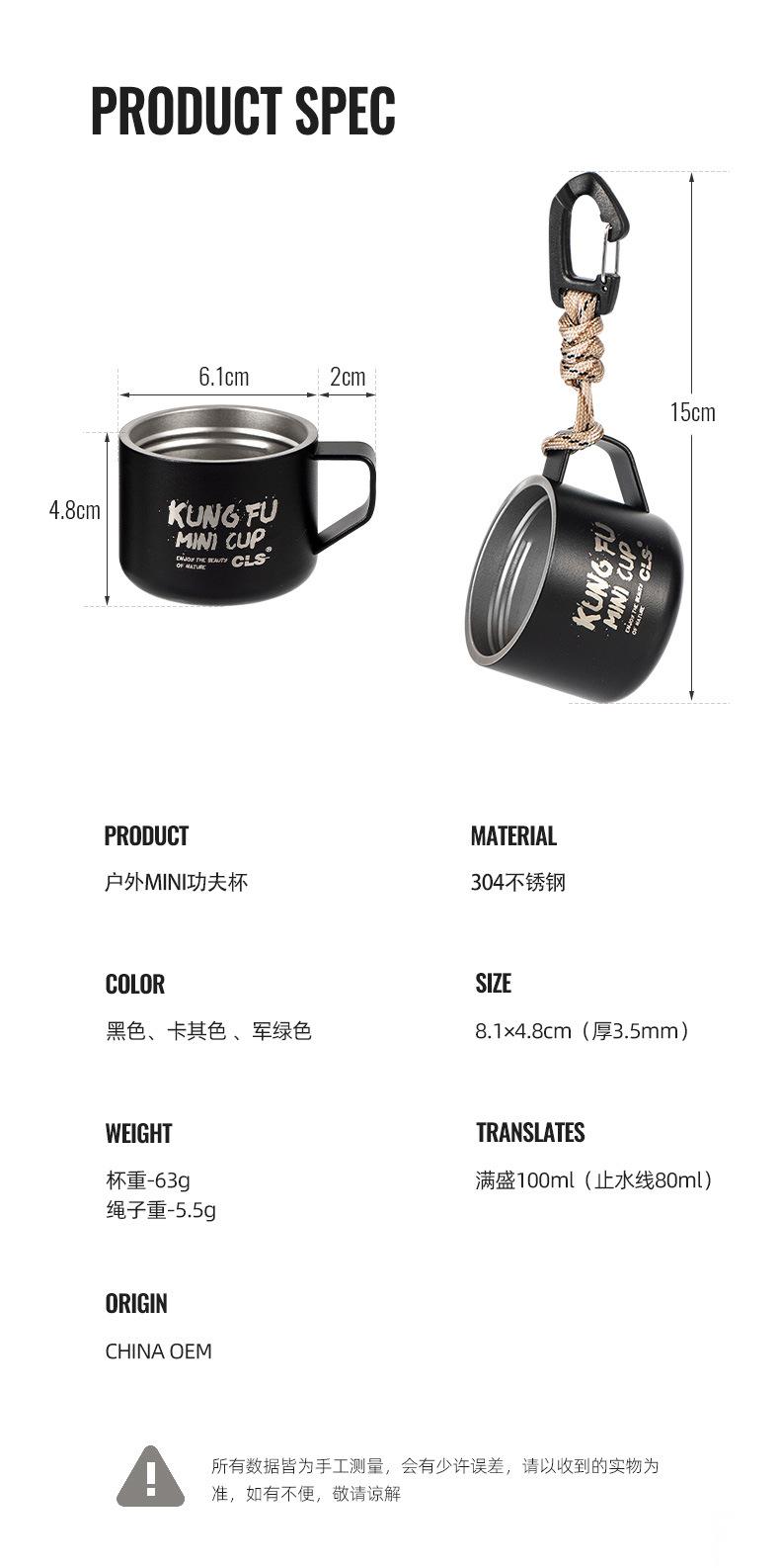 Nombre del producto: Mini taza de kung fu de acero inoxidable 304