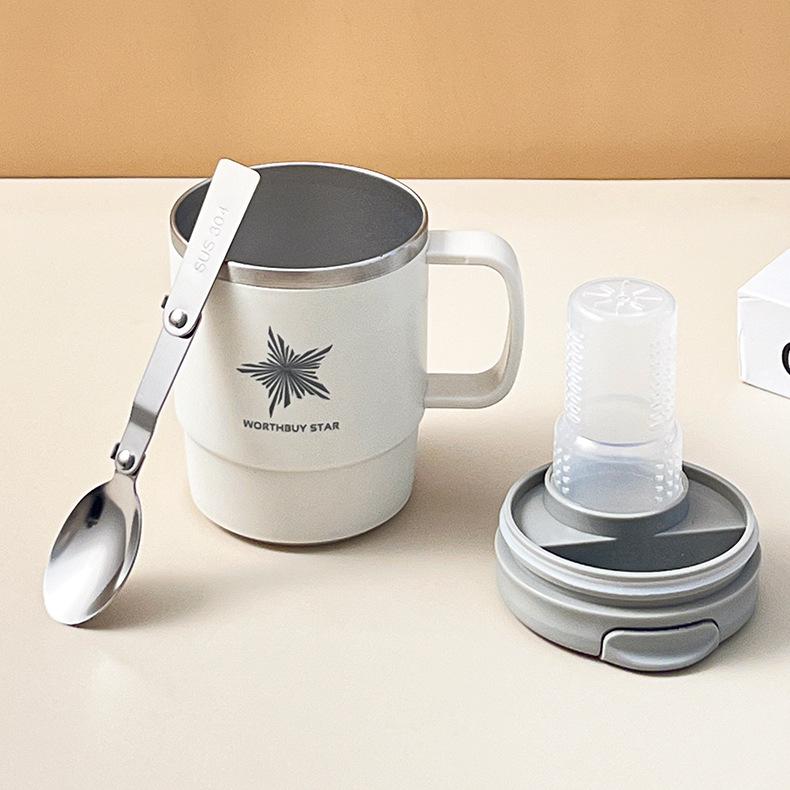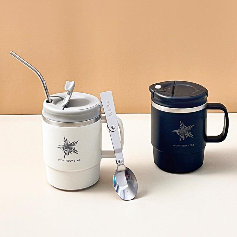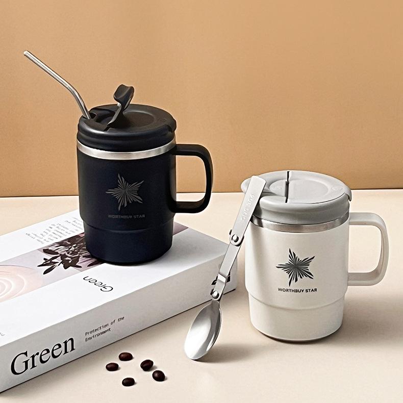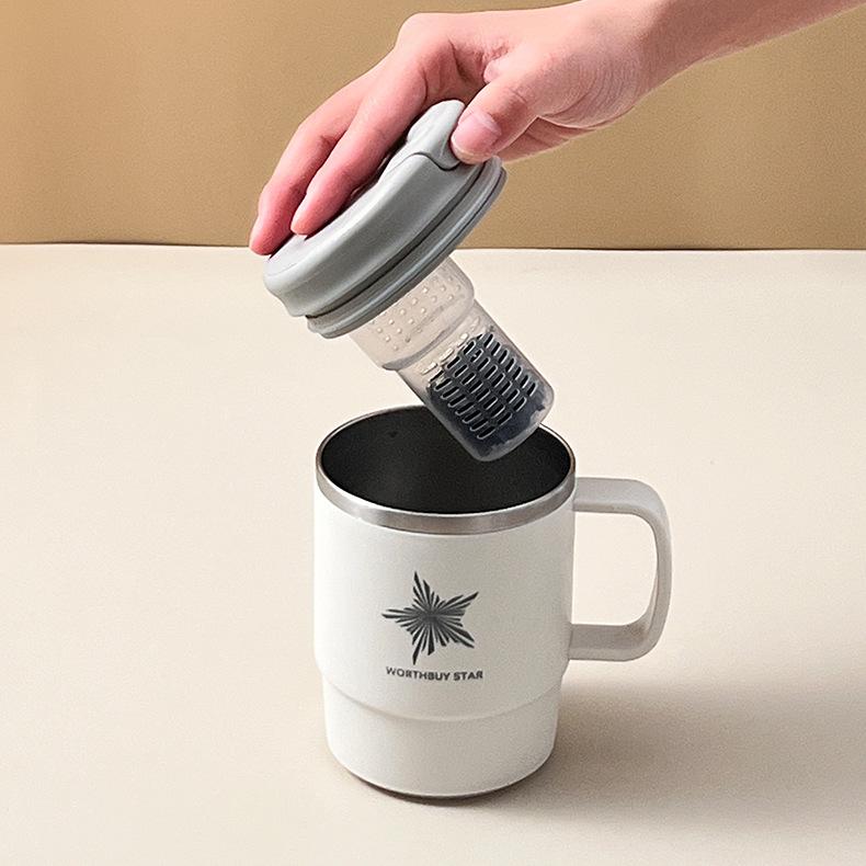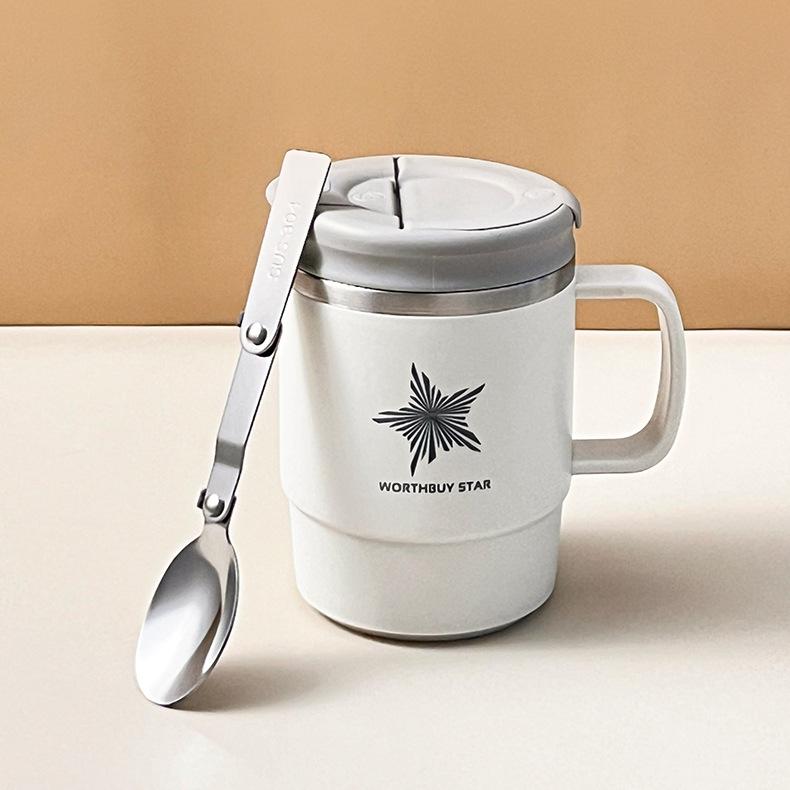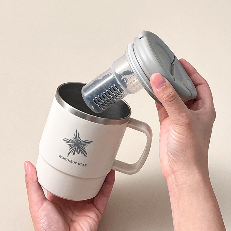 Taza de café de alto valor para el hogar con tapa y cuchara, taza de separación de té, regalo creativo, 304 tazas transfronterizas