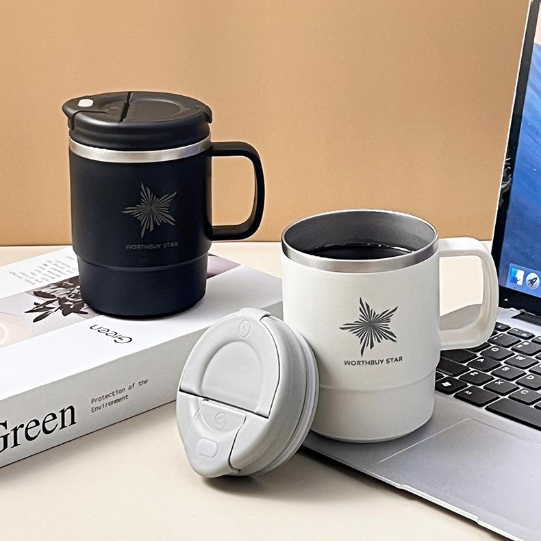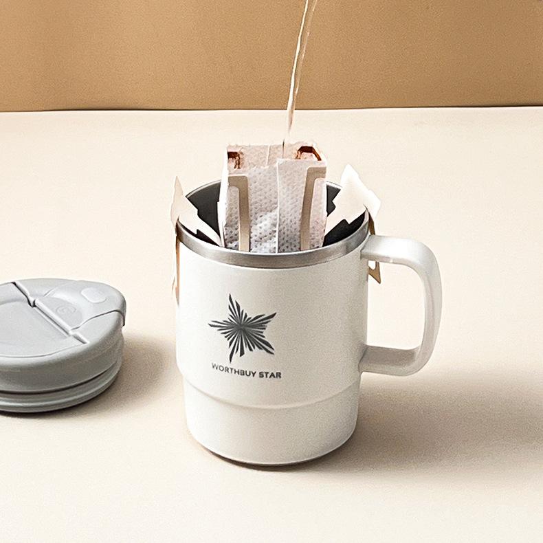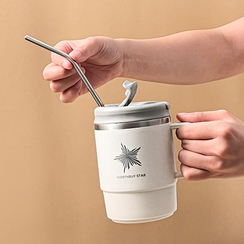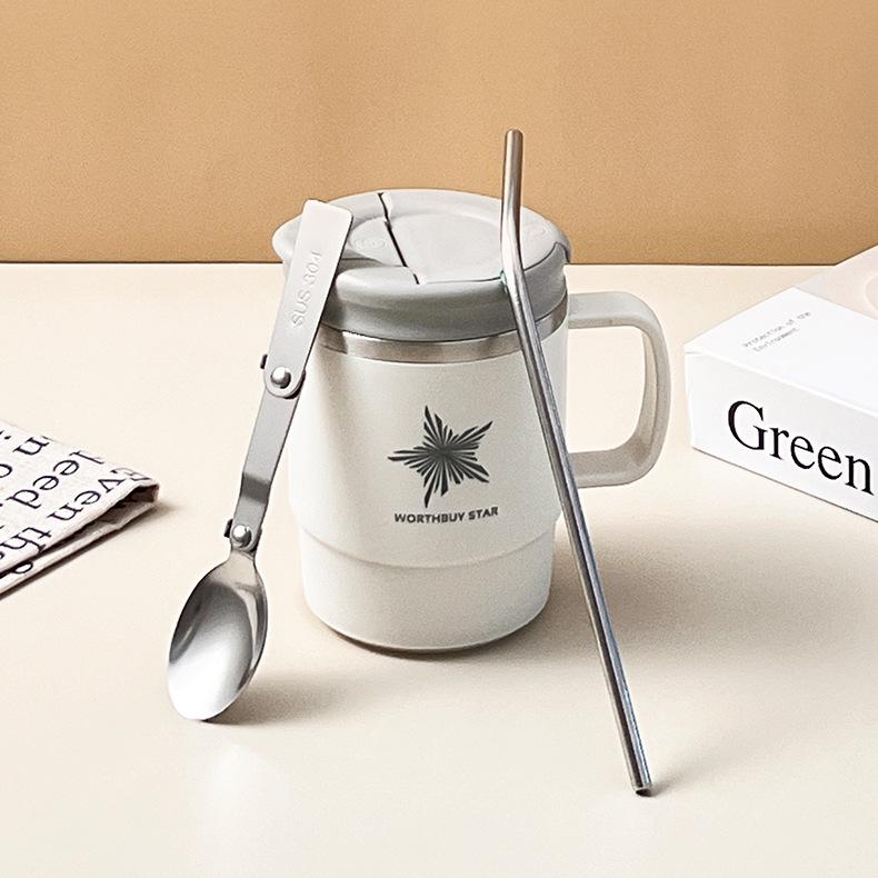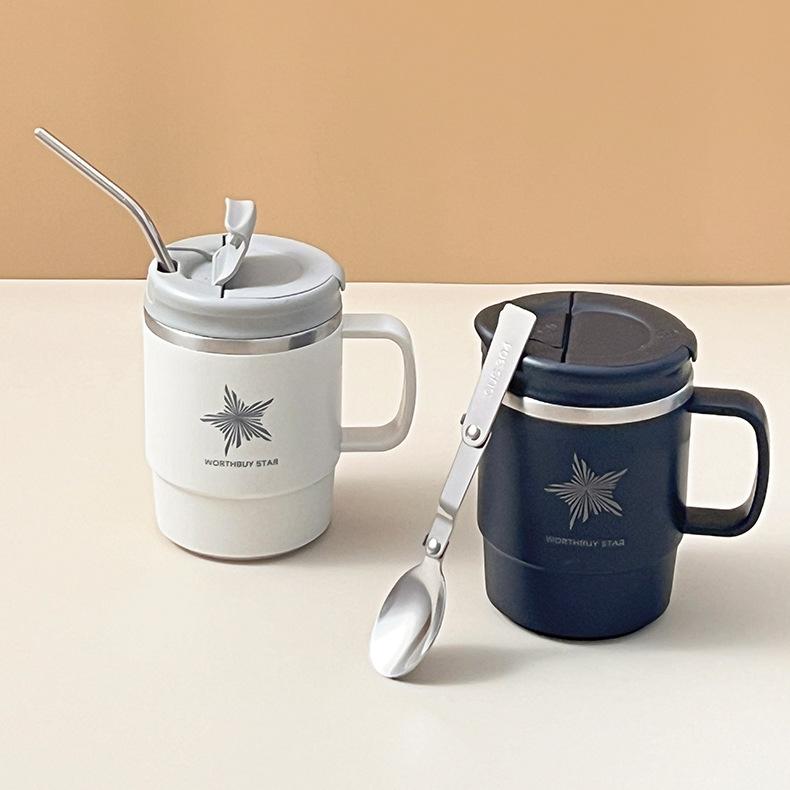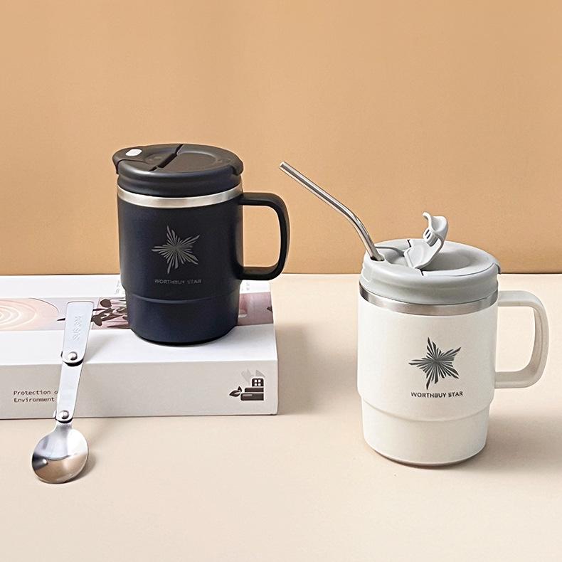 Taza de café de alto valor para el hogar con tapa y cuchara, taza de separación de té, regalo creativo, 304 tazas transfronterizas