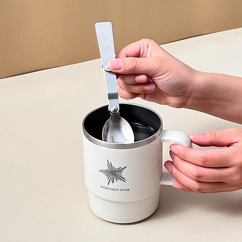 304m white cup + folding spoon, 304 black cup + folding spoon, 304m white cup + straw + folding spoon, 304 bla...