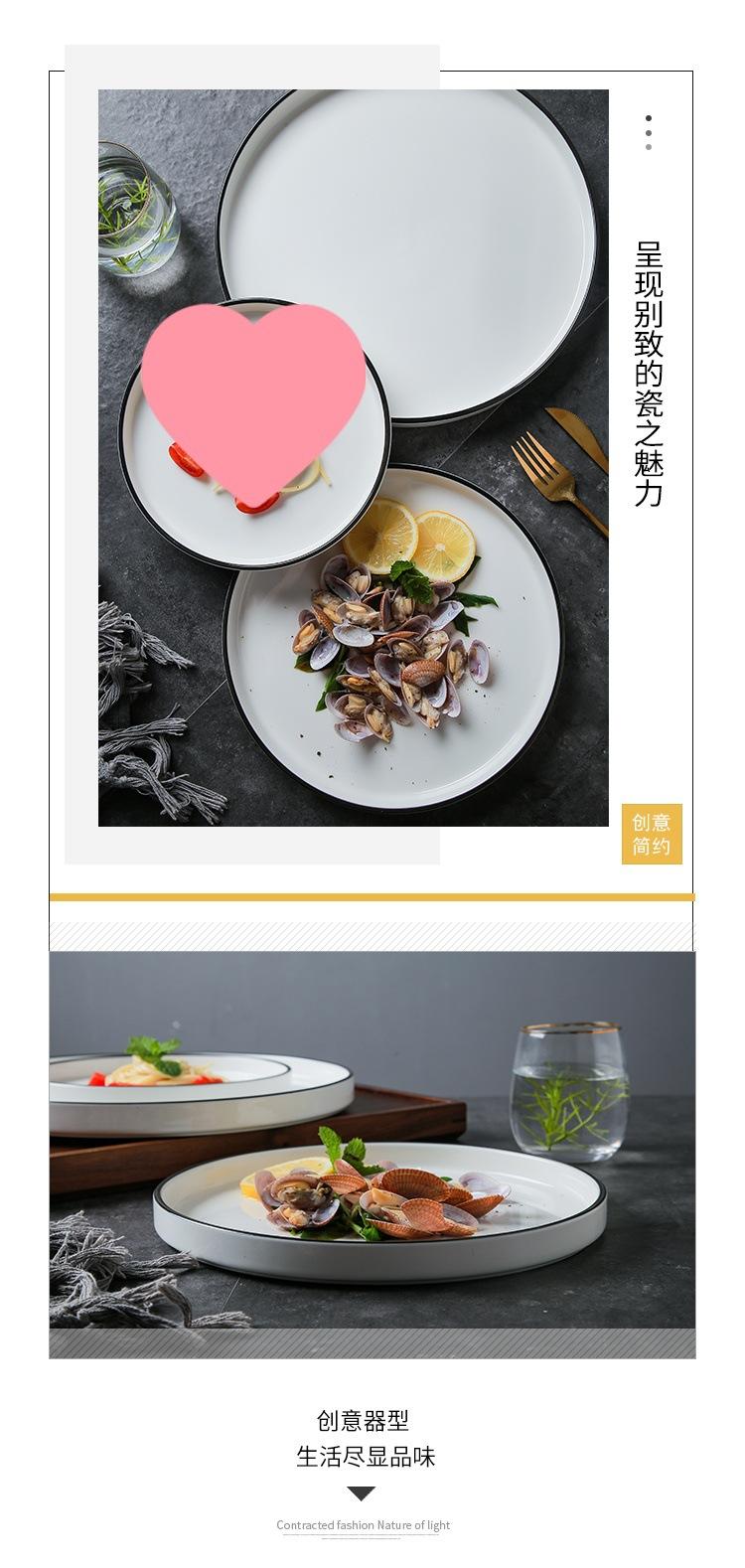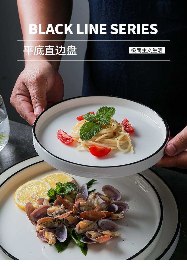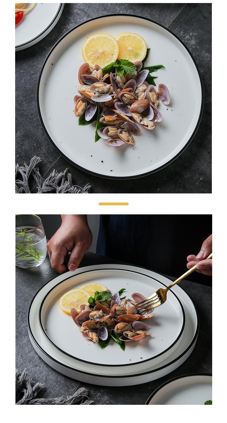 Plato de desayuno de cerámica creativa nórdica, bandeja de postre, plato de comida occidental para carne, plato recto de fondo plano redondo, vajilla