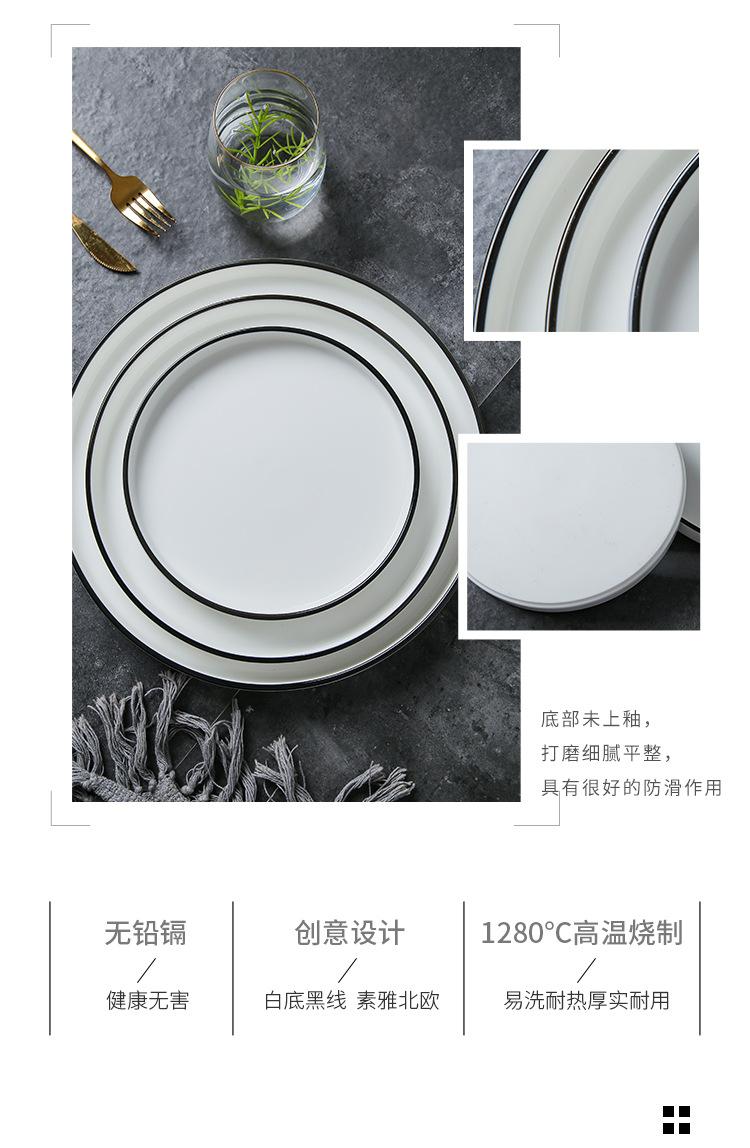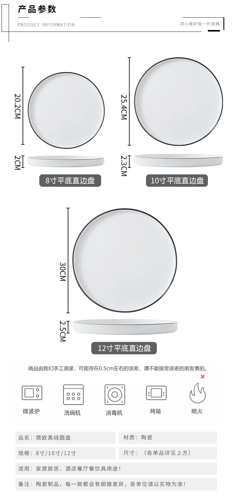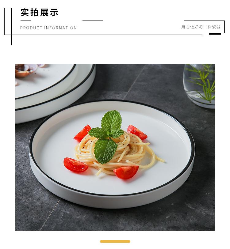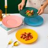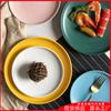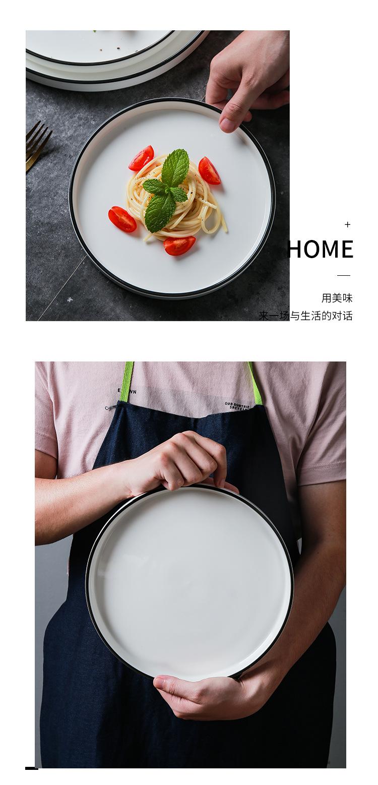 Plato de desayuno de cerámica creativa nórdica, bandeja de postre, plato de comida occidental para carne, plato recto de fondo plano redondo, vajilla