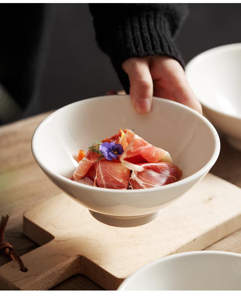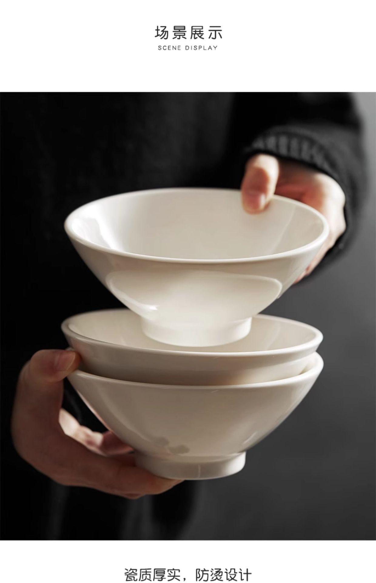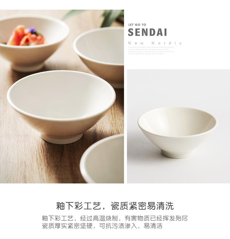 Cuenco de arroz blanco sencillo de estilo nórdico para el hogar, de gran valor y atractivo, con un sombrero antiescaldamiento, cuenco pequeño para sopa de cerámica J