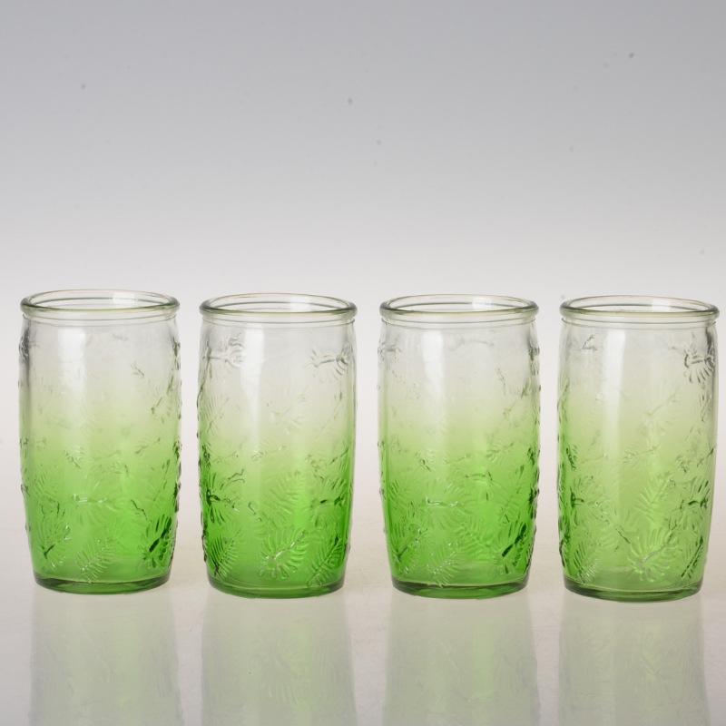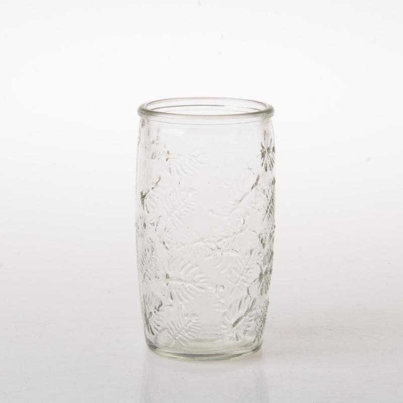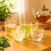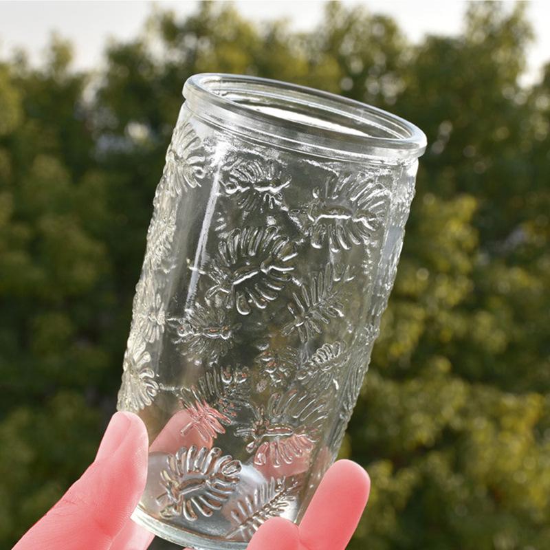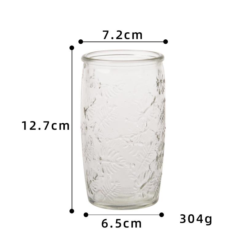 Taza de vidrio con forma de hoja, taza de vidrio con relieve, taza transparente para el hogar, taza de bebida vintage de 380 ml, taza de jugo