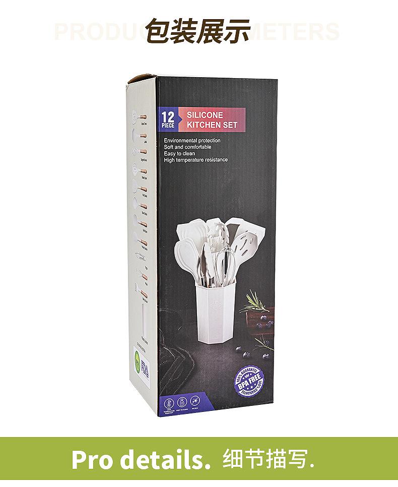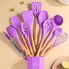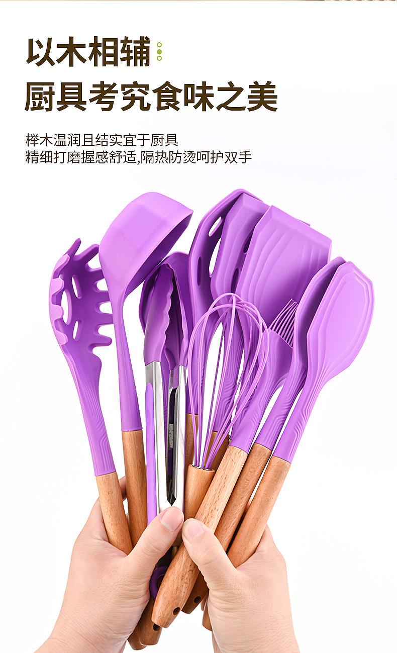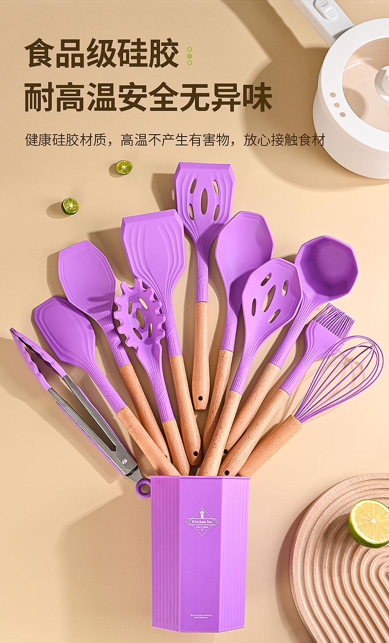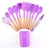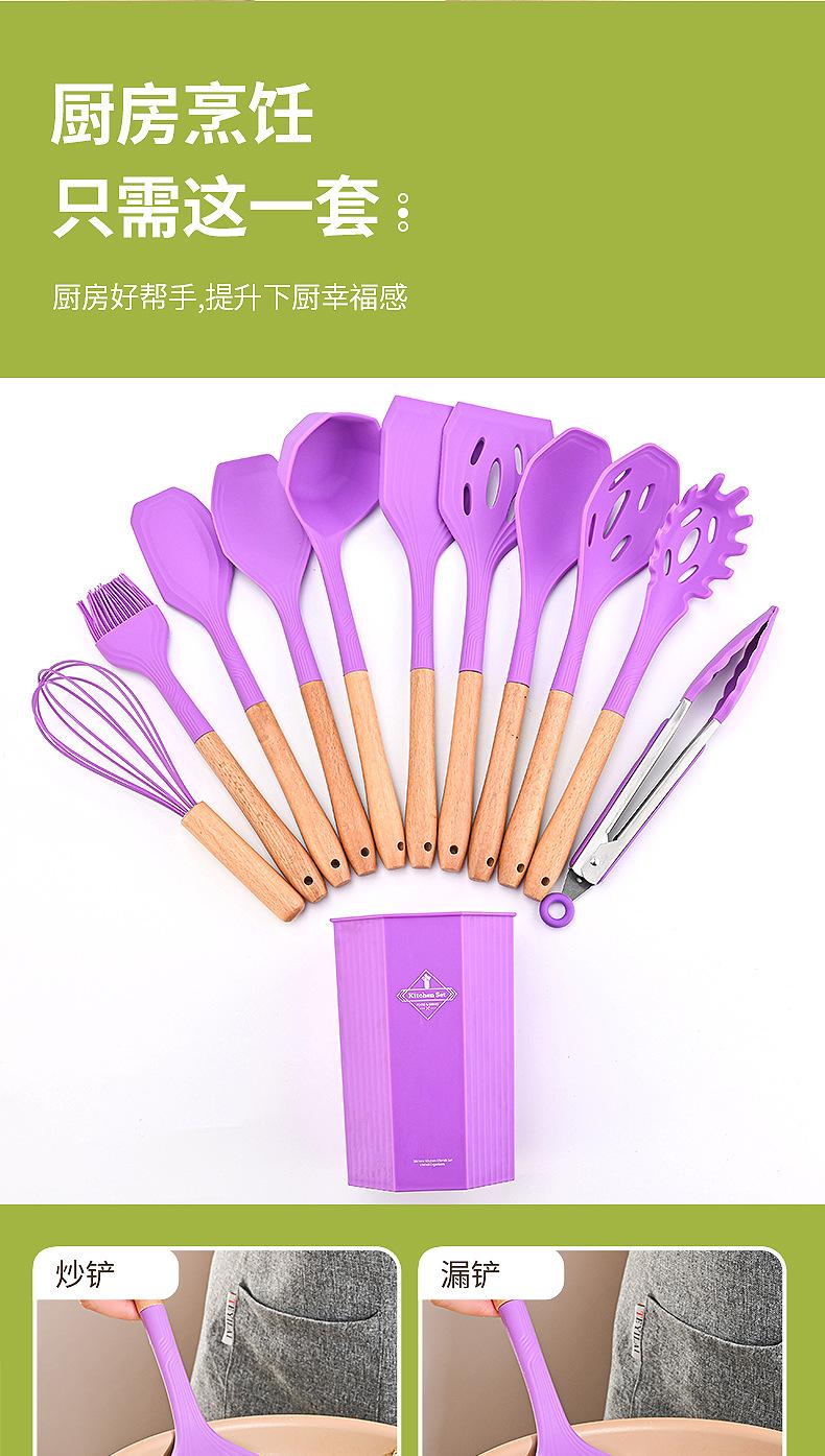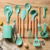 Juego de Utensilios de Cocina de Silicona Transfronterizo de 12 piezas Cocina Antiadherente Mango de Madera Silicona Espátula Cuchara Juego de Cocina Utensilios de Cocina para el Hogar