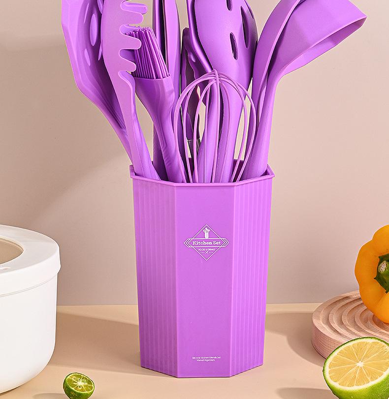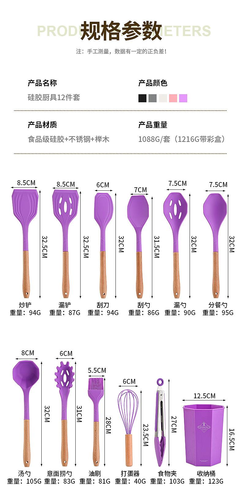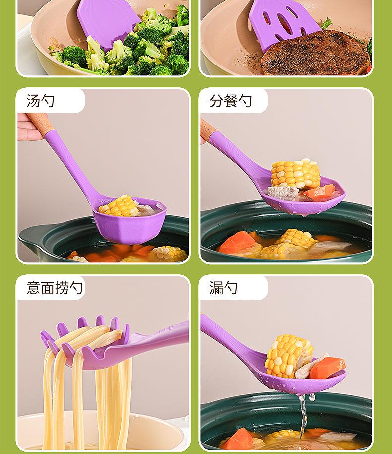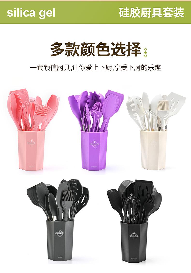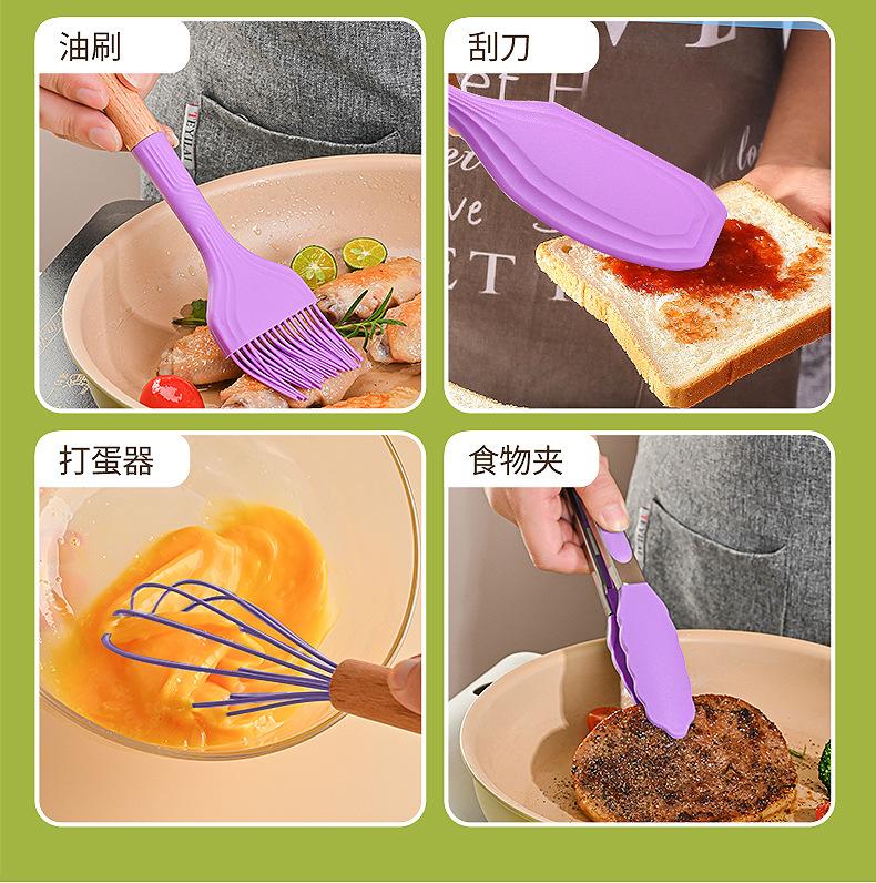 Juego de Utensilios de Cocina de Silicona Transfronterizo de 12 piezas Cocina Antiadherente Mango de Madera Silicona Espátula Cuchara Juego de Cocina Utensilios de Cocina para el Hogar