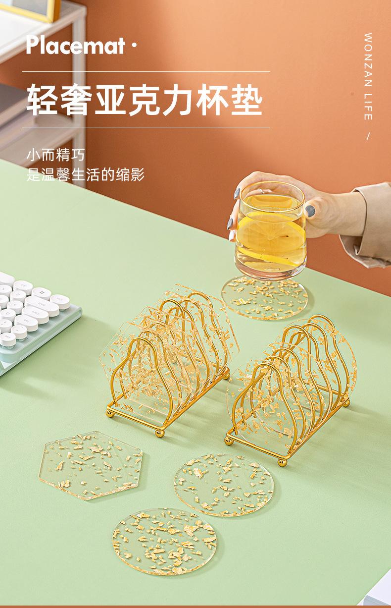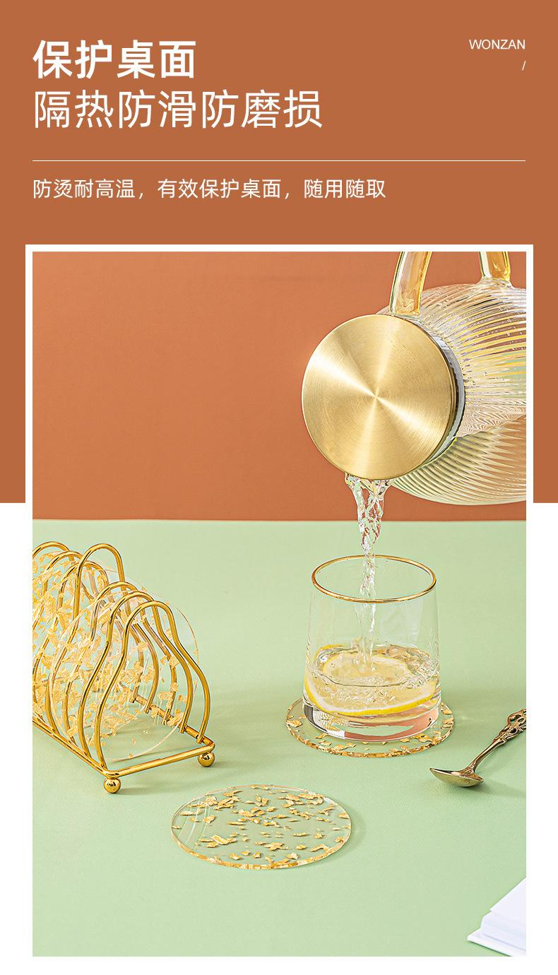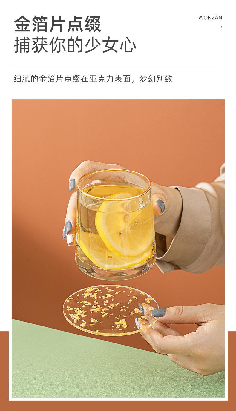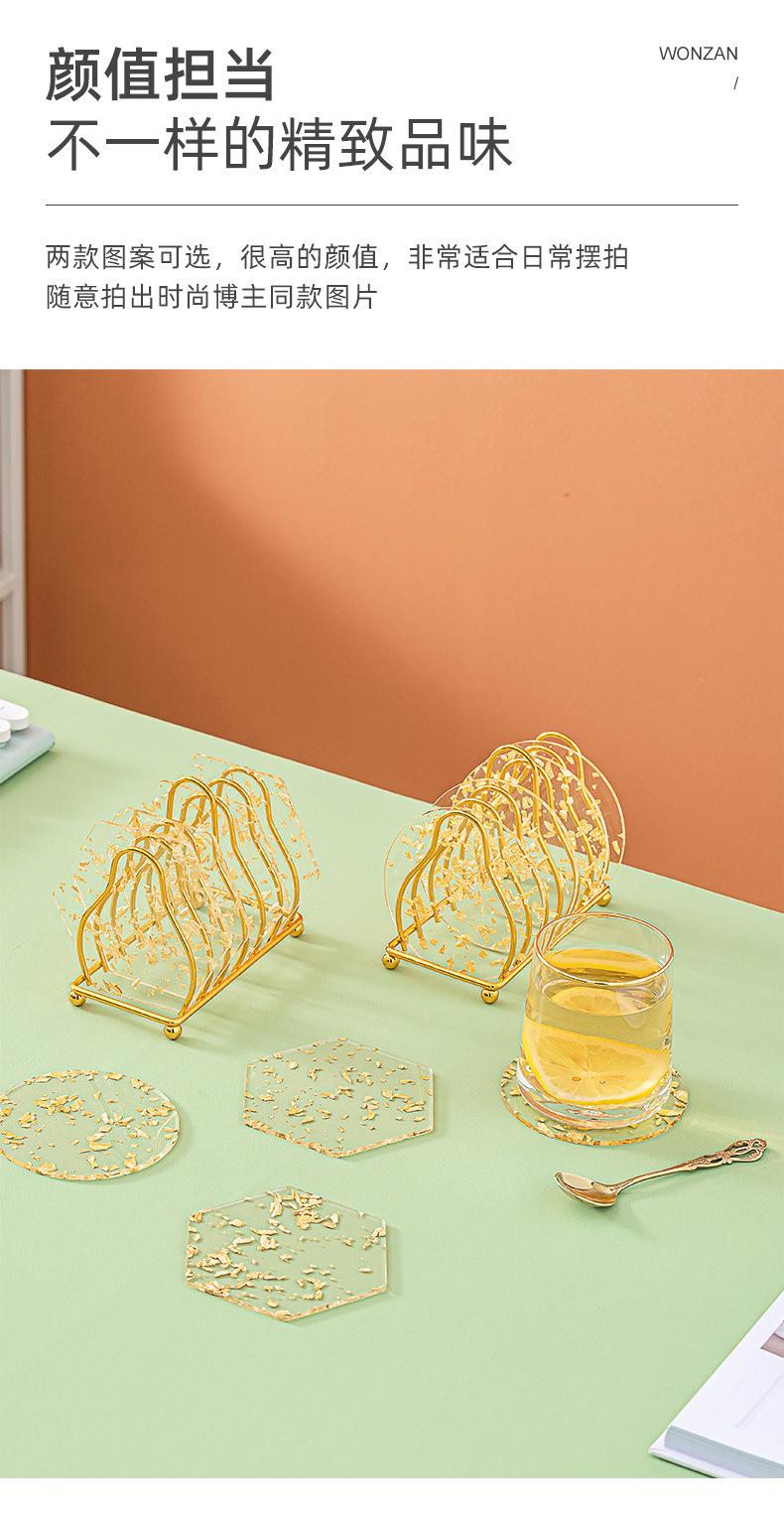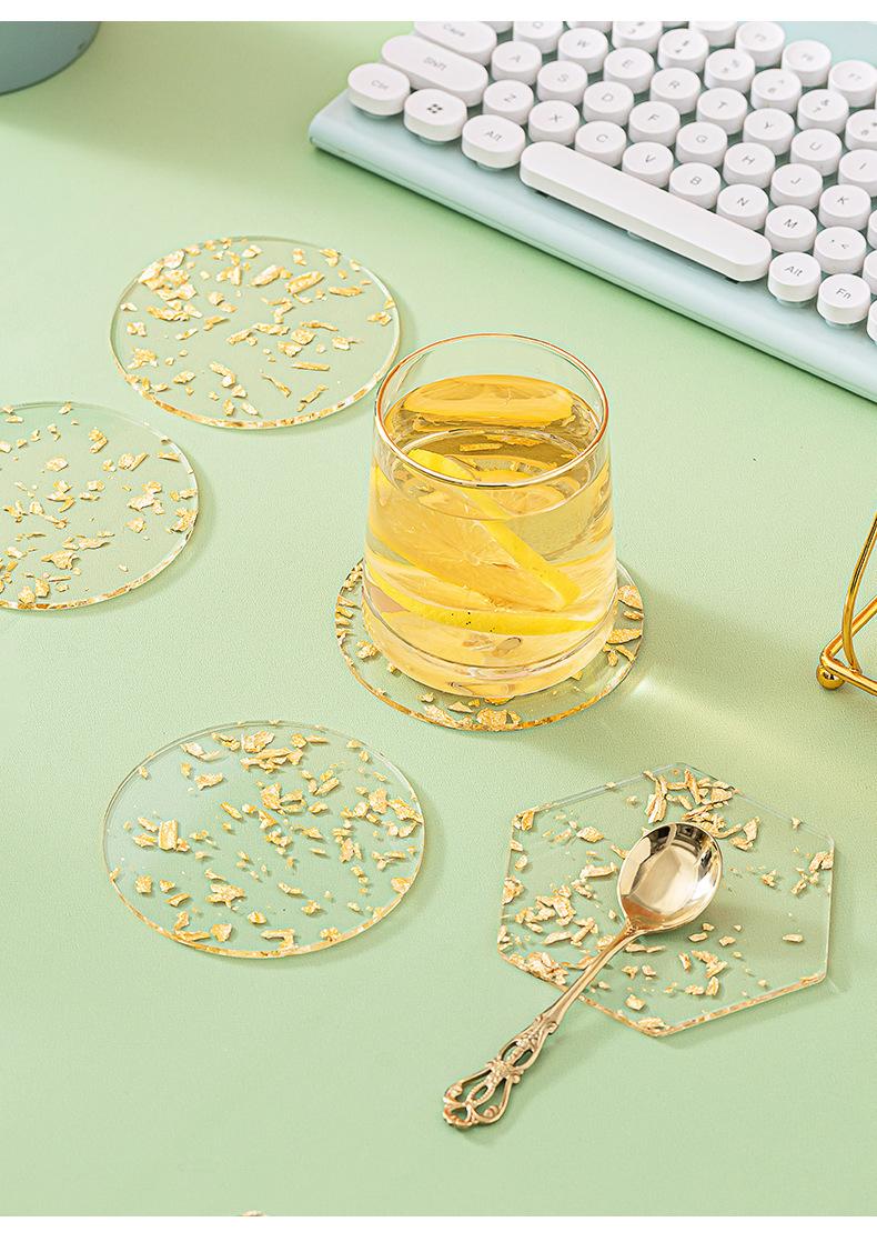 Posavasos acrílico con aislamiento térmico, lámina dorada, impermeable, para taza de té, de resina, estilo nórdico, creativo y lujoso.