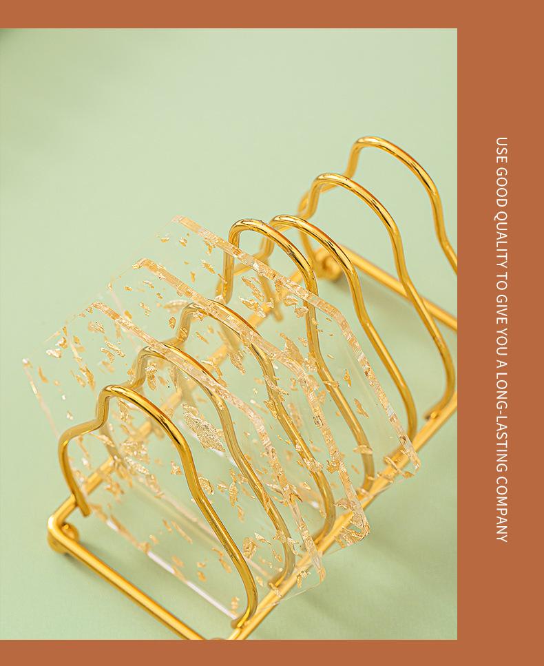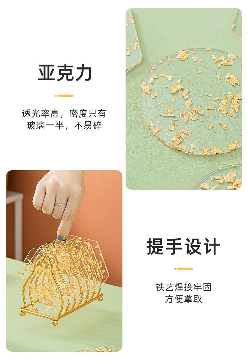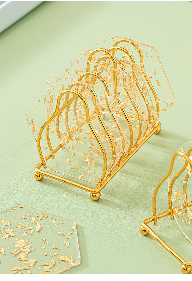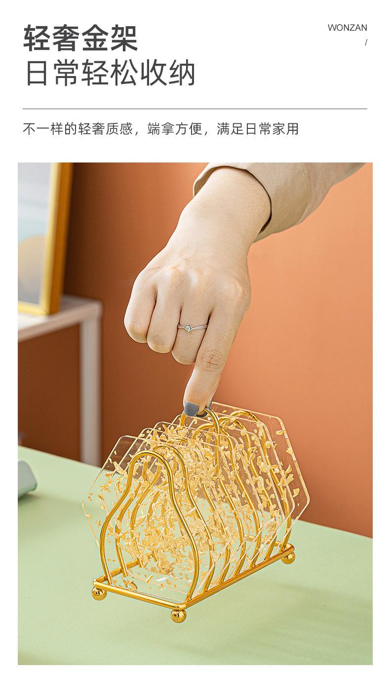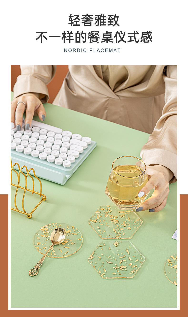 Posavasos acrílico con aislamiento térmico, lámina dorada, impermeable, para taza de té, de resina, estilo nórdico, creativo y lujoso.