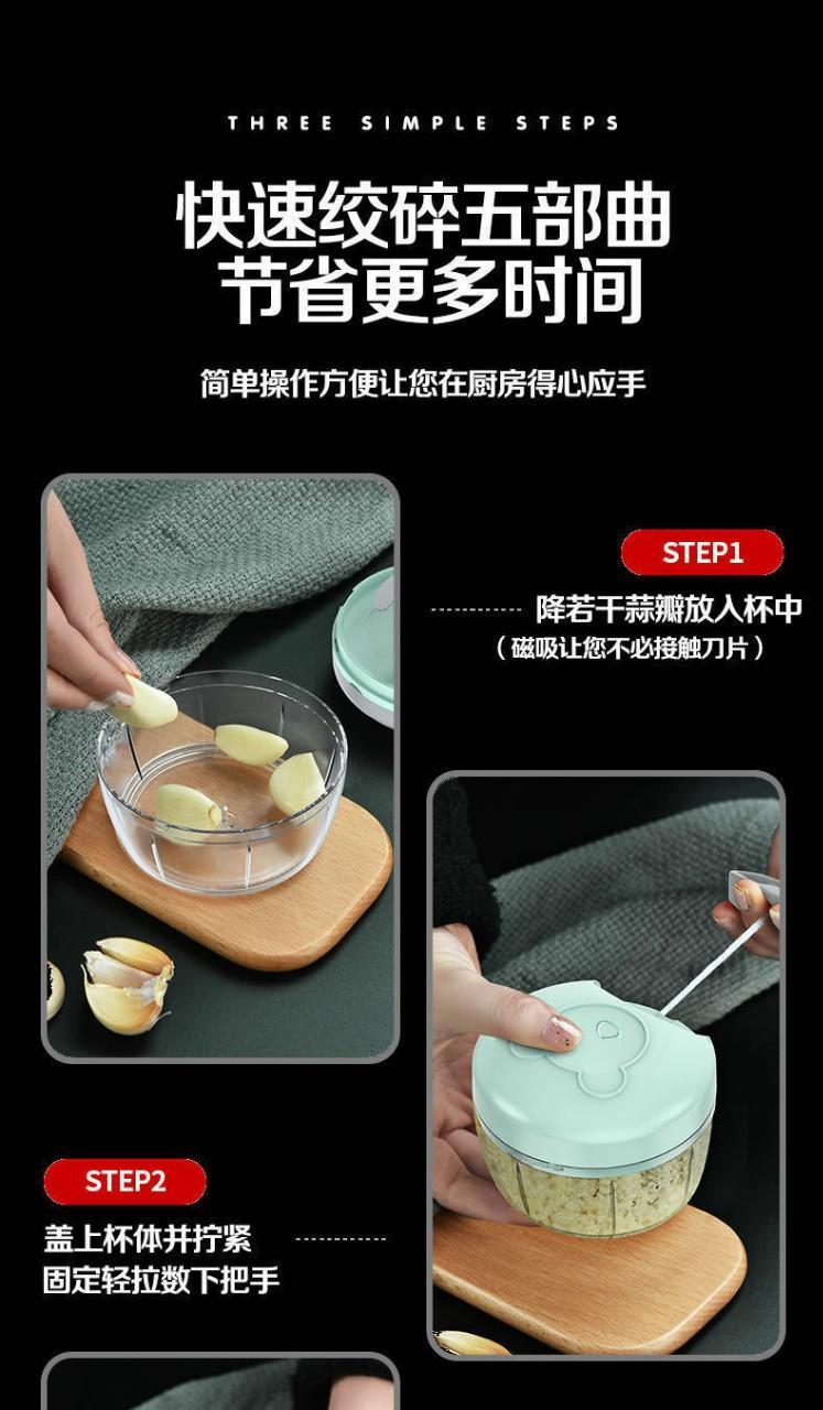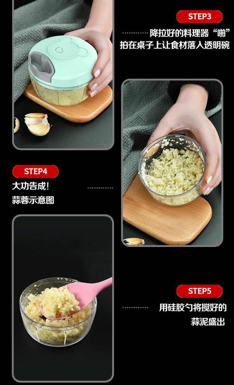 Cortador de ajo doméstico con estampado de gato, ajo machacado, picadora de carne manual, picadora de carne para relleno de albóndigas de cocina, cortador de ajo