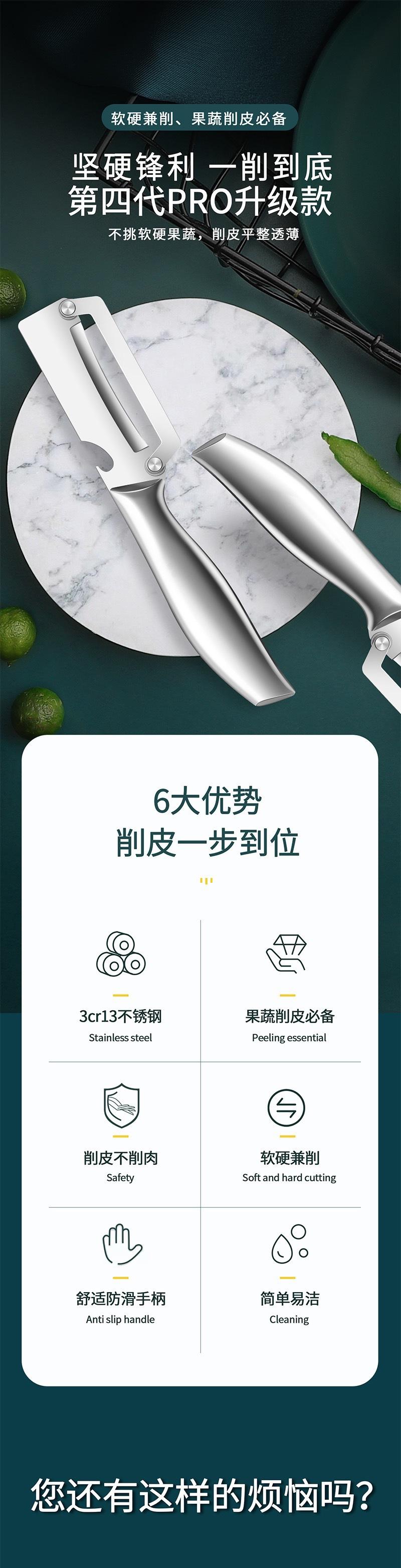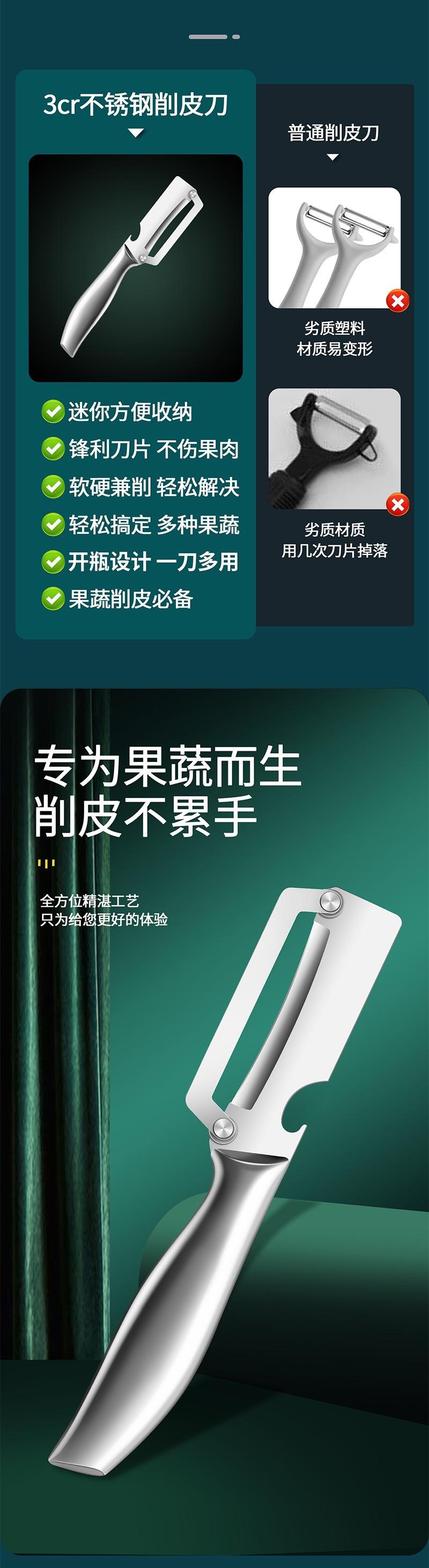 Pelador de acero inoxidable multifuncional para el hogar, raspador de frutas y verduras, melón, patatas, rallador de doble cara.