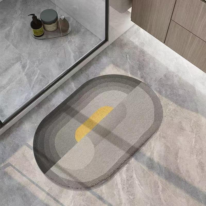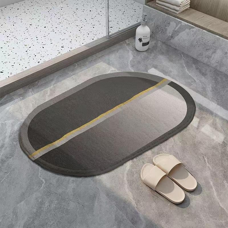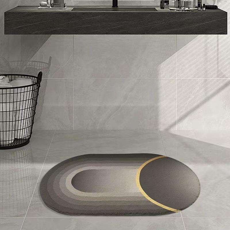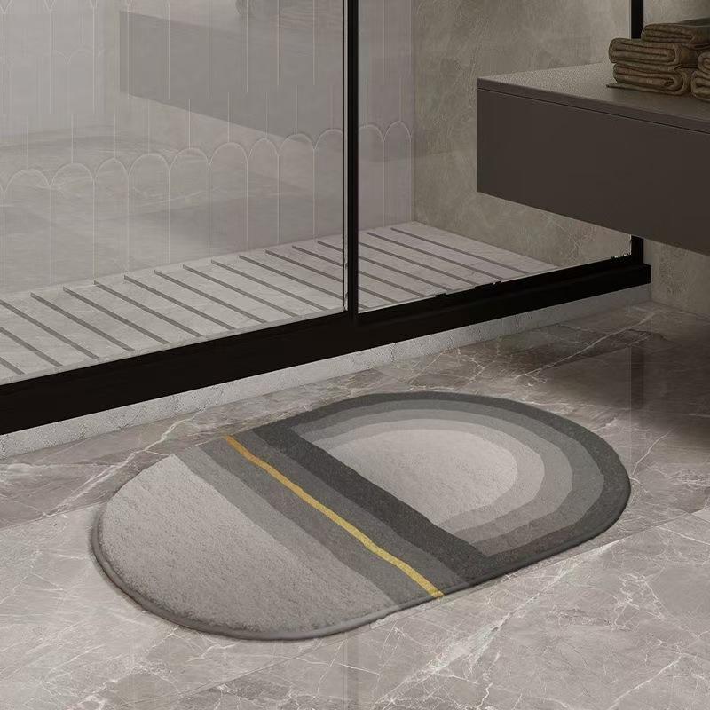 Alfombra Ovalada de Baño de Alto Grado Sensación Línea Gris Puerta de Inodoro Alfombra de Piso Simple Antideslizante Hogar Pie Entrada Alfombra