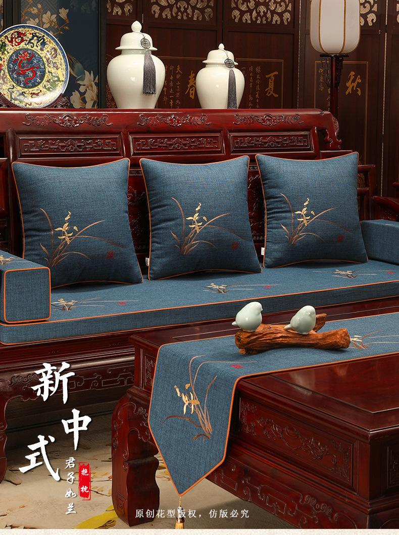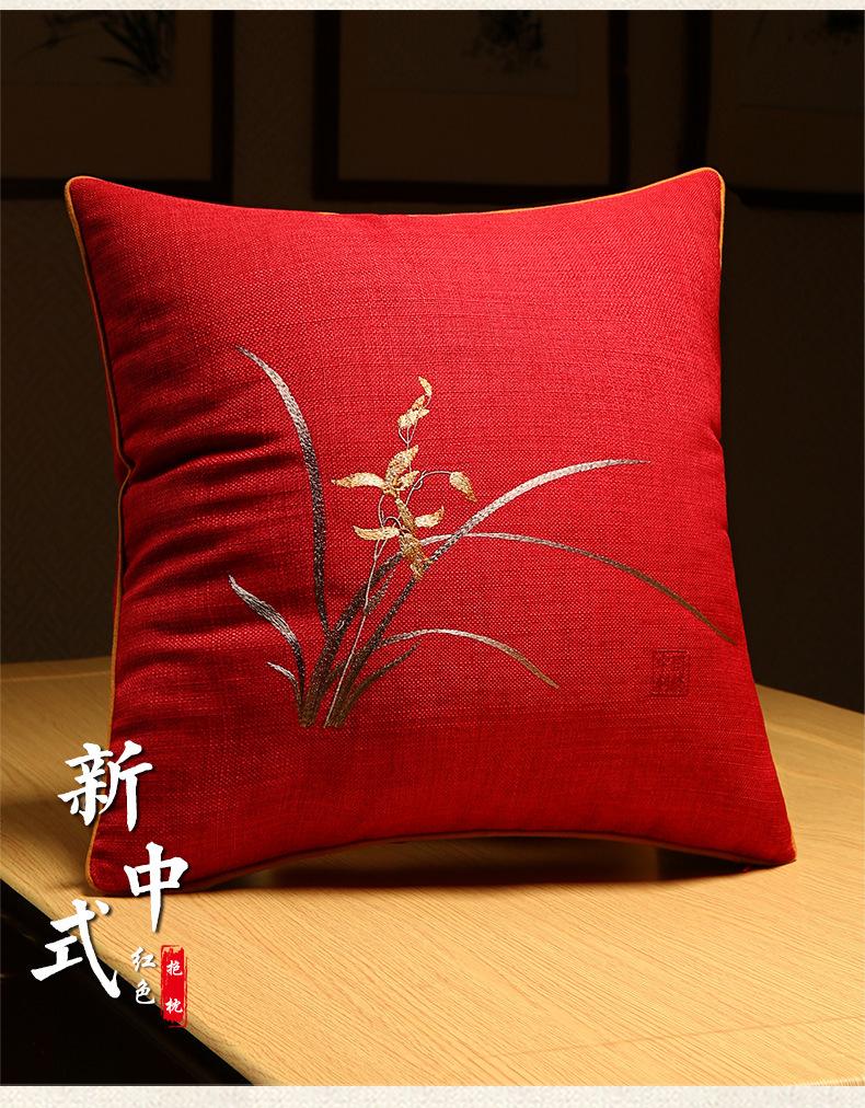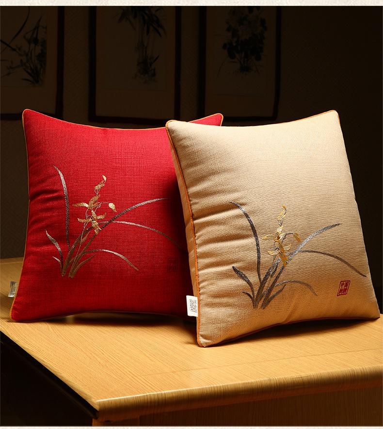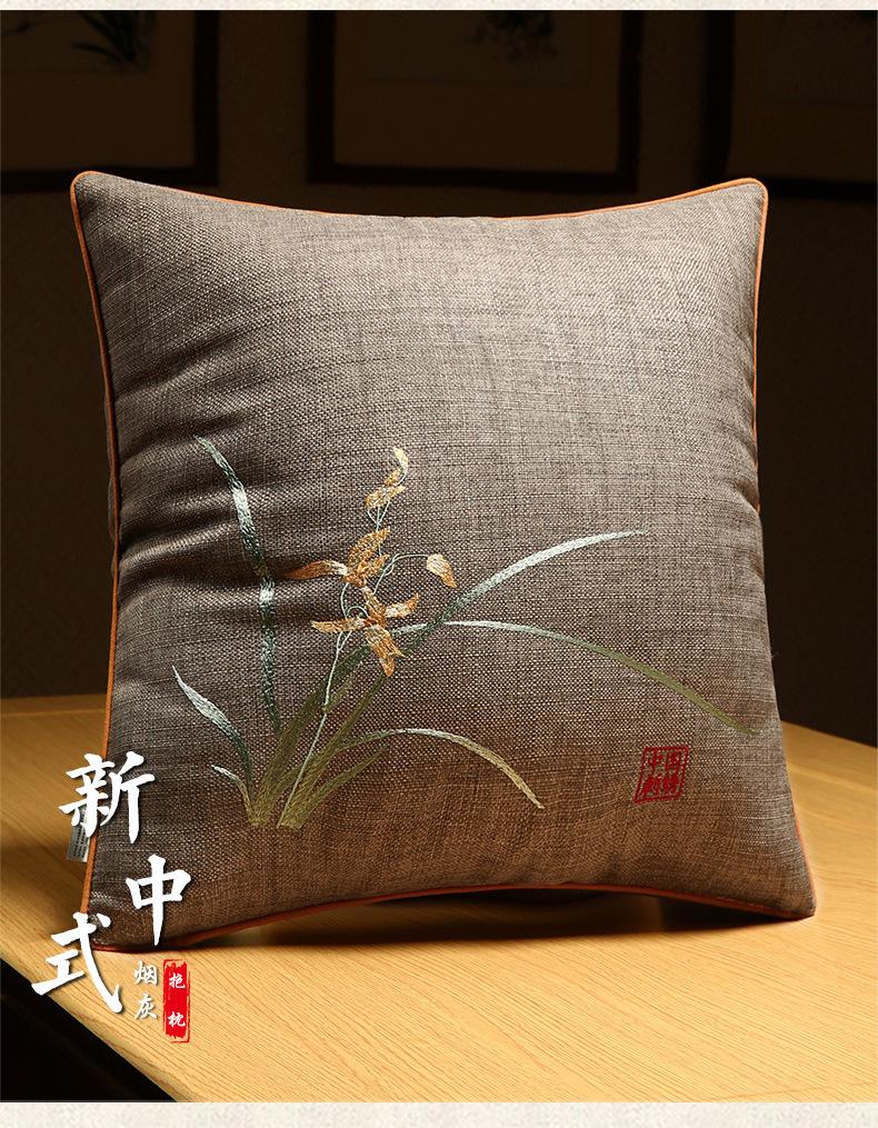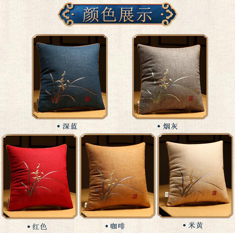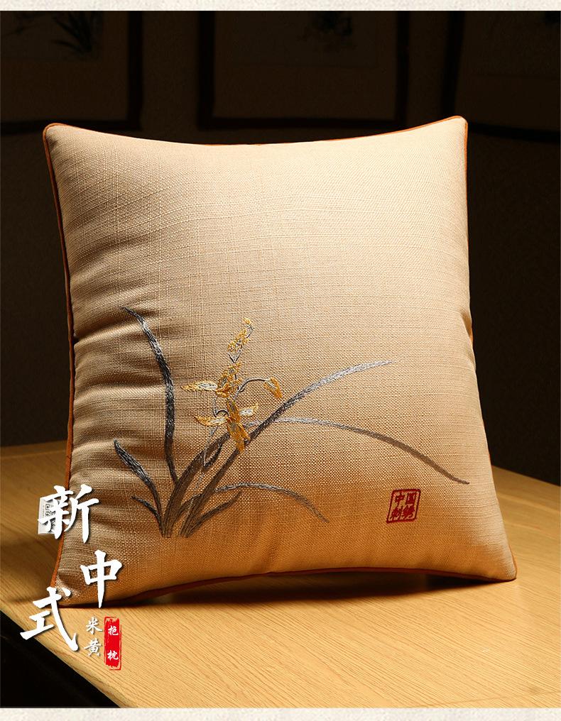 Cojín decorativo bordado estilo chino cojín de respaldo grande nuevo chino sofá sala de estar lujo ligero sentido de alta gama cabecera funda de almohada de respaldo